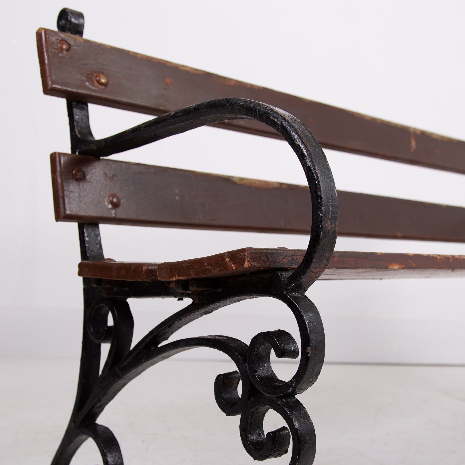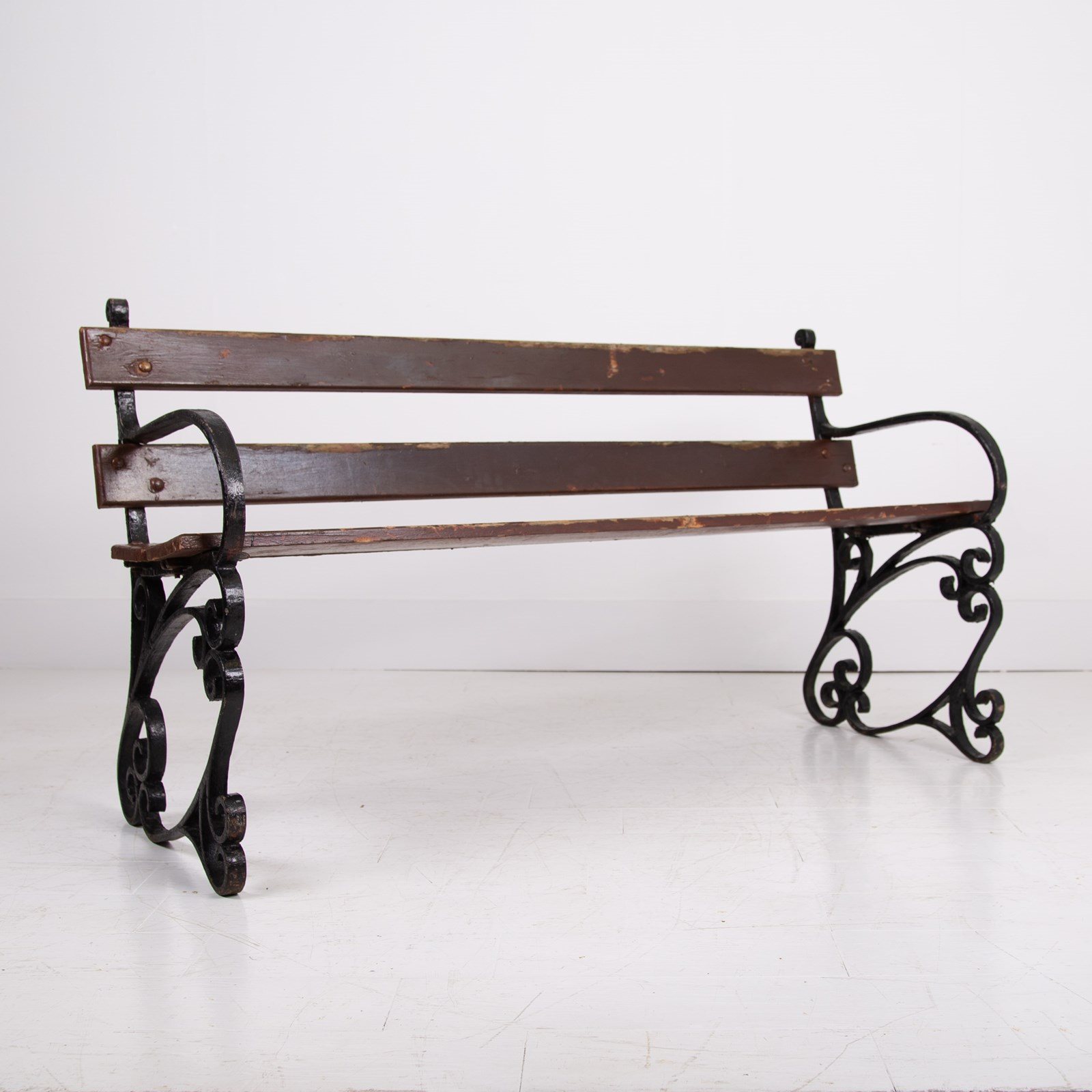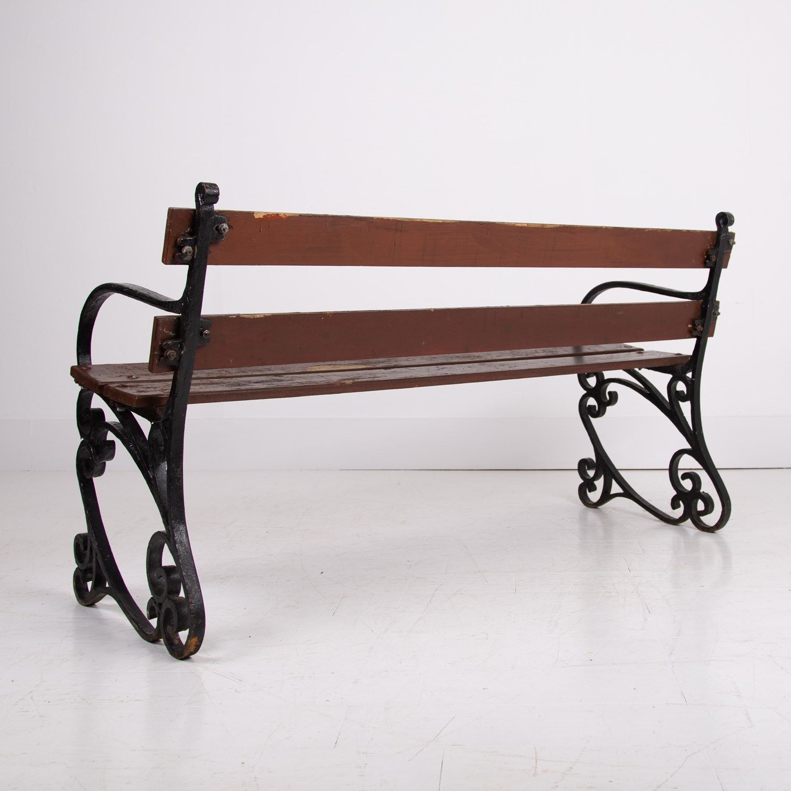 Condition is good - The hardwood slats are strong with some aging and flaking to the chocolate toned paint. As mentioned the seat is ready to place and sitting firm.