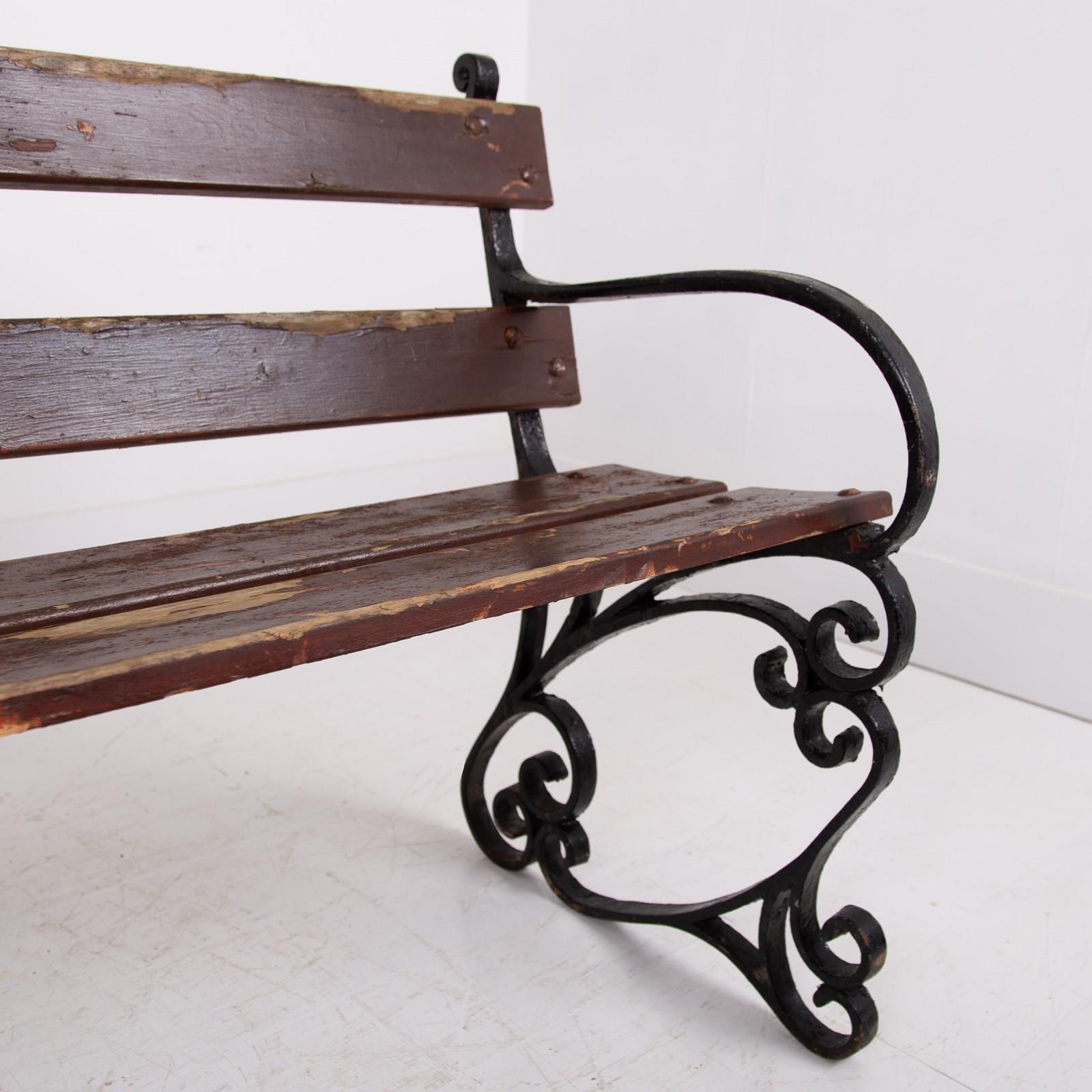 Ornate Decorative Iron Garden Bench Seat C1920