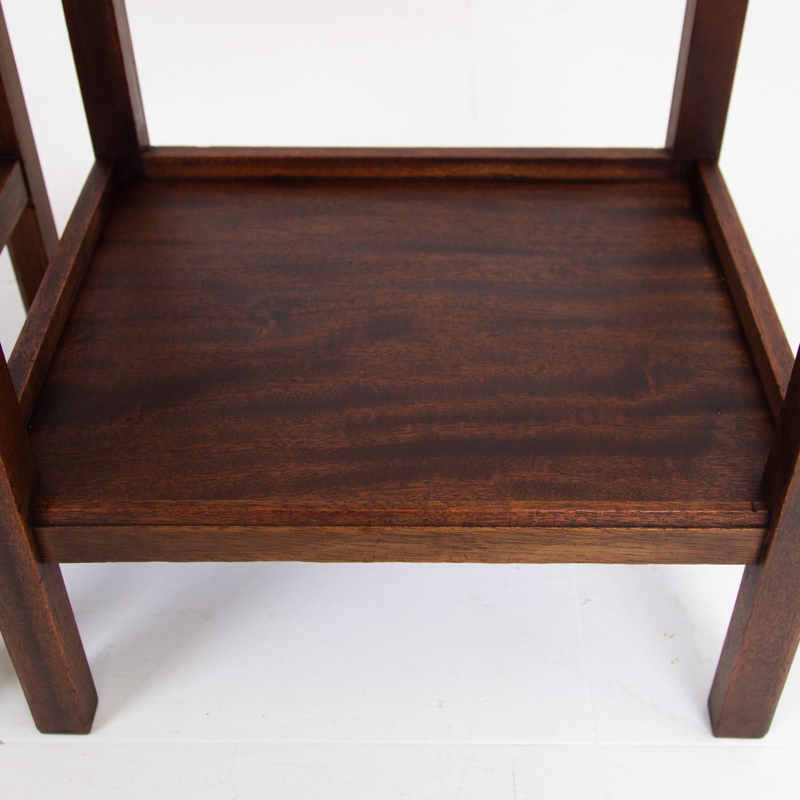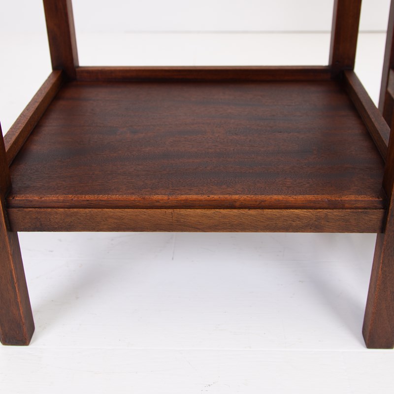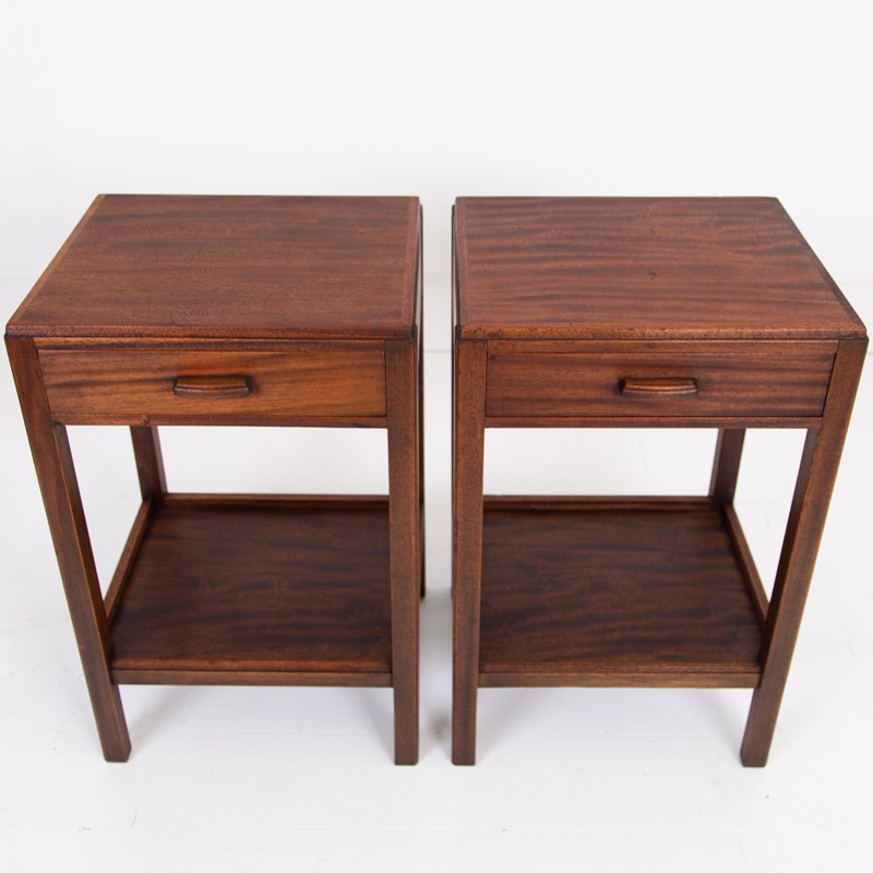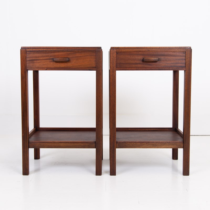 These are super and have been carefully repolished in our workshop. They are of effortless and stylish design, with a single top drawer which opens by way of the well shaped original handle, the slender angled legs support the simple top and a useful lower shelf with apron. Very pleasing and satisfying to the eye. Both tables are in similar condition with a few light knocks to the tops and edges and sitting firm and ready for placing.