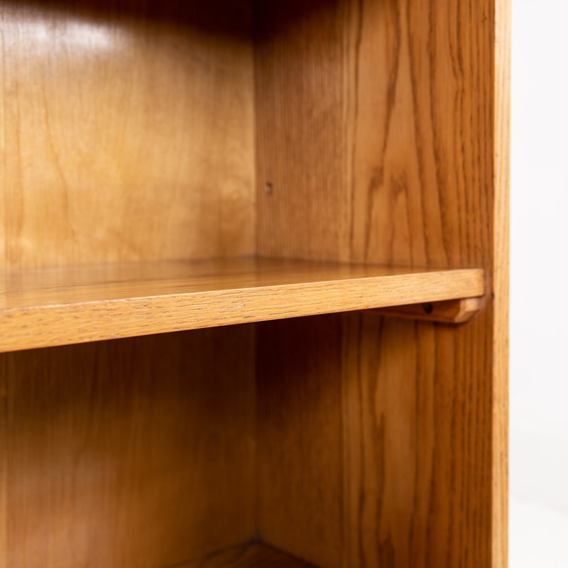 Smaller in scale than most, both pieces sit well, strong, heavy for their size and ready to place with day to day historic wear etc. The shelves are fixed, not adjustable. We have carefully cleaned and waxed both bookcases ready for placing.