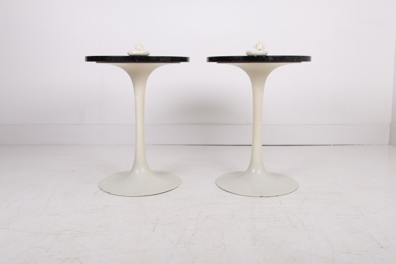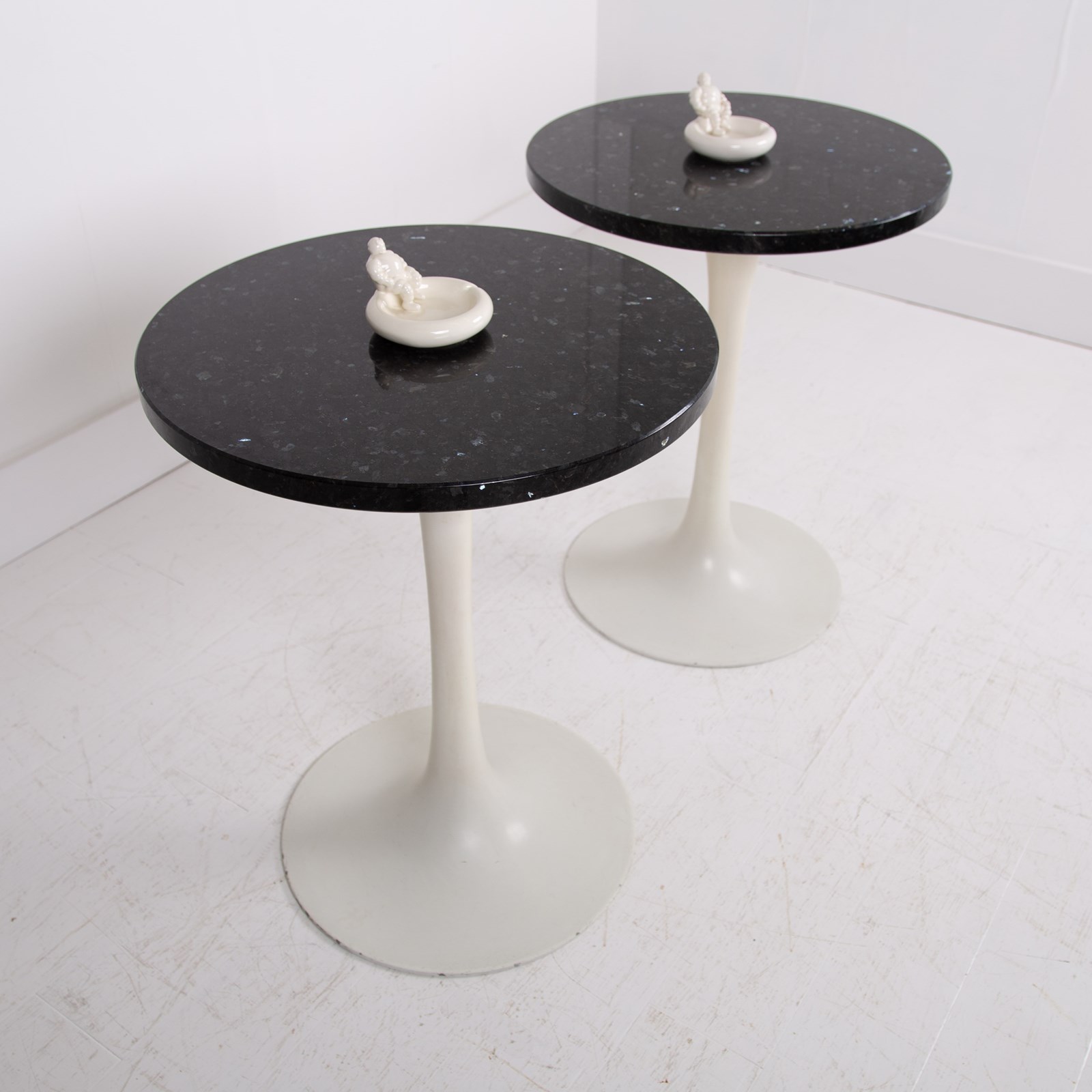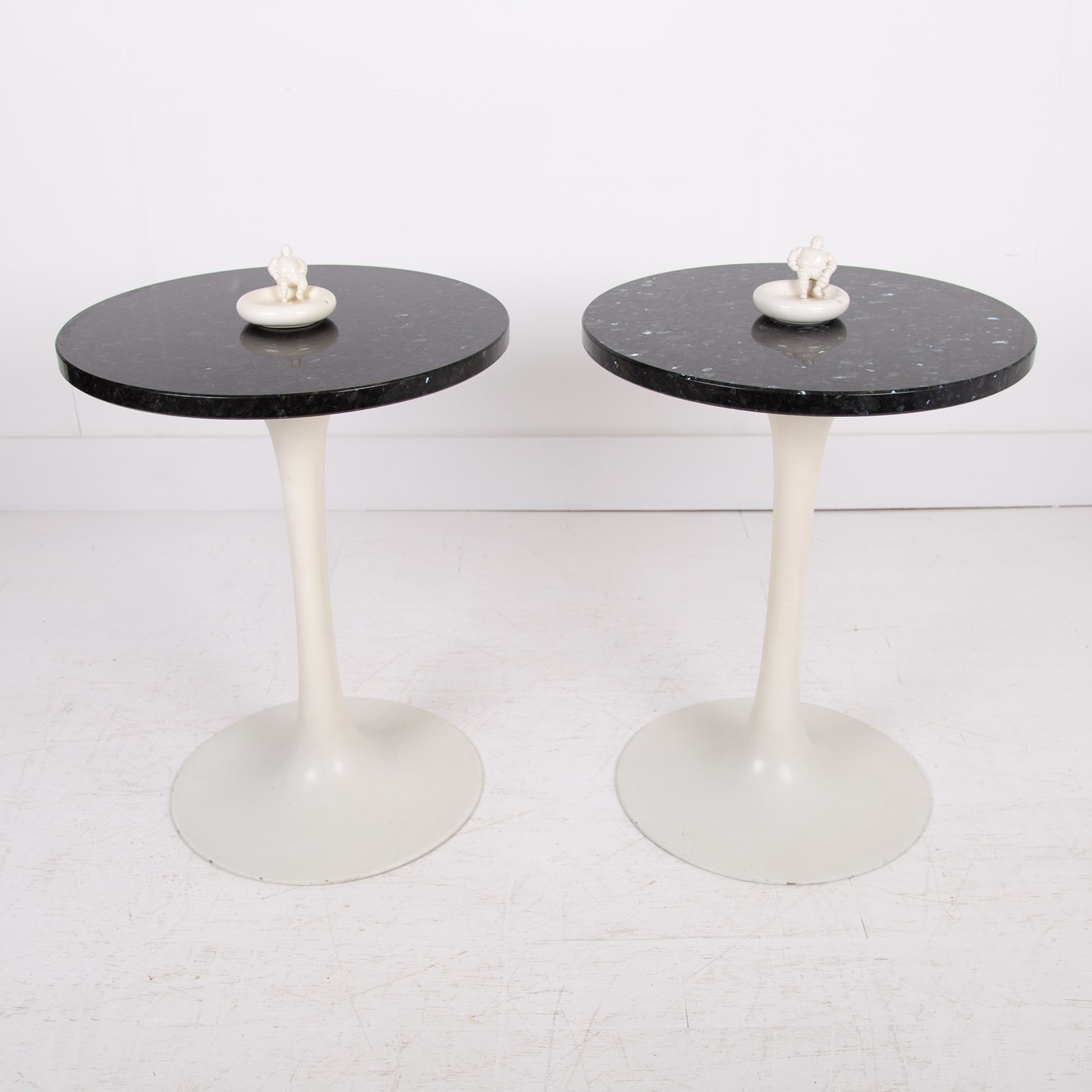 Pair of Mid Century Tulip Shaped Granite Topped Side Tables