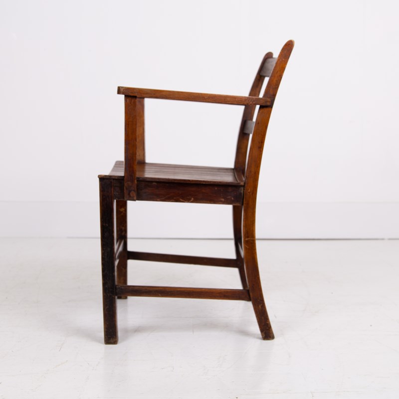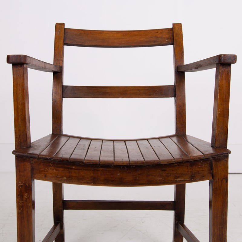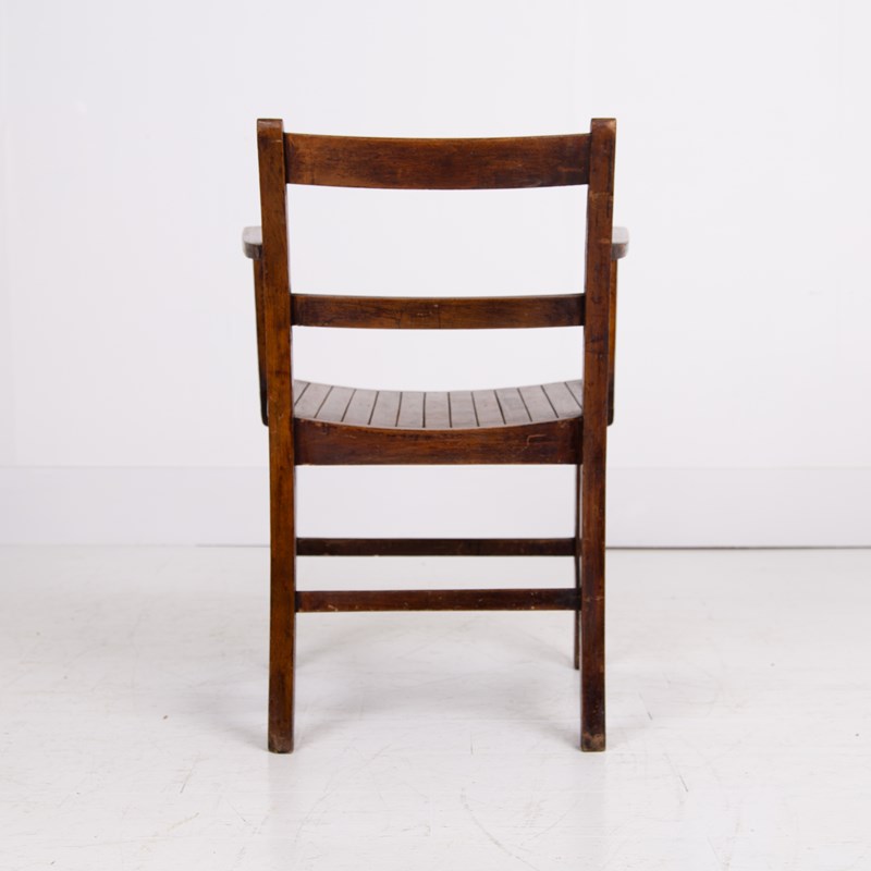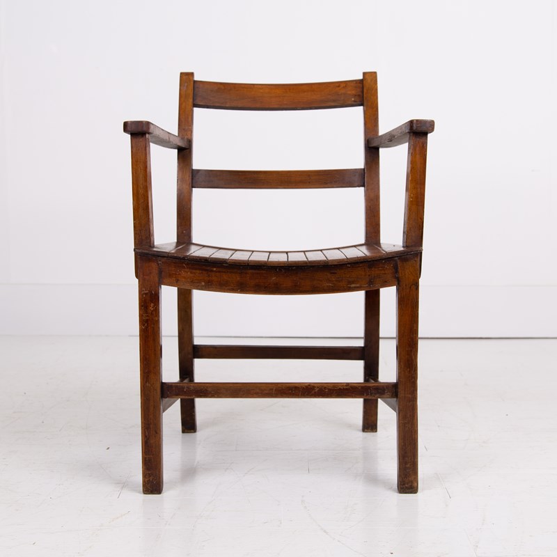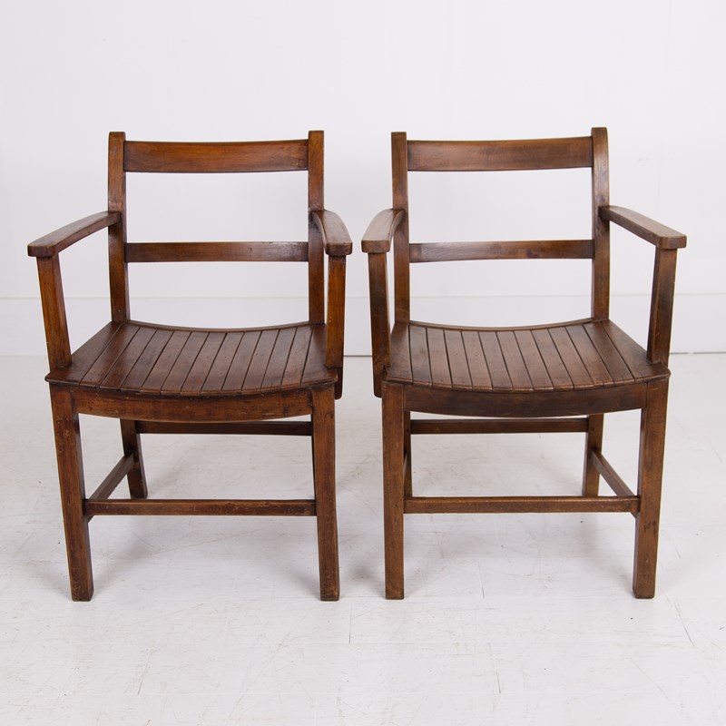 A good looking, never easy to source set of 8 (including 2 “Carvers”) slatted chairs in pleasing time worn condition - perfect for a barn, period kitchen, modern kitchen diner or commercial space. An easy on the eye design, a mix of beech and oak with slatted seats and simple back rests and were government and military issues in the day, you’ll note one is stamped GRV 1942 to the underside.