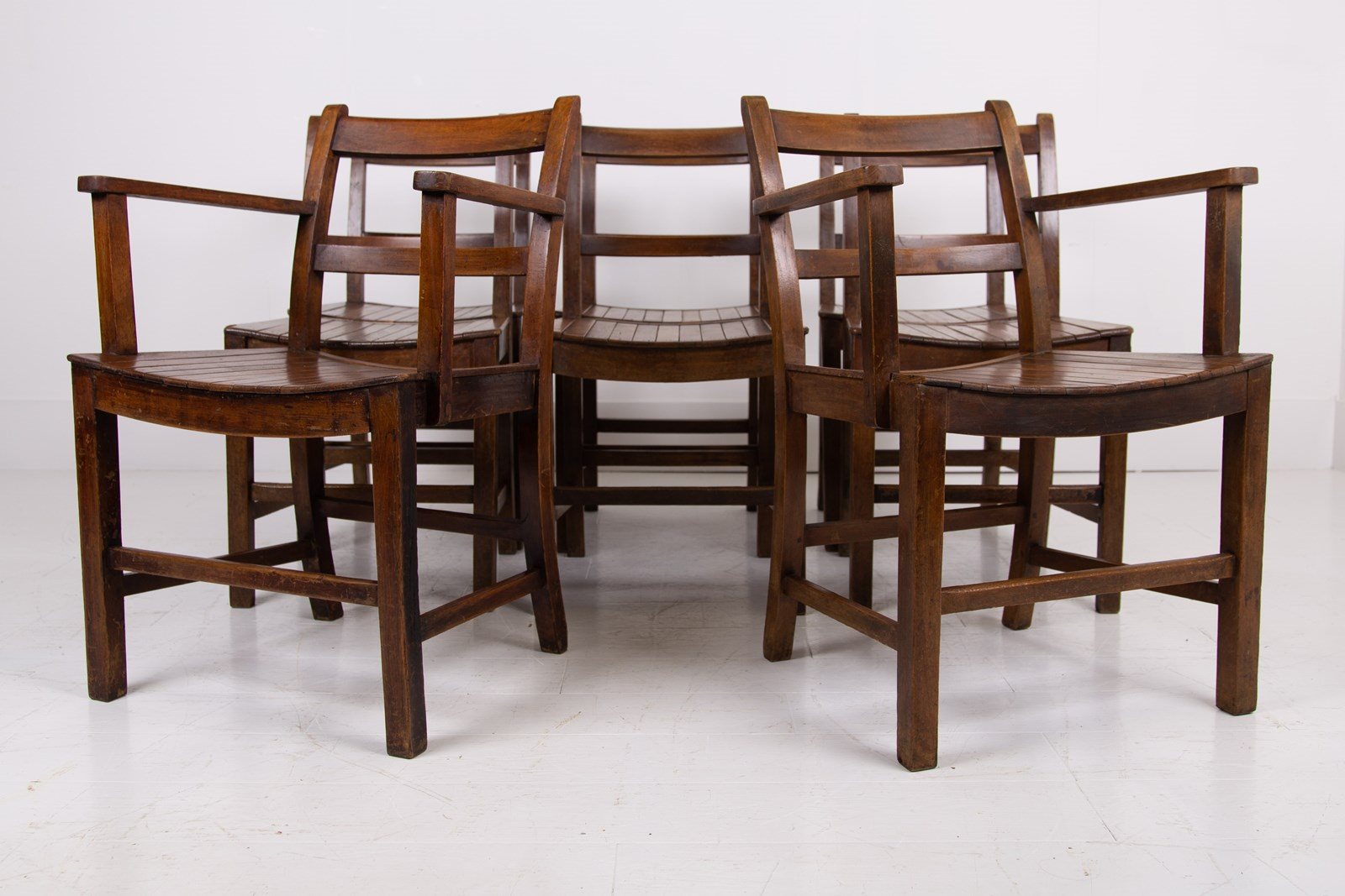 Set Of 8 Government Issue Slatted Dining Chairs C1940s