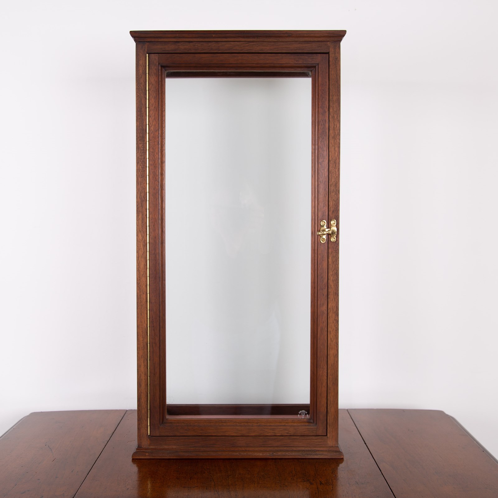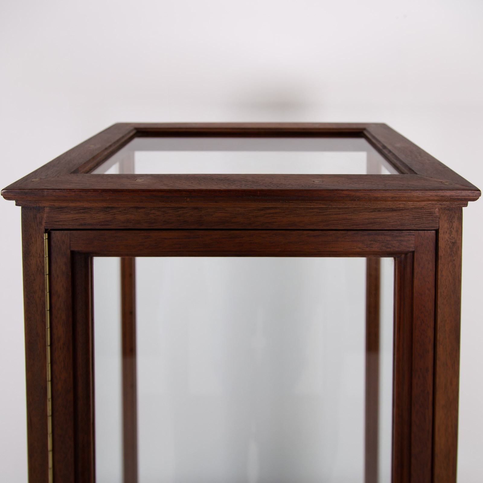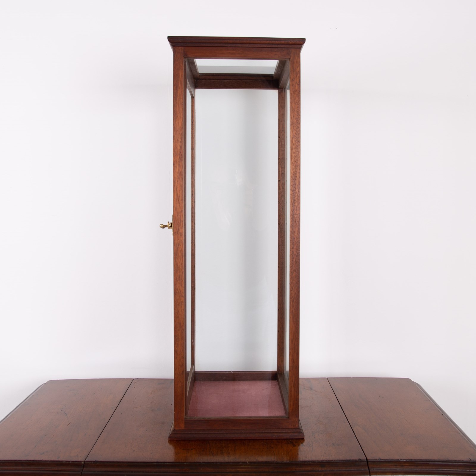 A handsome, tall, glazed, teak hardwood cabinet case once used to house a violin C1950. It's a beautifully made piece and would accommodate a few glass shelves with small holes for ring supports if you wish, otherwise just perfect for a collectors display cabinet.