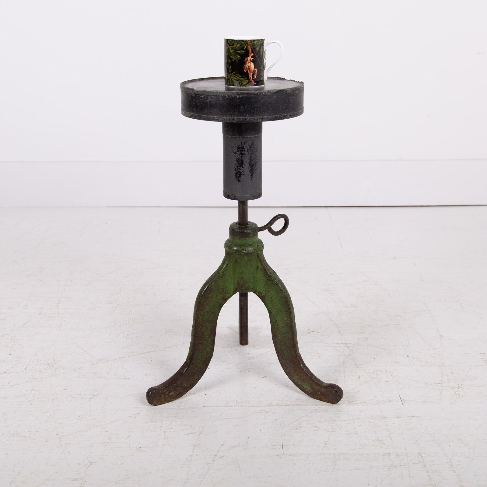 We just love these potter’s banding wheels which act as perfect side tables in so many spaces. This one possesses adjustable height and the top moves around and is great for placing a cup of tea, a glass of wine or maybe a favourite vase. This one has iron cabriole legs and sits with plenty of genuine patina and wear.