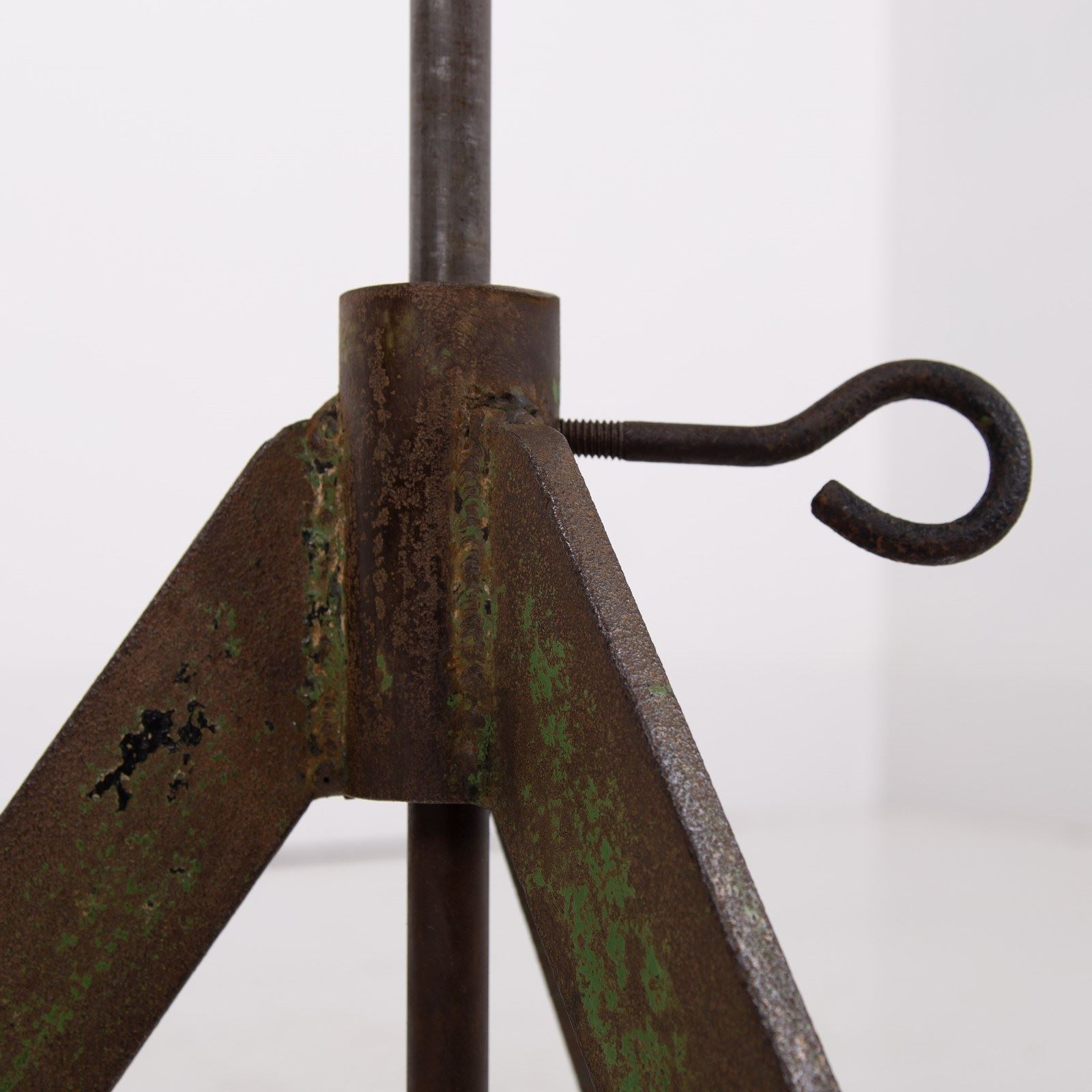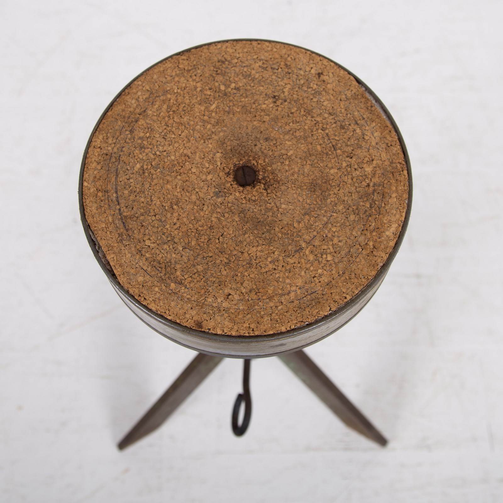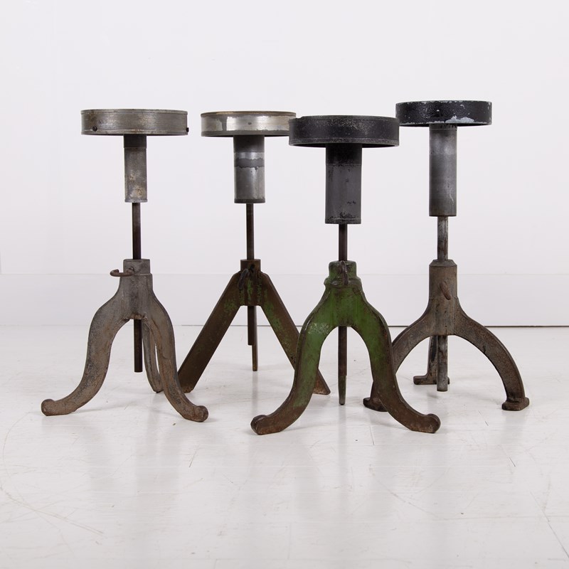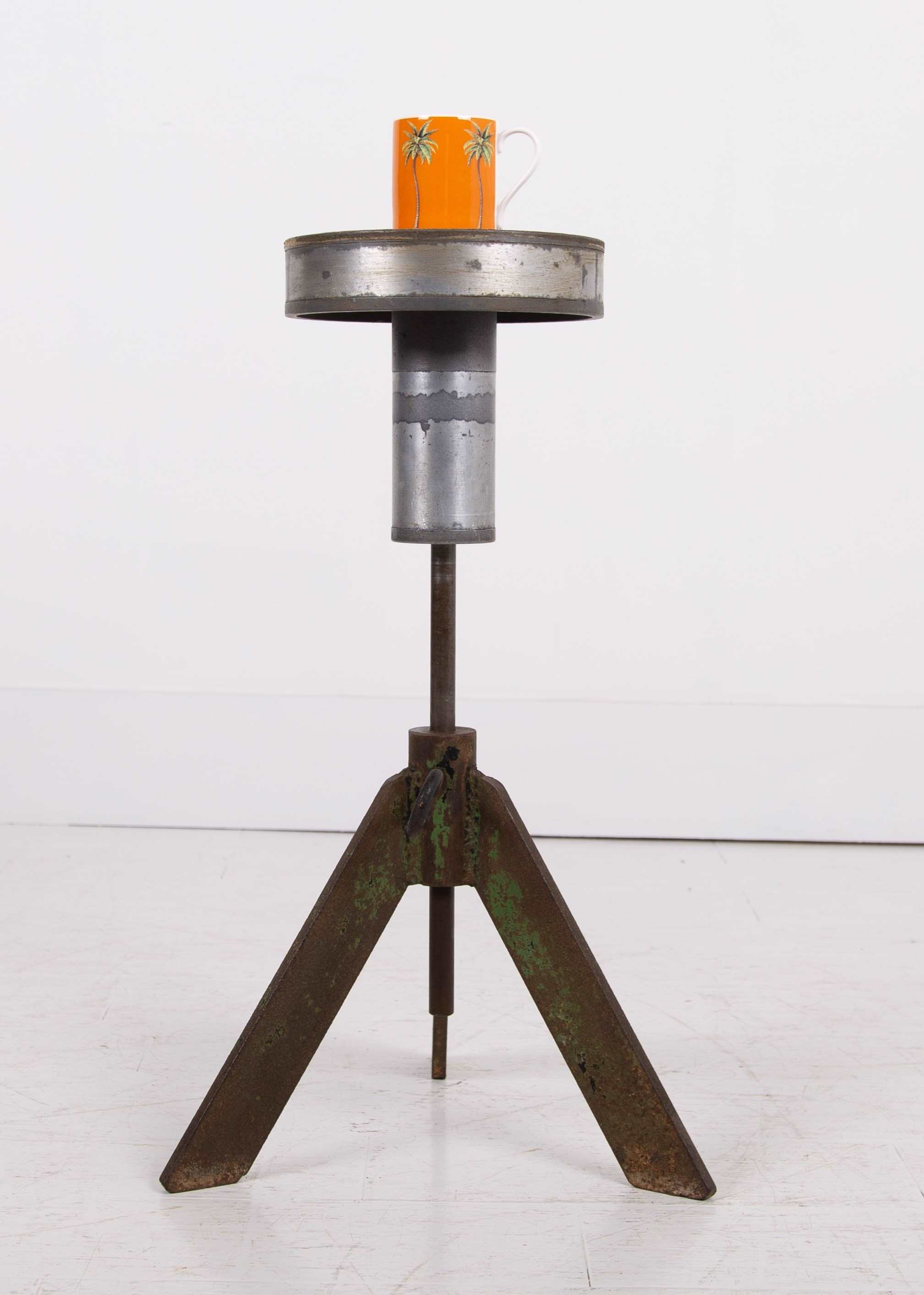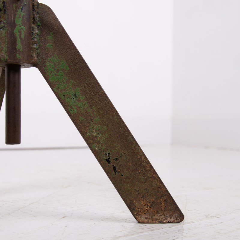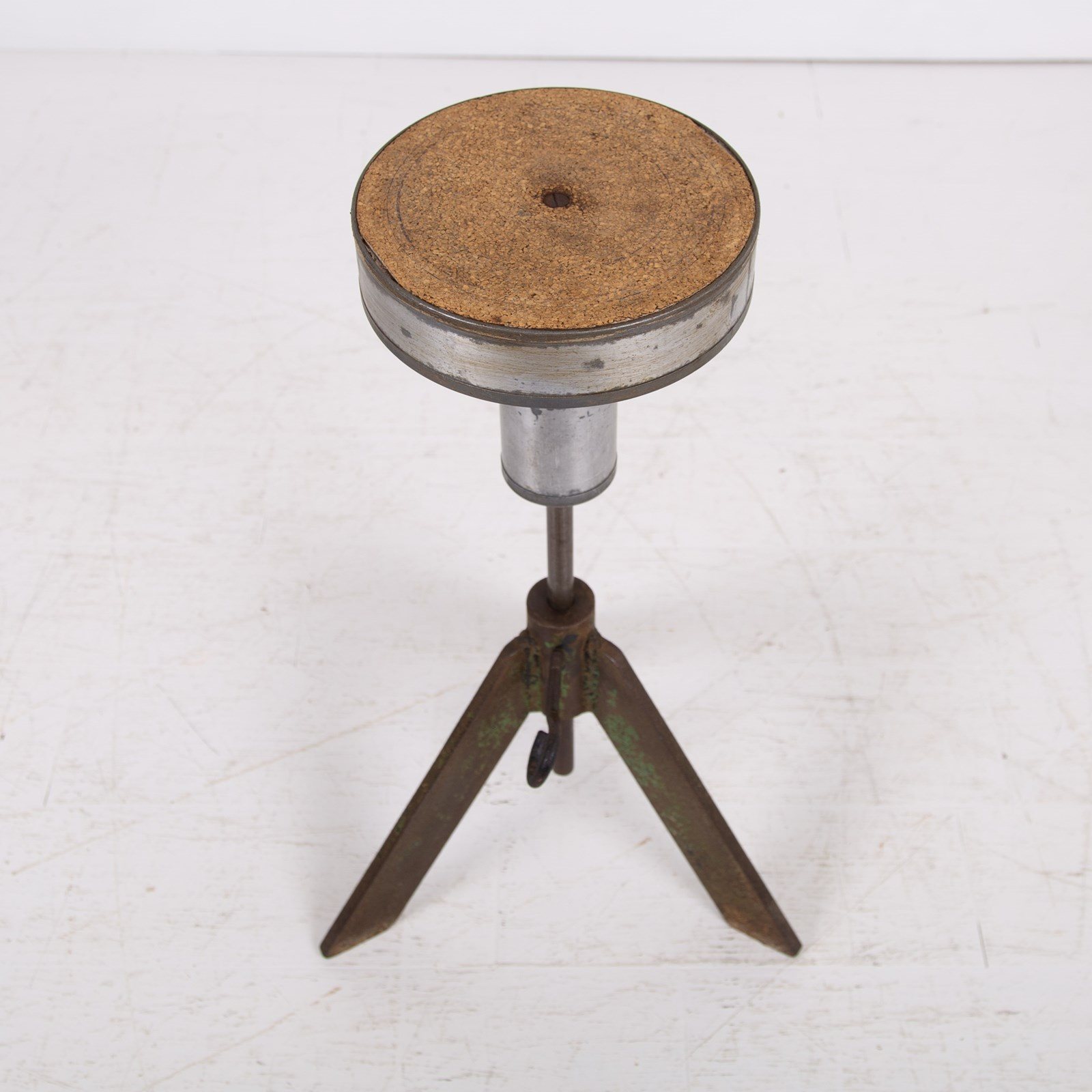 We just love these potter’s banding wheels which act as perfect side tables in so many spaces. This one possesses adjustable height by way of a turn screw and the top moves around and is great for placing a cup of tea, a glass of wine or maybe a favourite vase. This one has original angular green legs and sits with plenty of genuine patina and wear.