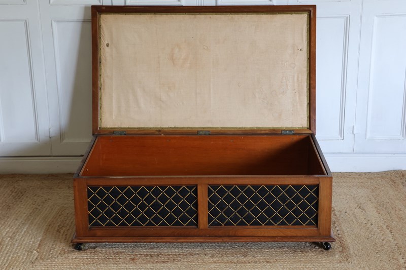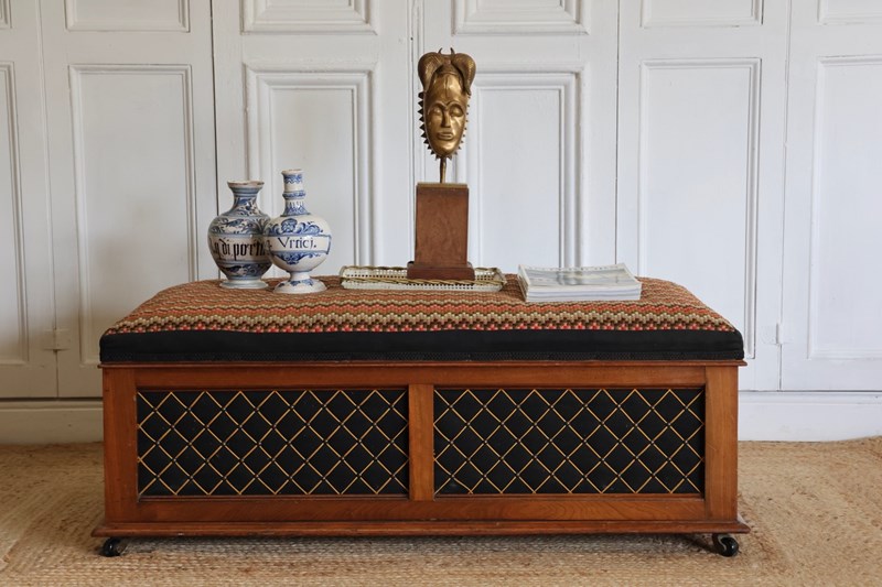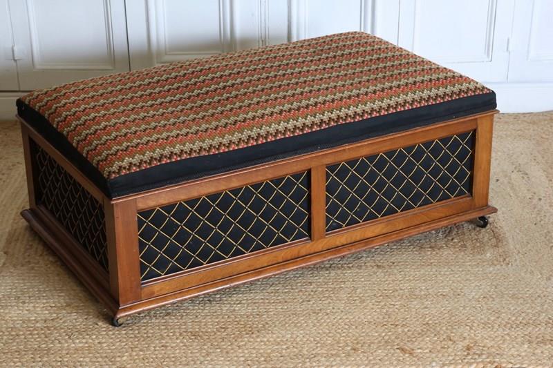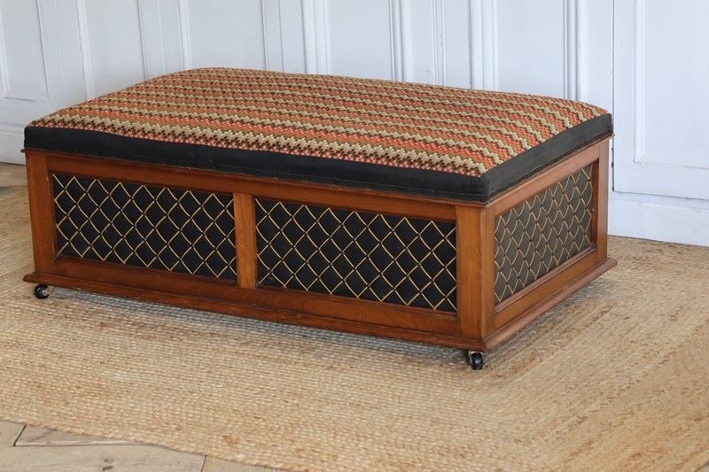 Large 19Th Century English Needlework Ottoman With Mahogany Frame And Castors