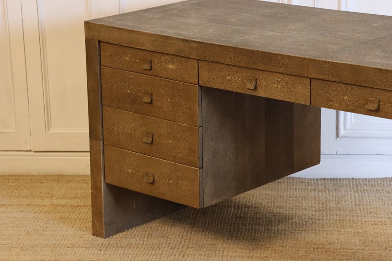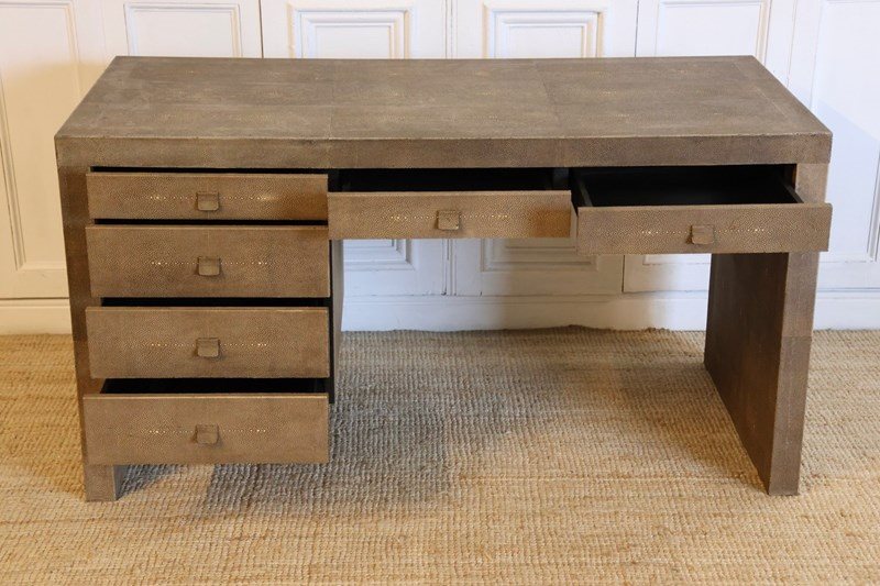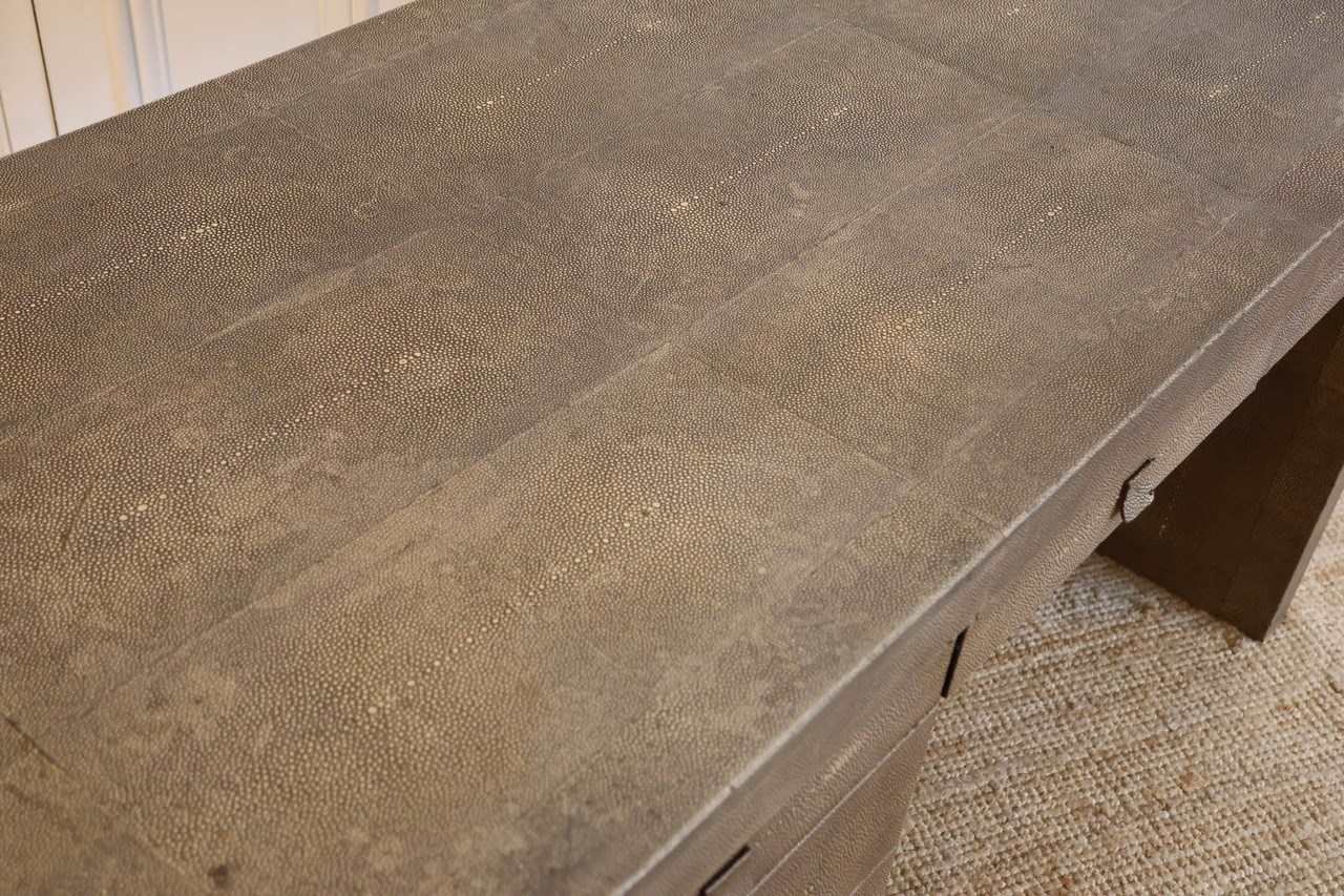 A very smart , late 20th century ‘shagreen’ desk completely covered in shark skins ,in the cubist form with six drawers finished on all sides.