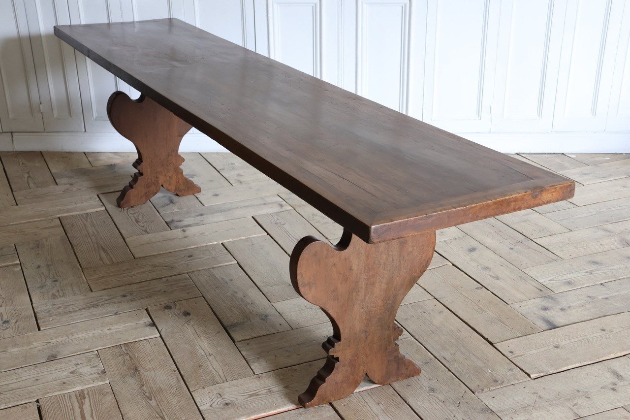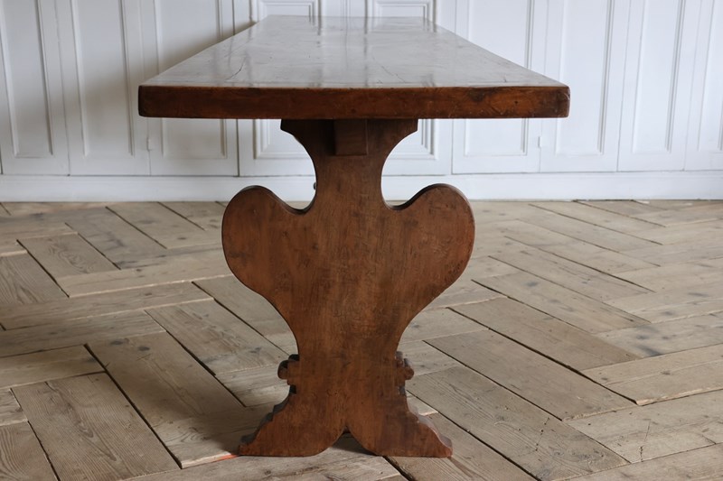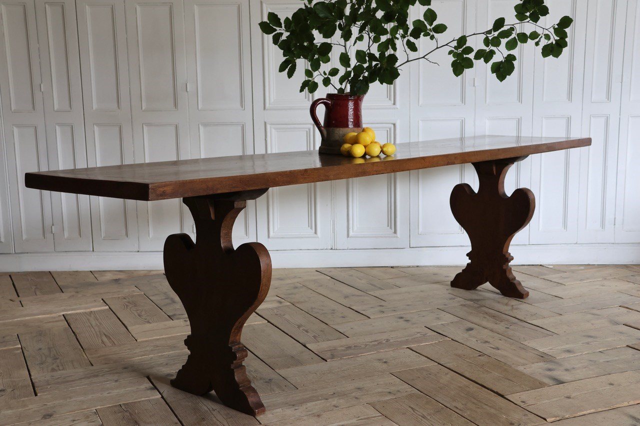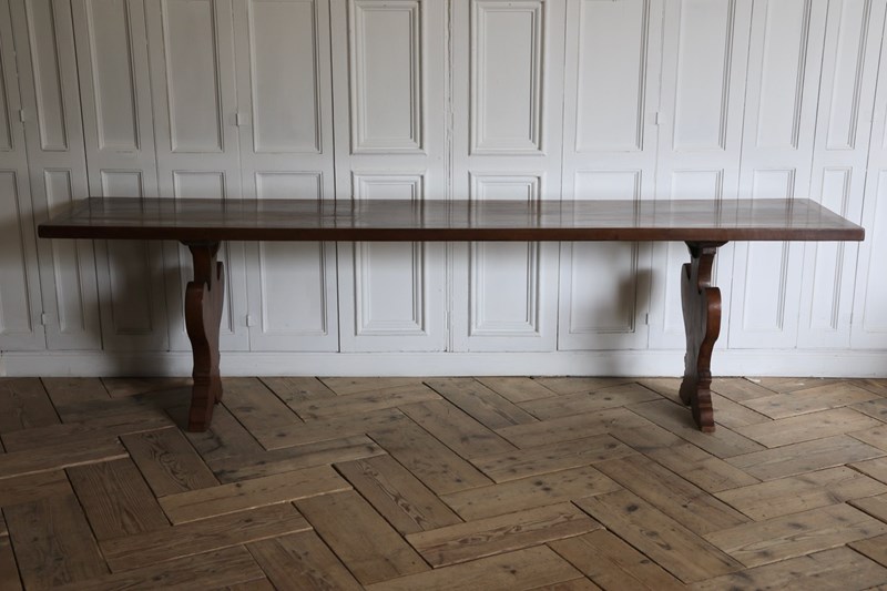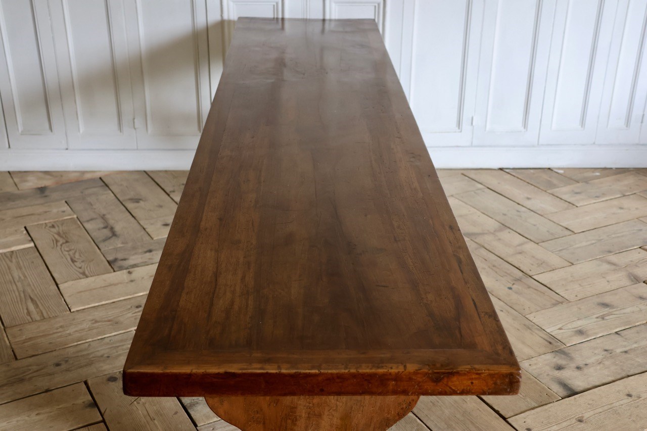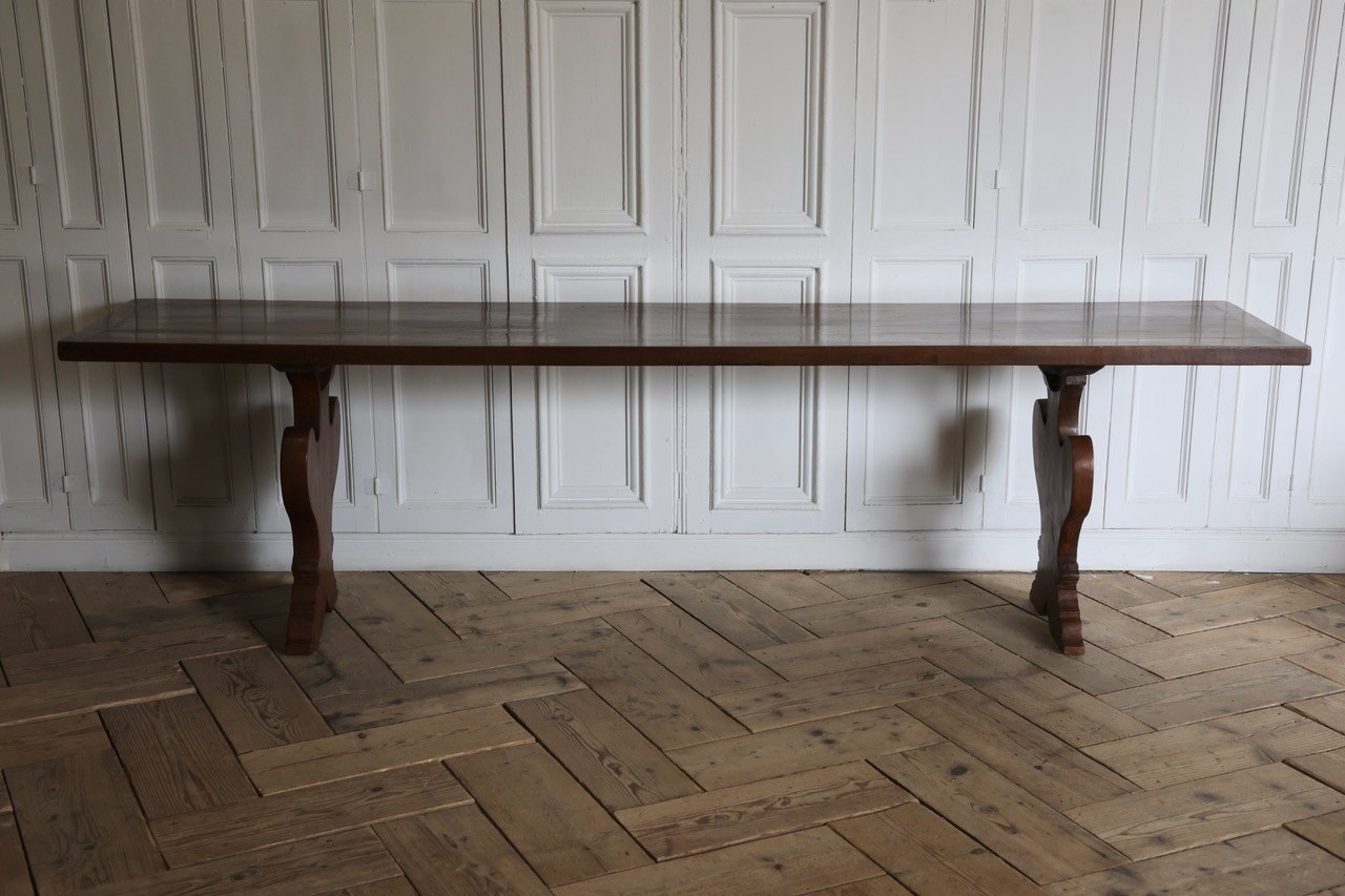 A good late 18th/early 19th century French community table with a single walnut plank from a monastery , that will work well either as a dining table or as a side table.