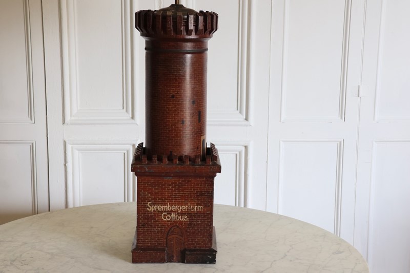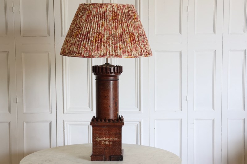 Very Large Late 19Th Century German Tole Tower Adapted As A Table Lamp