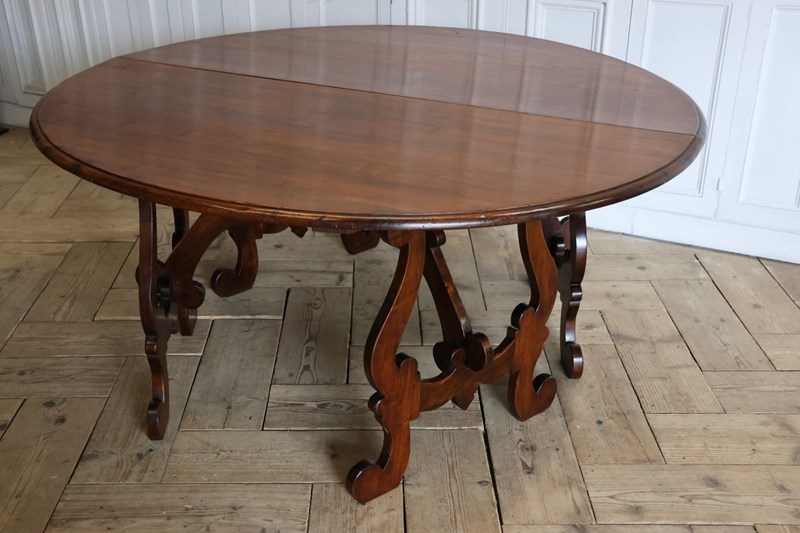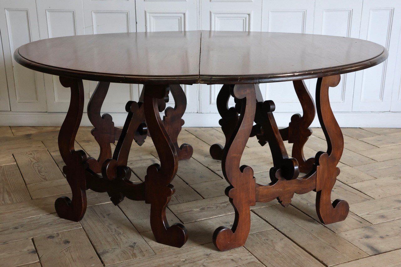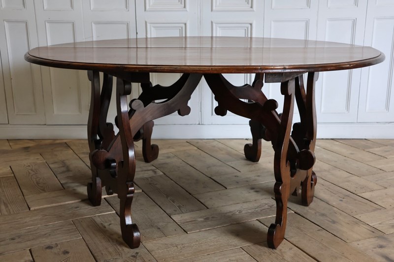 Wonderfully Large Italian Walnut Round Dining Table / Pair Of Console Tables