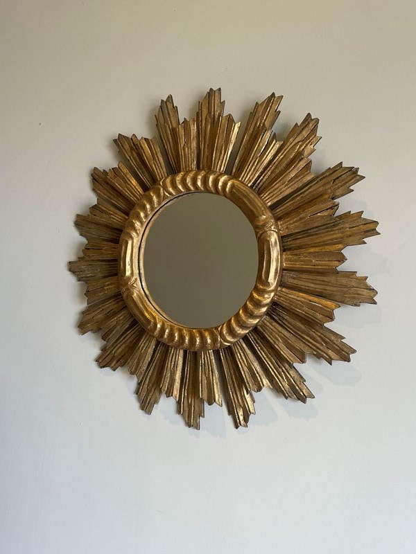 Mid-Century Spanish Giltwood Sunburst Mirror
