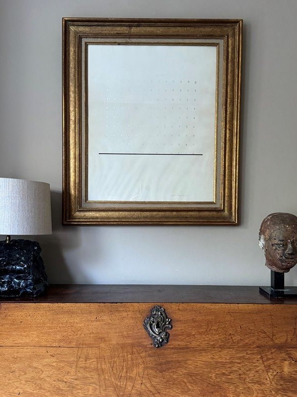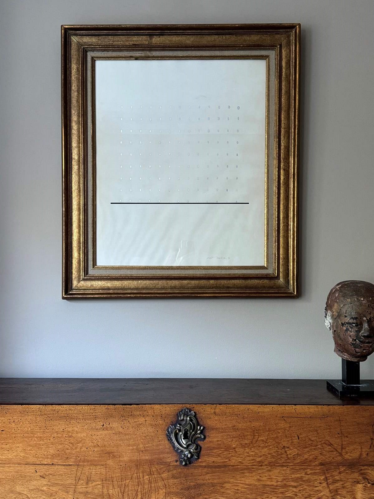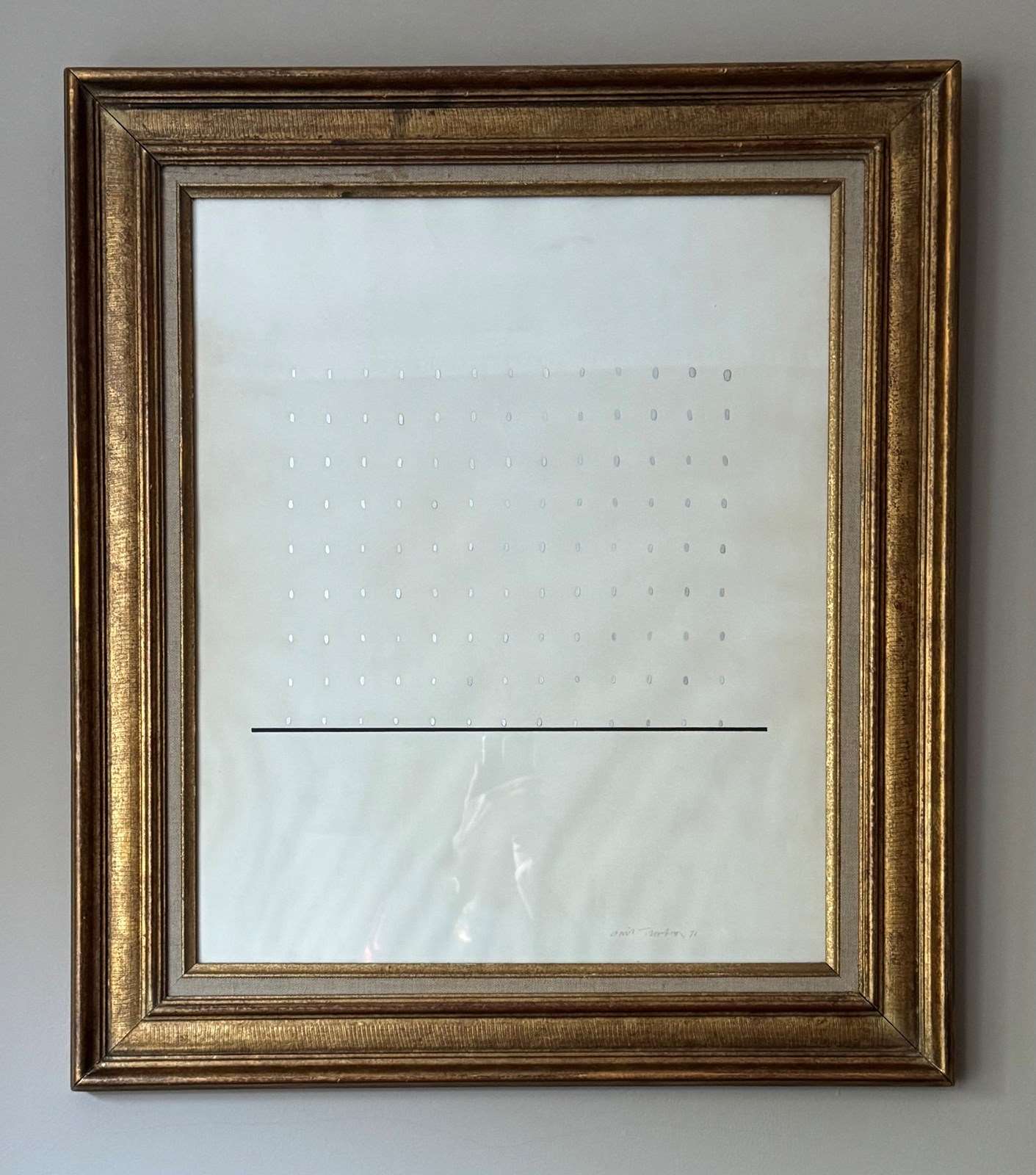 Beautiful abstract gouache with silver strokes signed David Thornton and dated 1972. Underglaze.