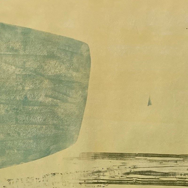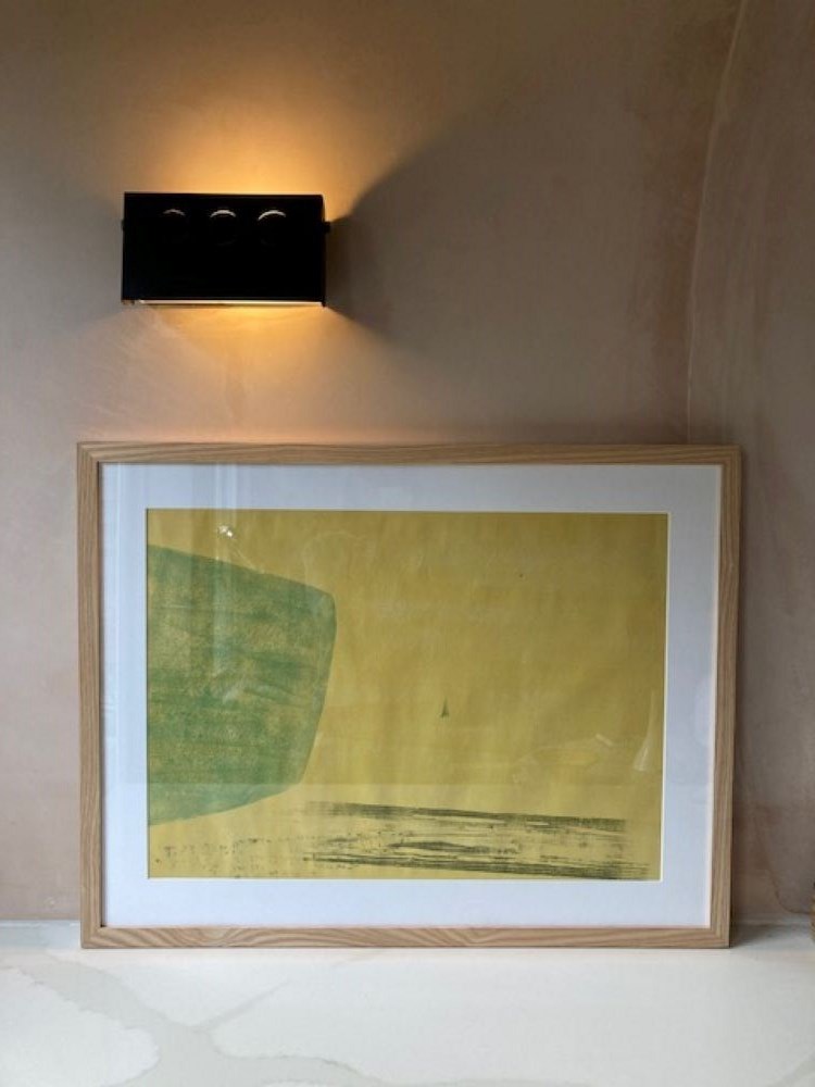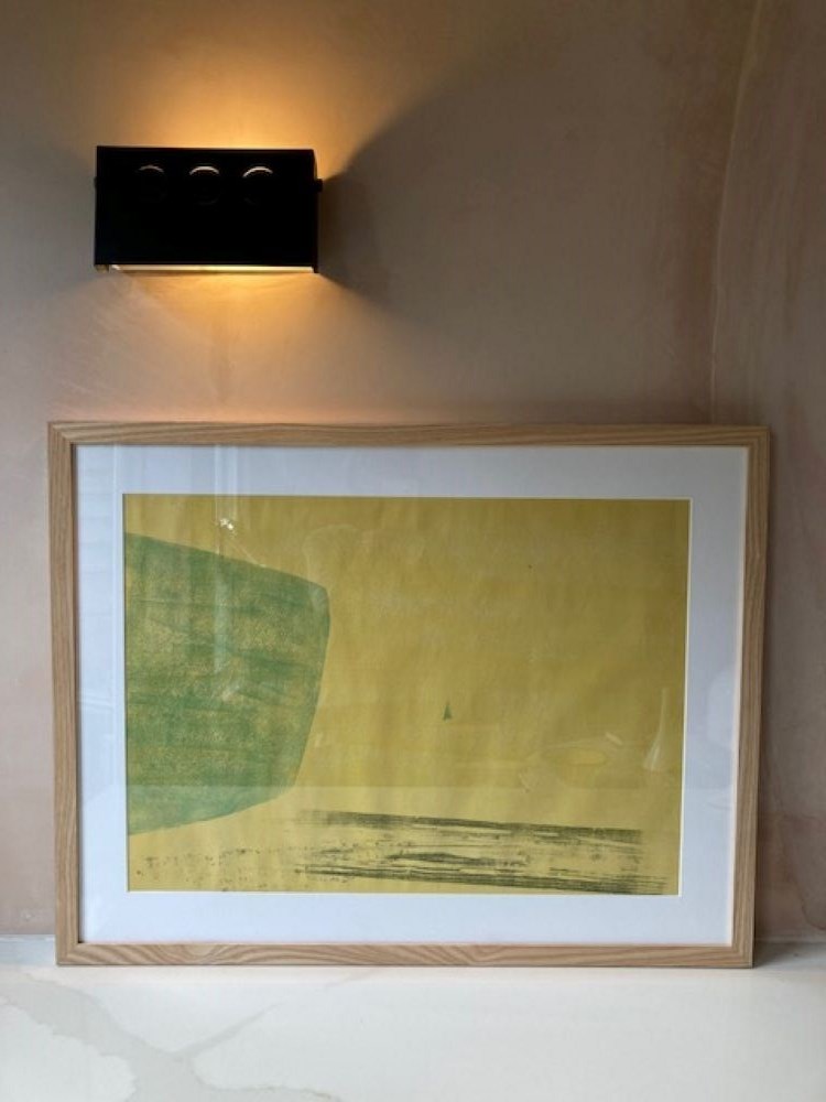 1970's abstract screen print. Reframed in simple frame, mounted and underglaze.