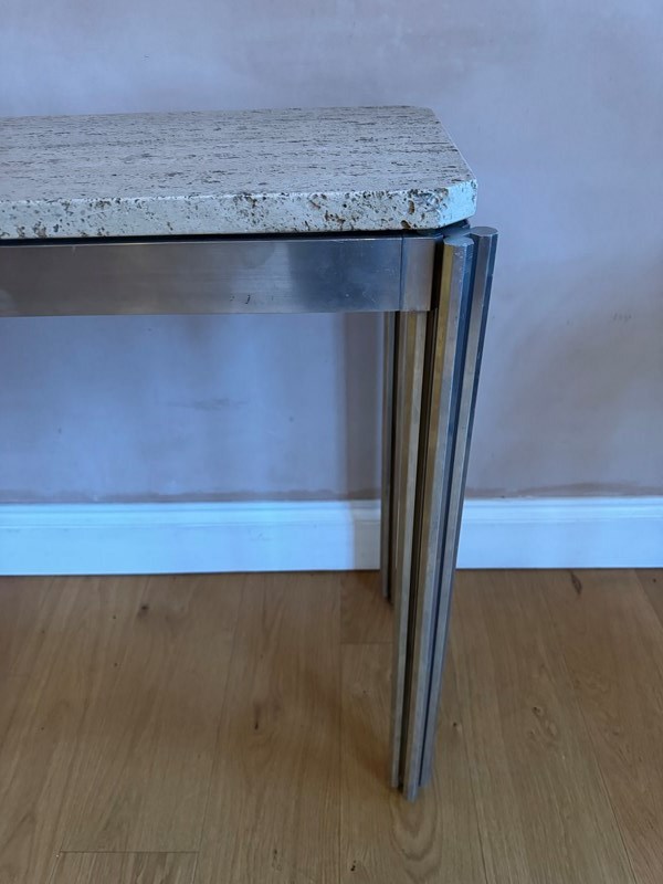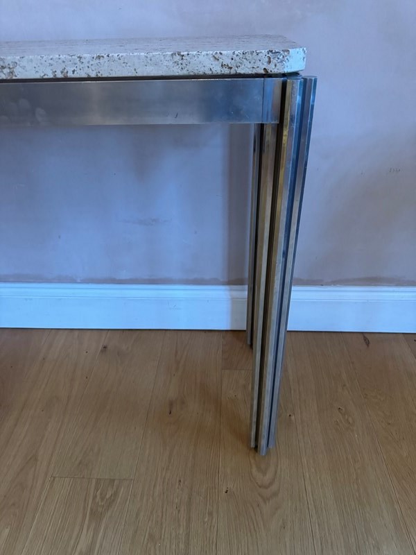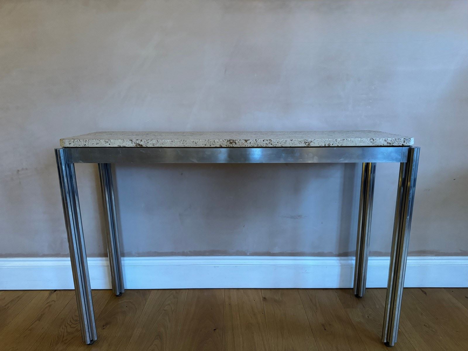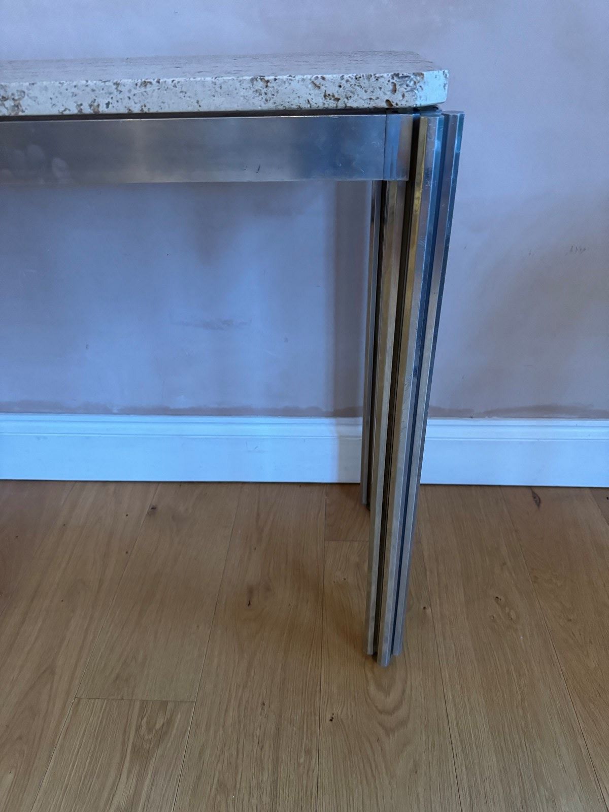 Élégant 1970’s aluminium and travertine topped console table by Albrizzi.