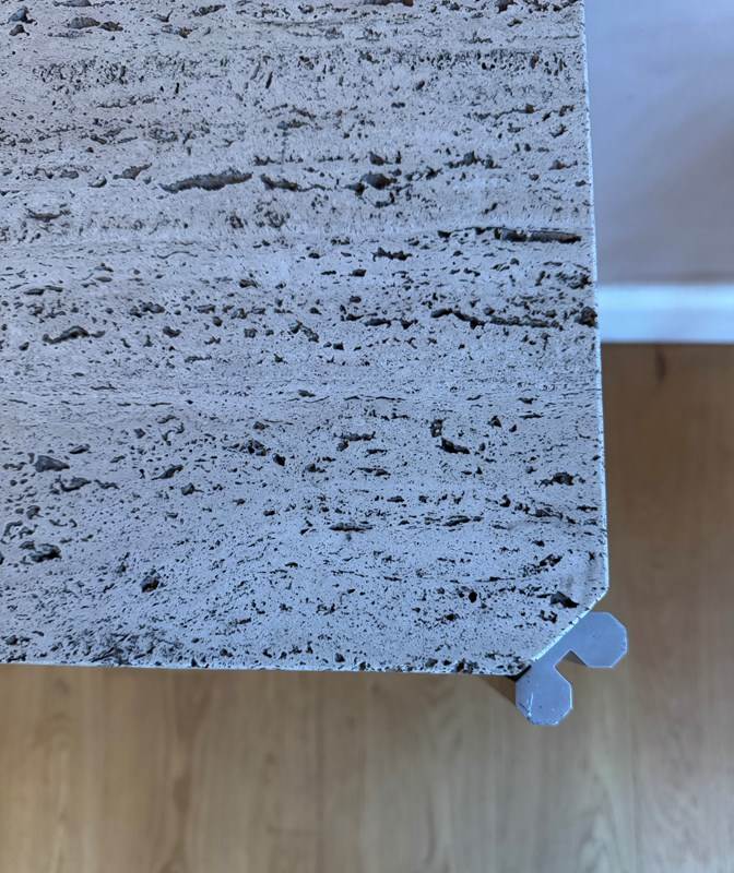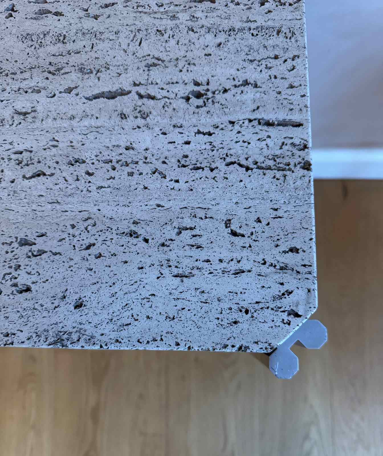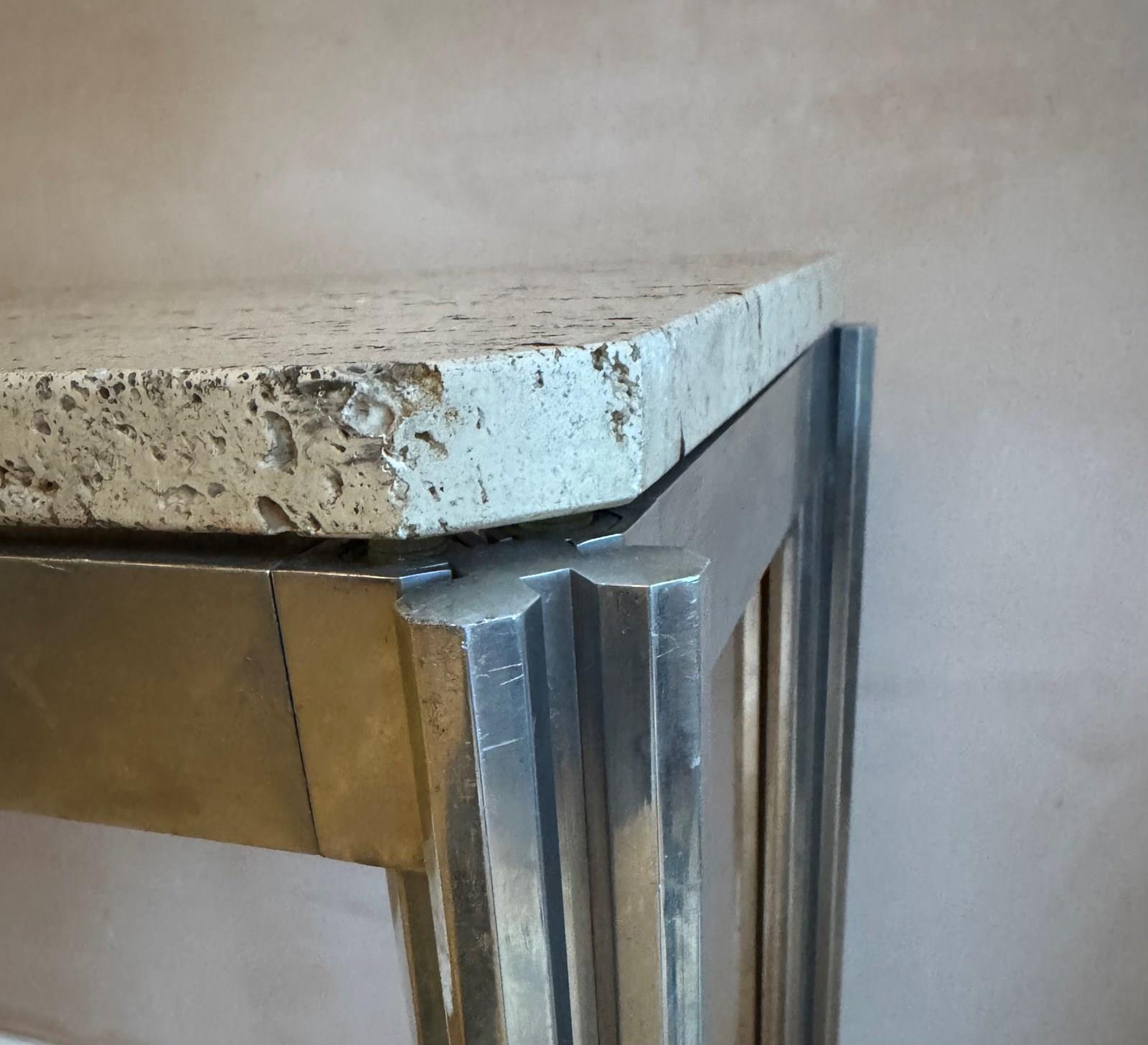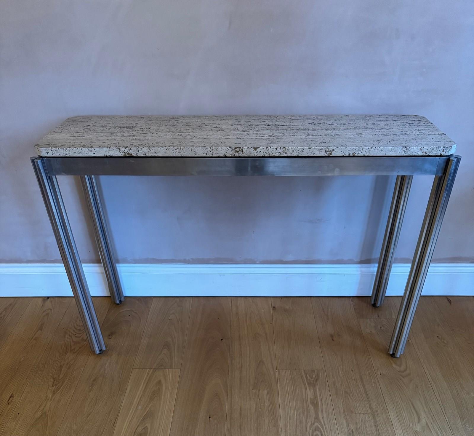 Élégant 1970’s aluminium and travertine topped console table by Albrizzi.
