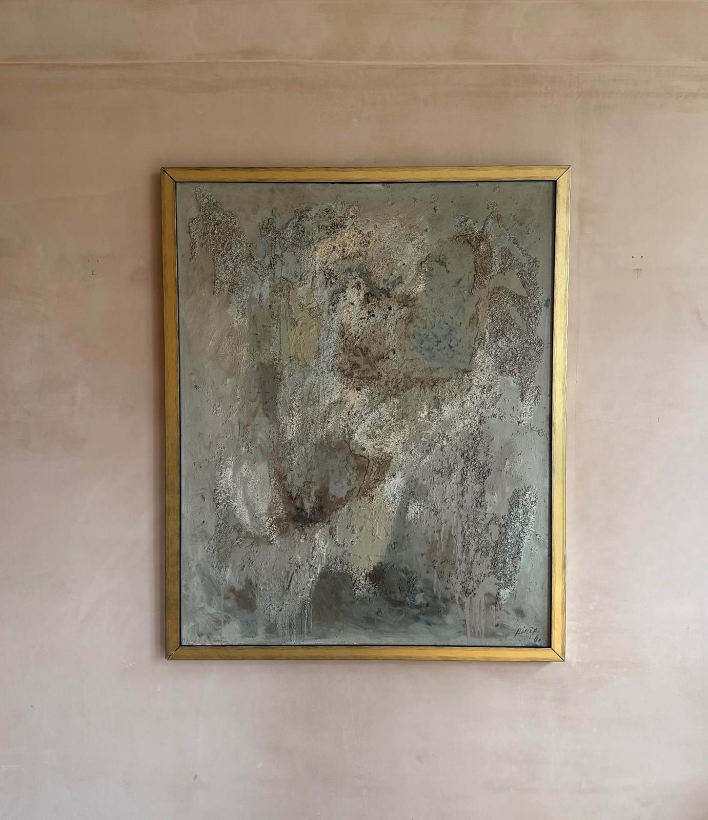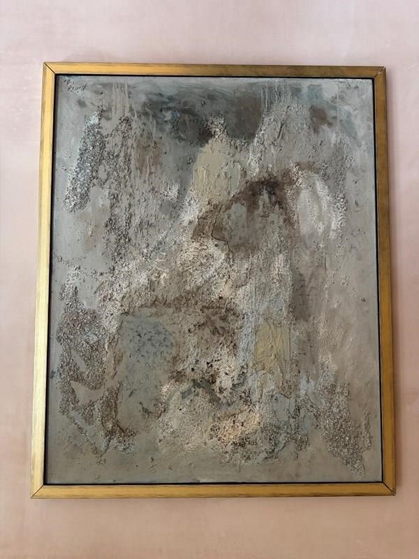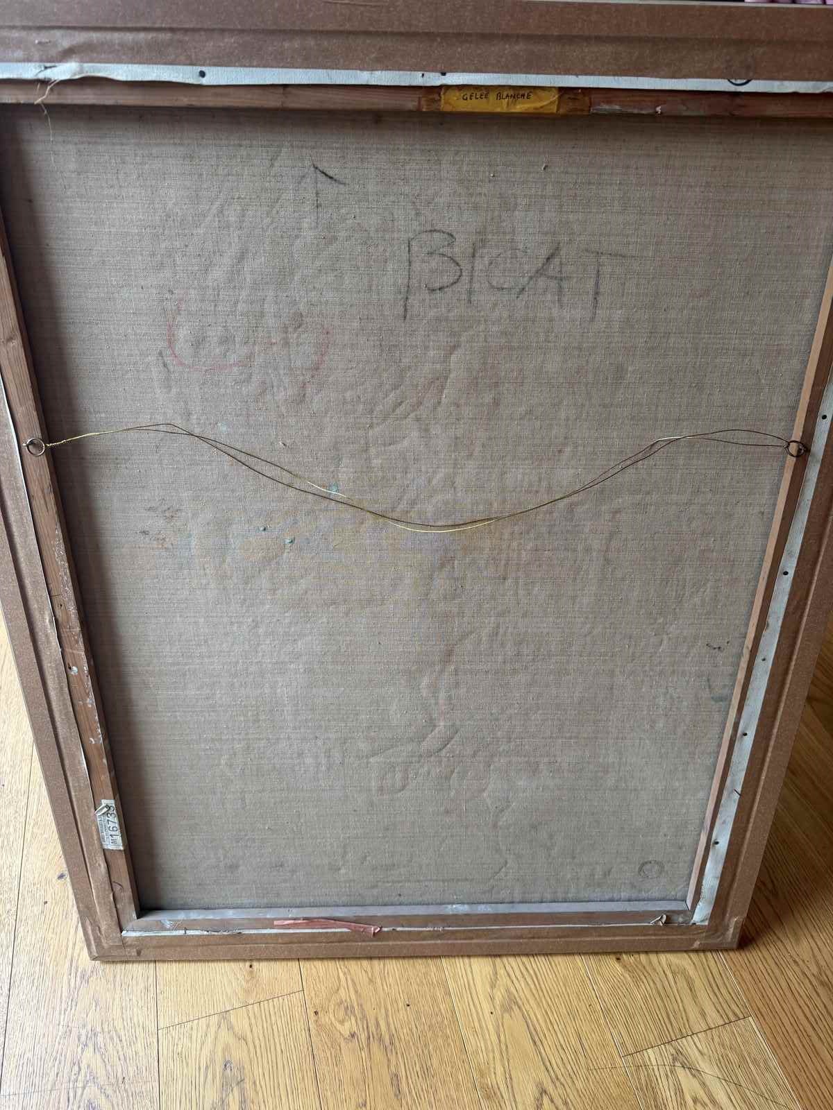 Mixed media on canvas painting. Gelee Blanche 1961. Framed