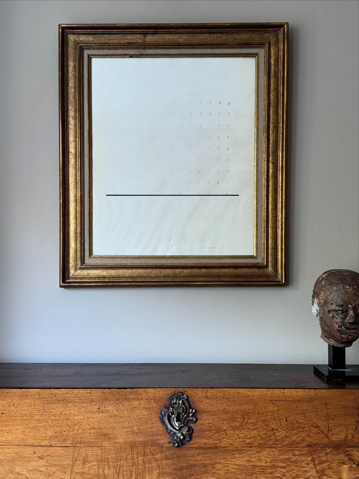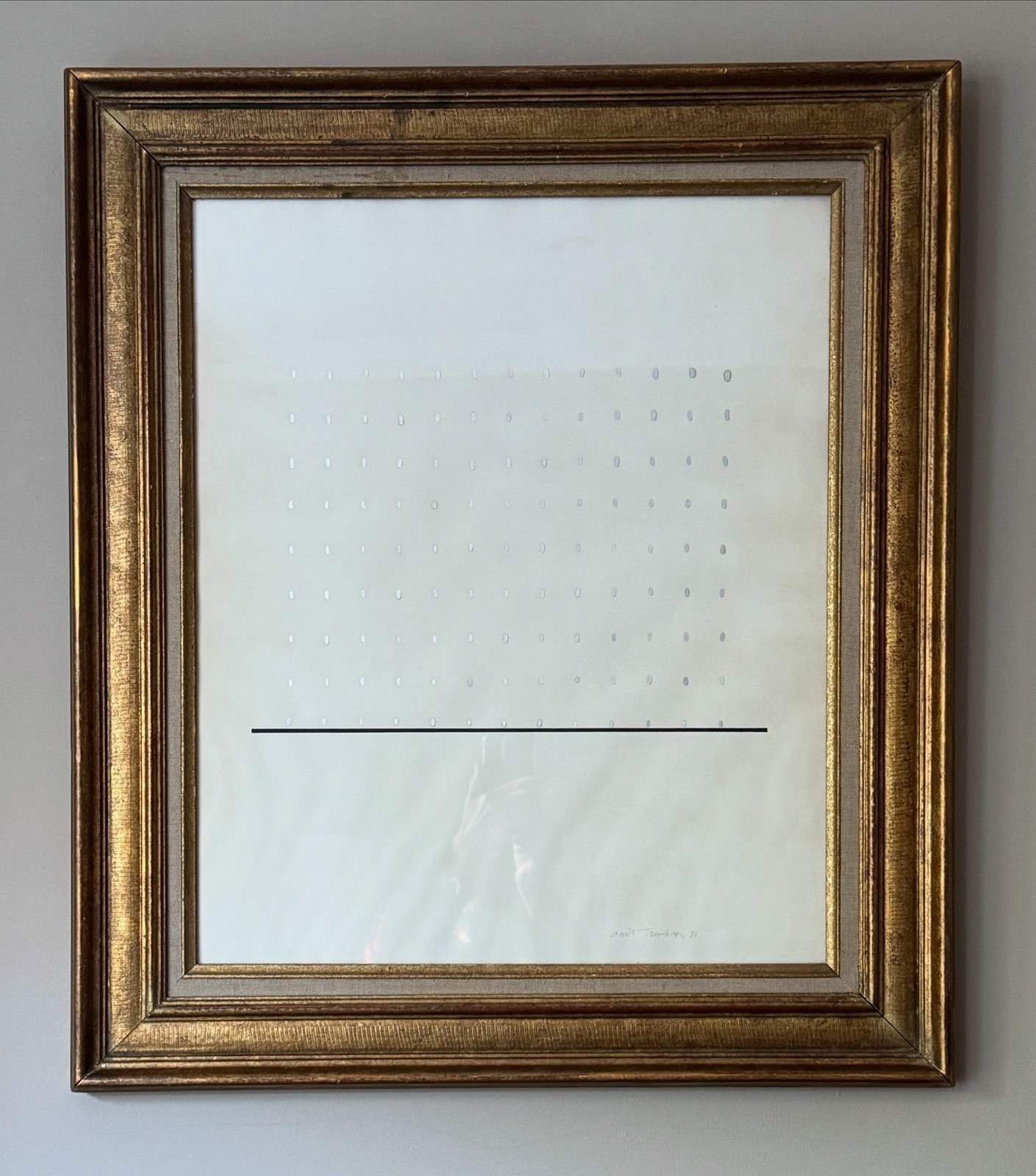 Beautiful abstract gouache with silver strokes signed David Thornton dated 1971. Underglaze.
