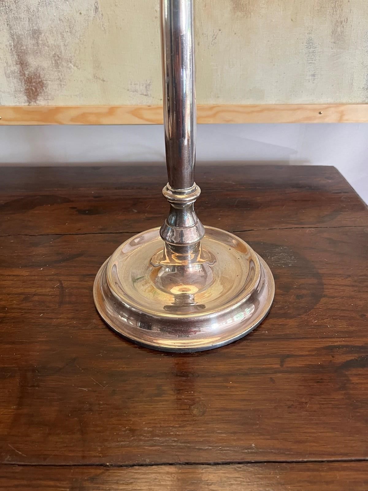 English silver plate excellent quality table lamp provenance Claridges Hotel London. Shade for display. Rewired and Pat tested.