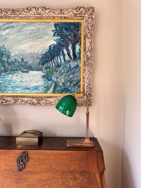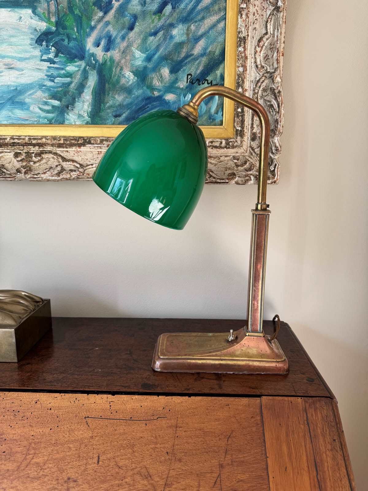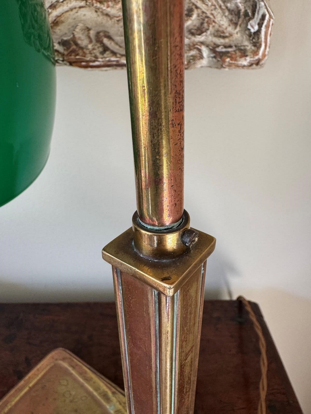Fabulous quality art deco bronze and glass art deco desk lamp.