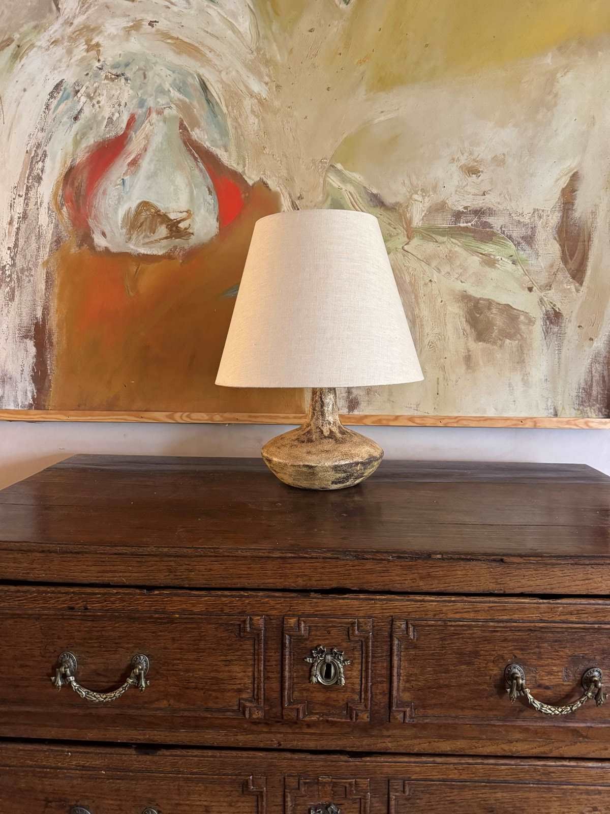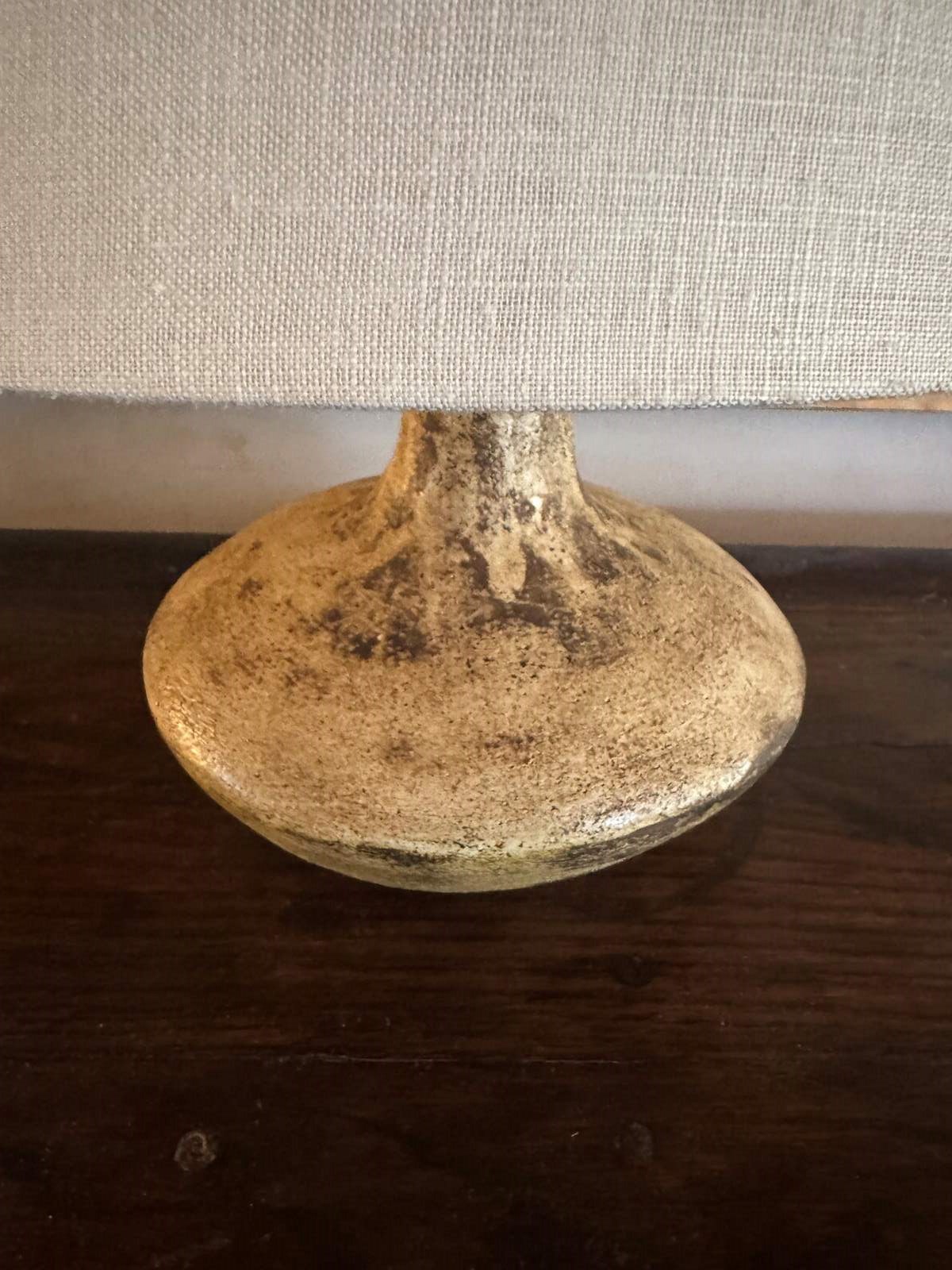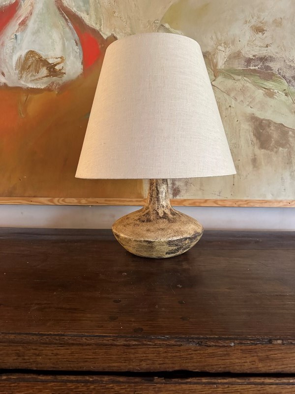 A fabulous French 1970’s glazed ceramic lamp in the style of the Deux Potiers signed indistinctly and dated 1978. Shade for display. Sold rewired with silk flex.