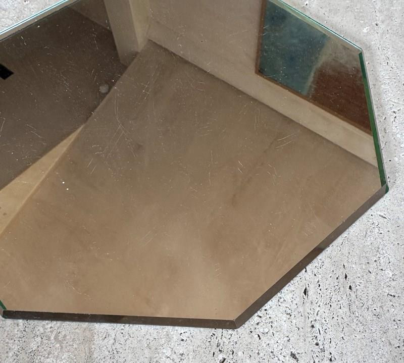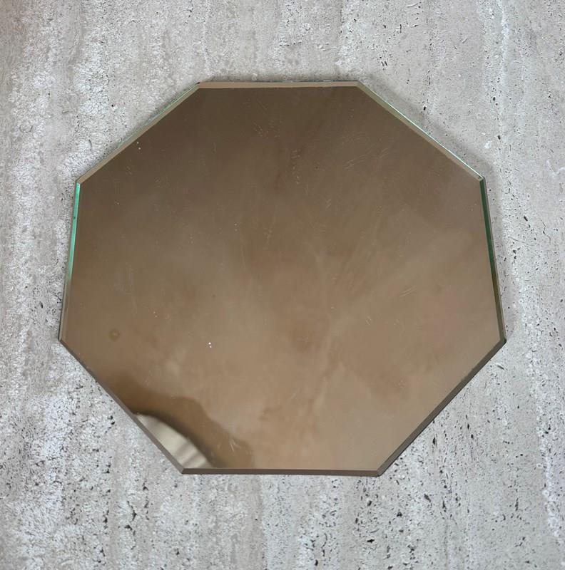 Pretty large octagonal shaped mirrored coaster with original felt back. Bevelled edge.
