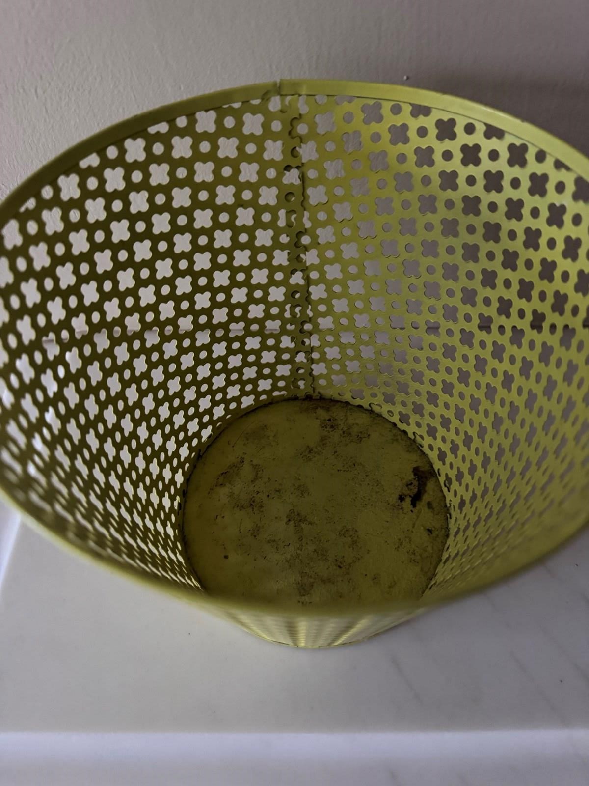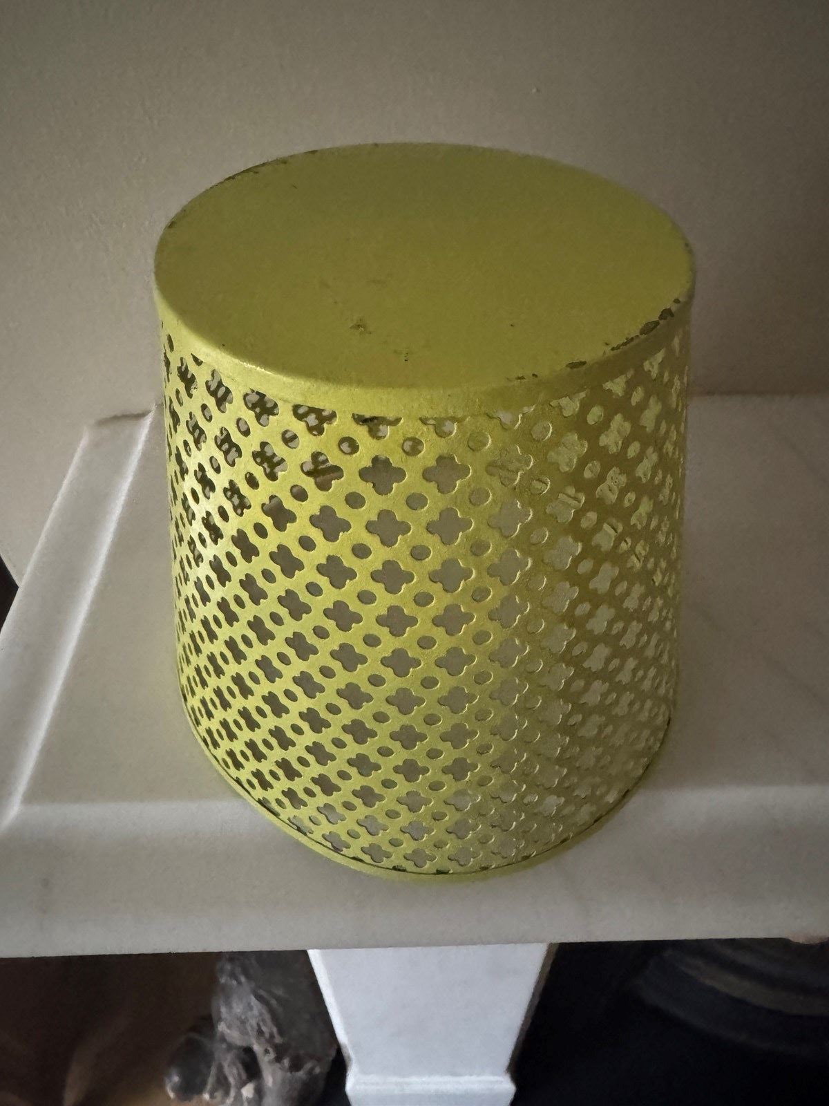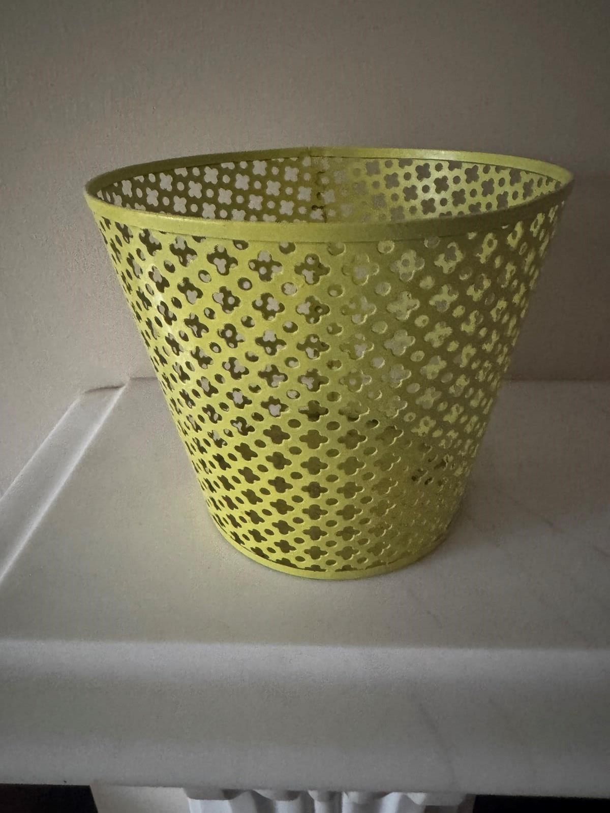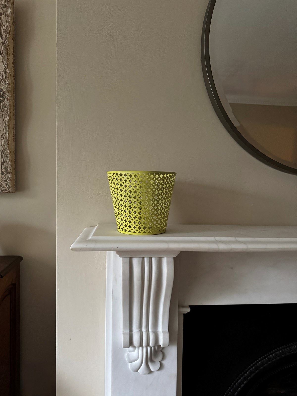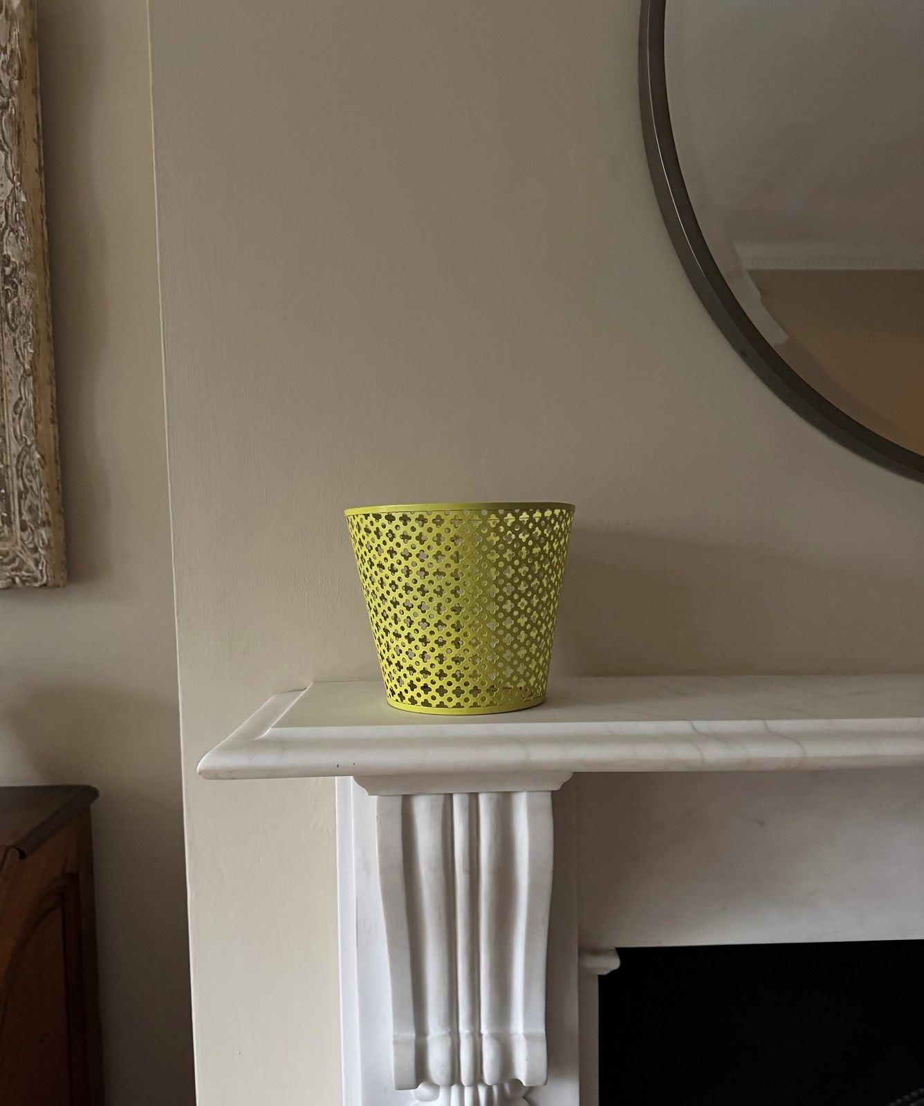 French 1960’s pierced metal planter manner of Mathieu Mategot. Refinished in yellow.