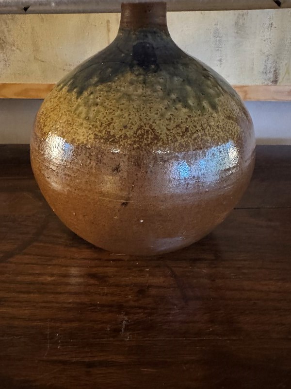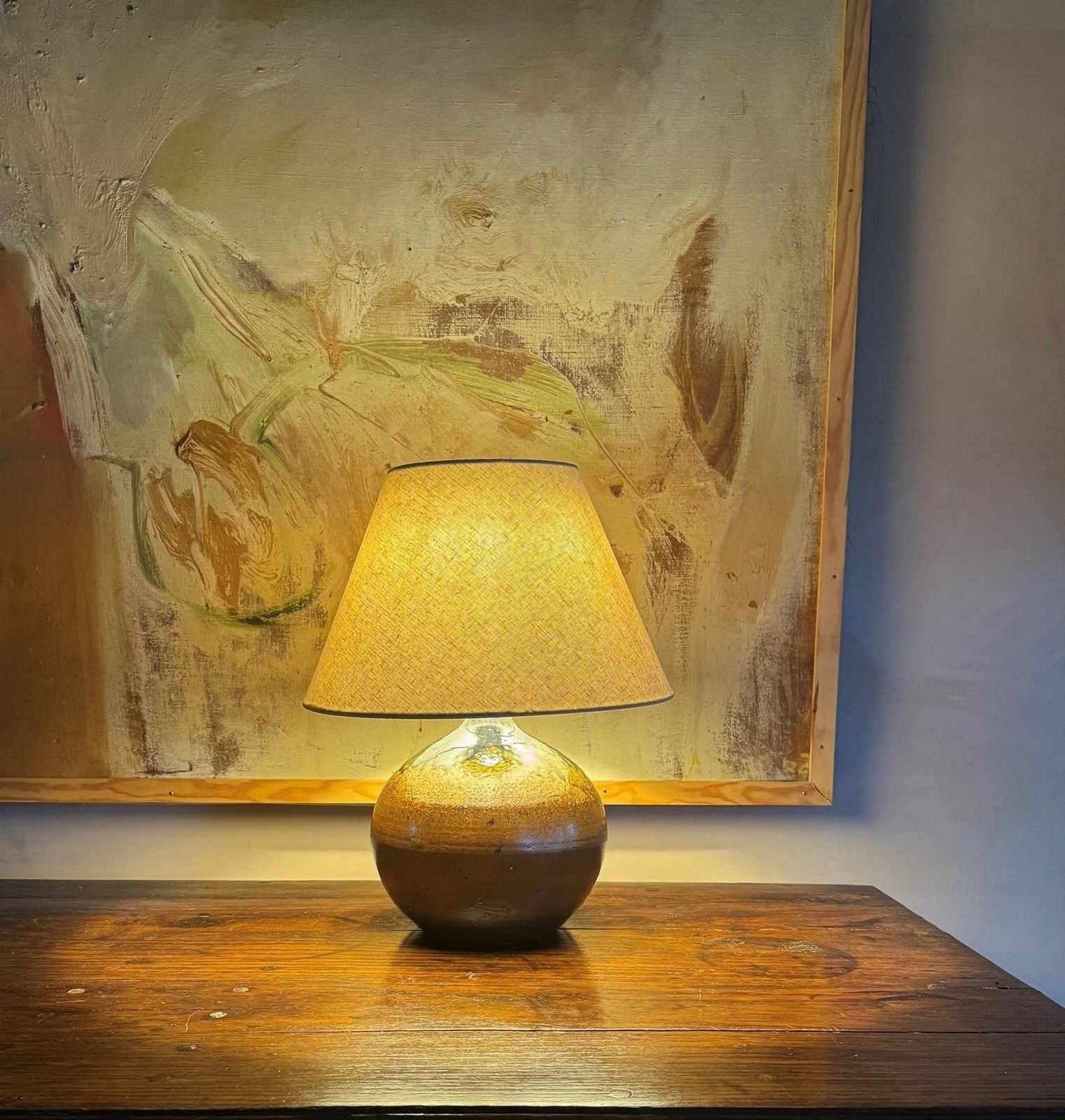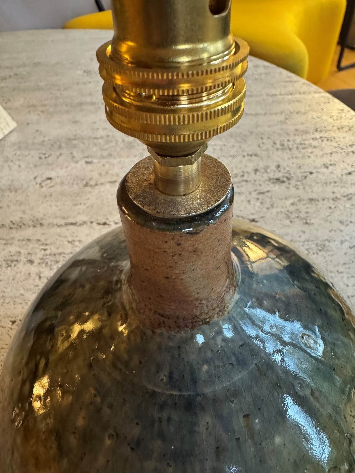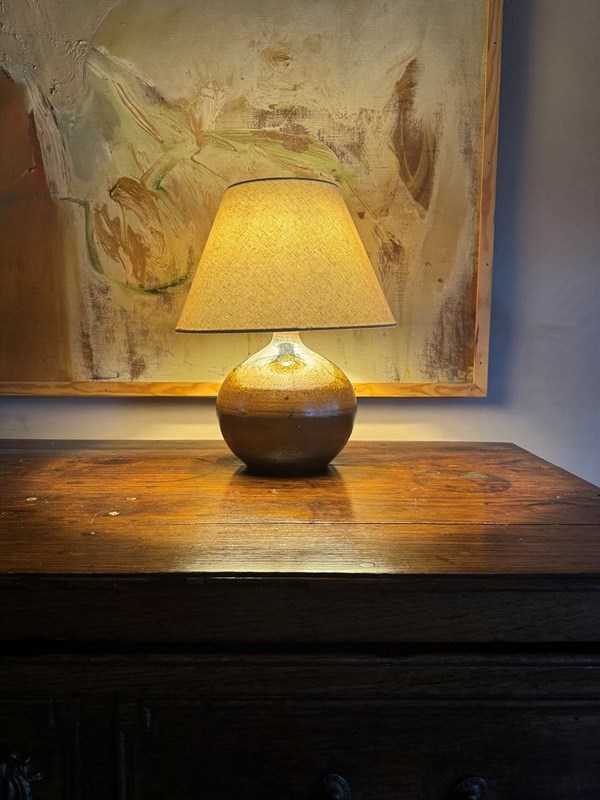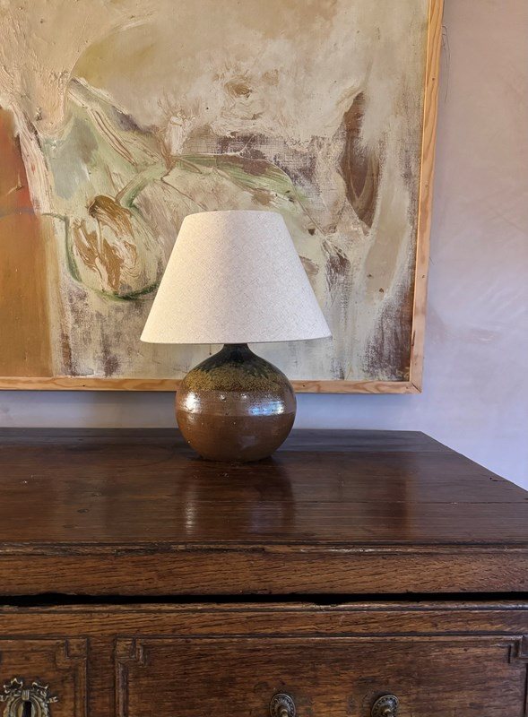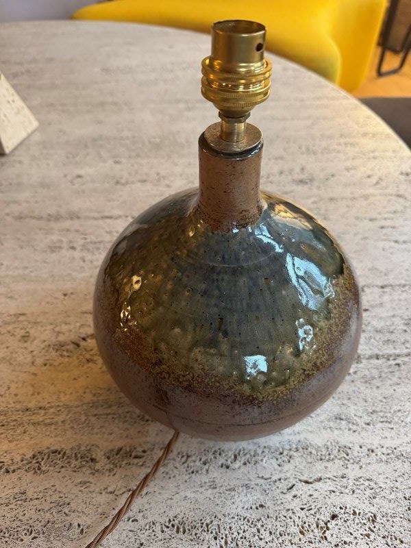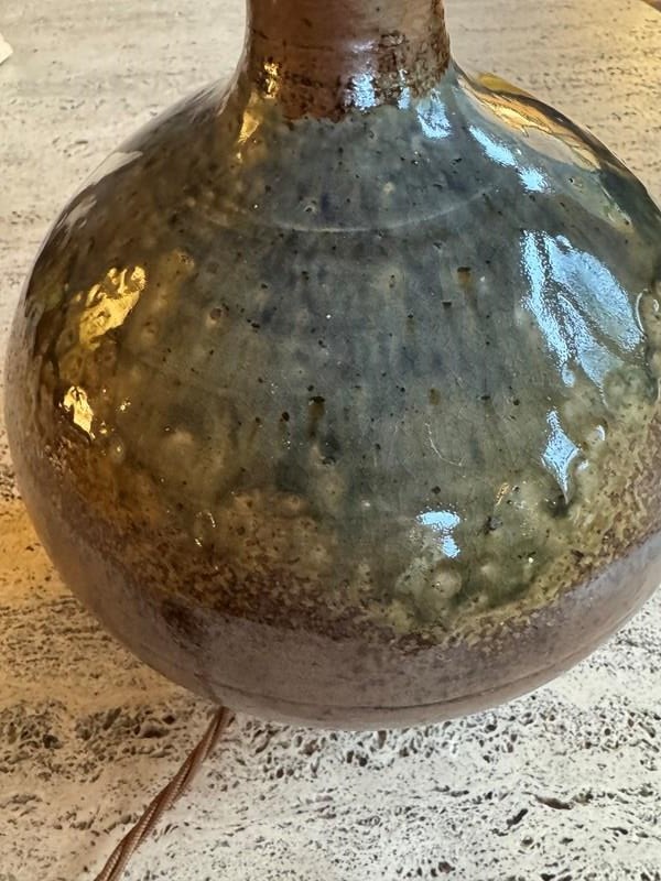 French 1970's glazed ceramic table lamp. Rewired and Pat tested. Shade for display.