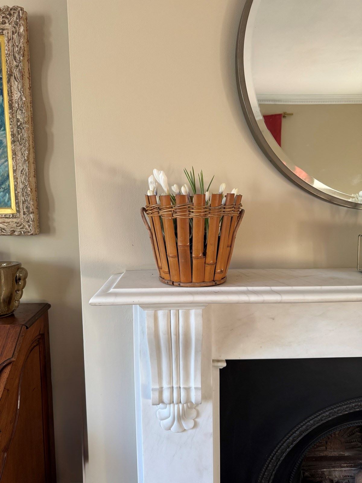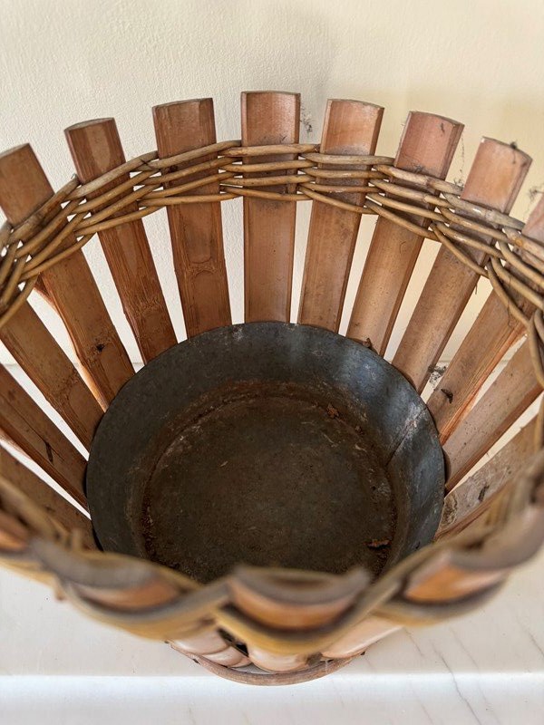 Gorgeous French 1950’s bamboo planter, cachepot with zinc liner.