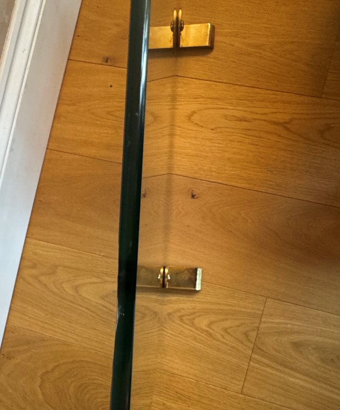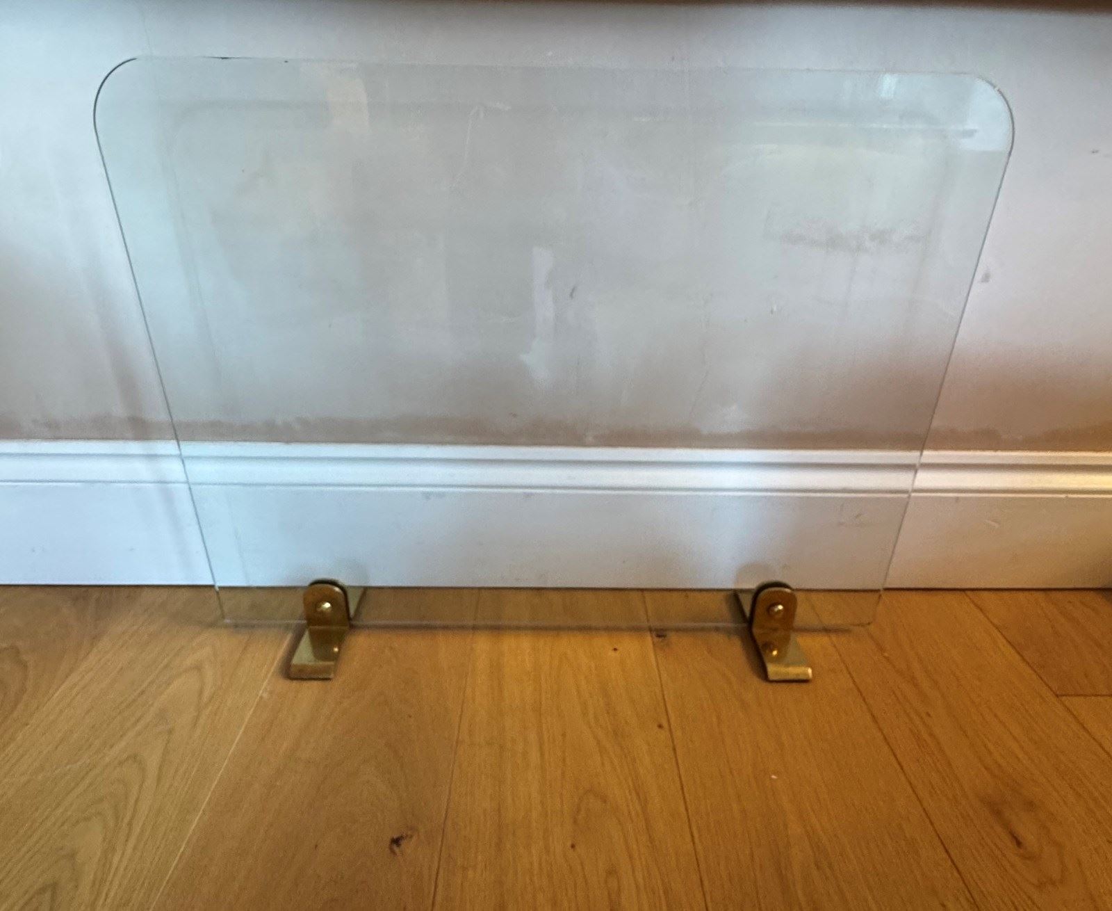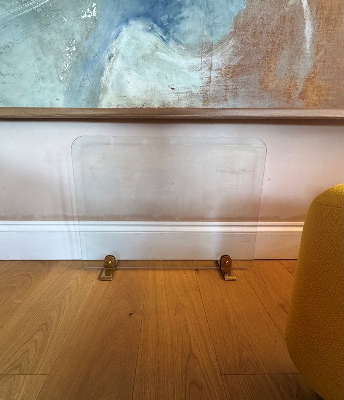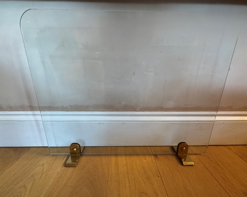 A stunning glass and bronze firescreen in the style of Jacques Adnet. Two small chips, one to the top ( inside so not very visible and one on the bottom corner) both chips have been filed down so soft to touch.