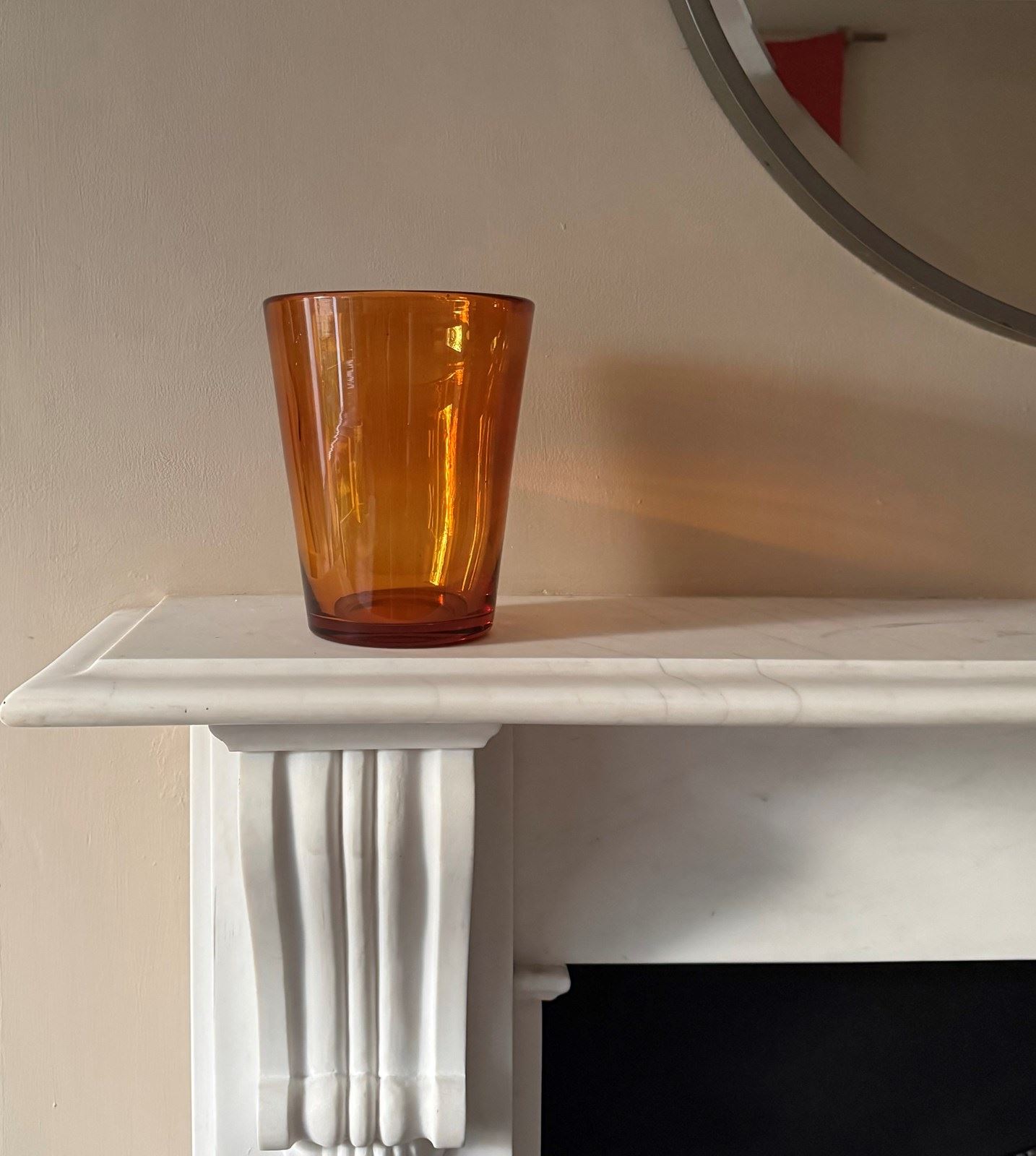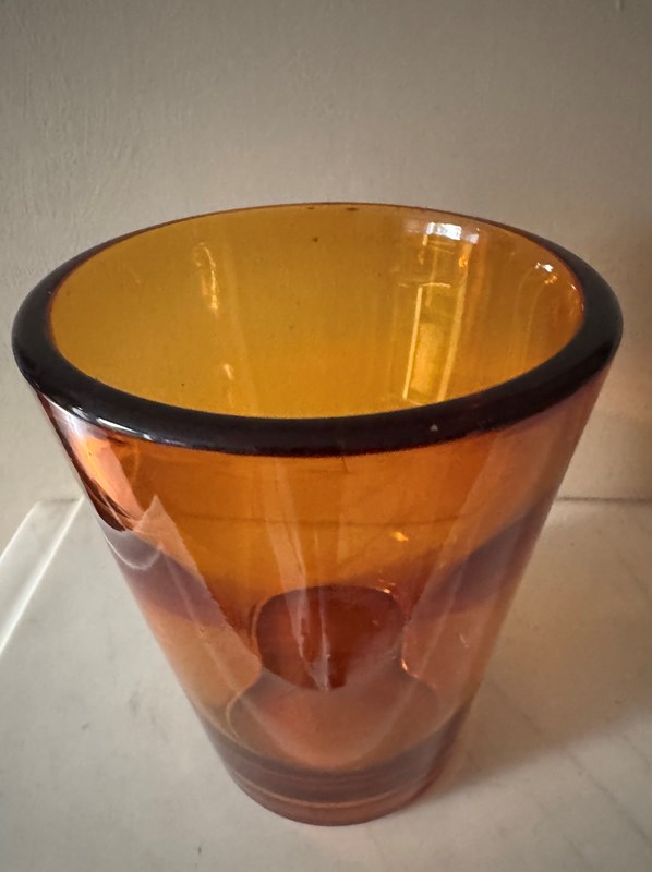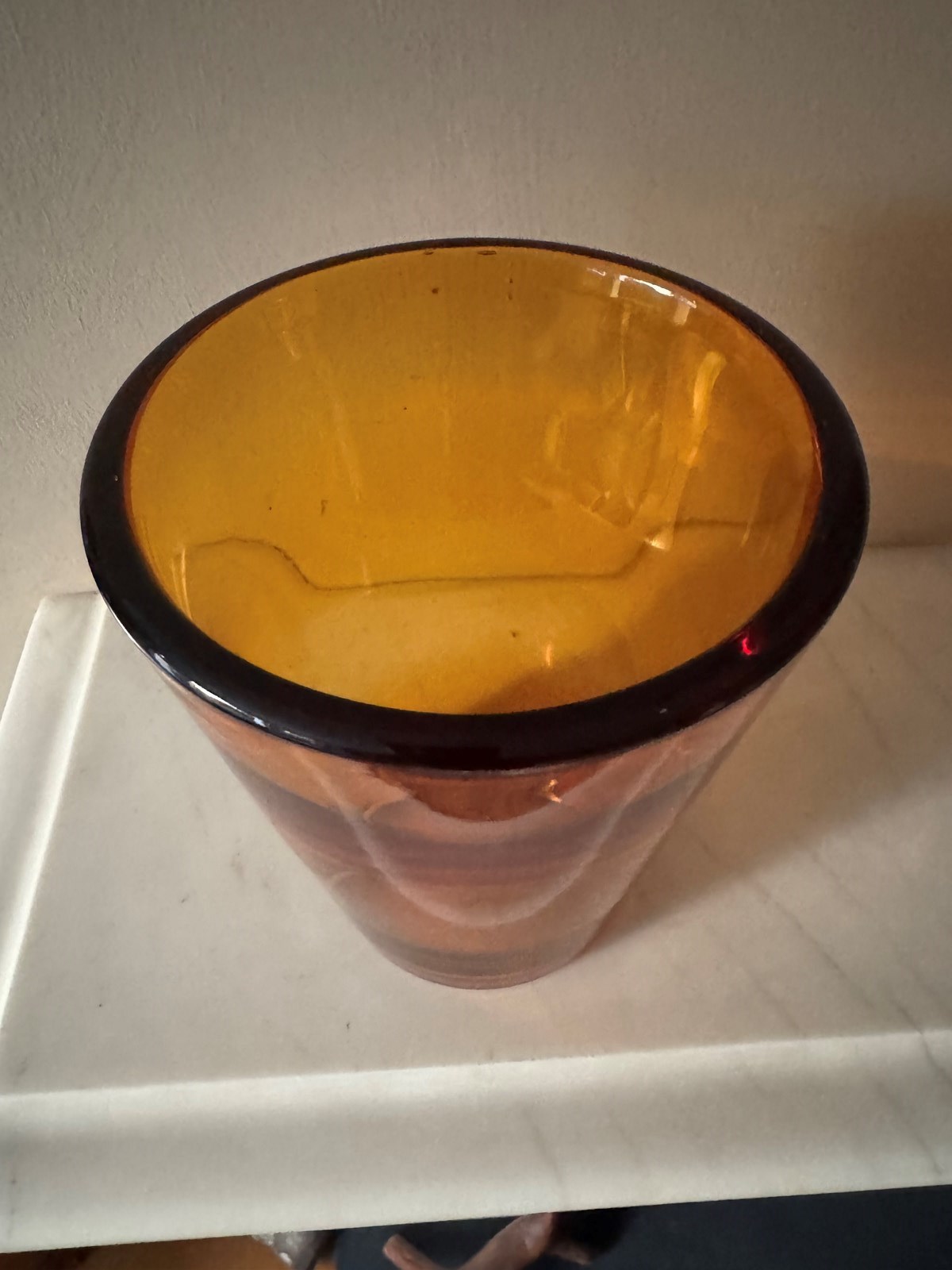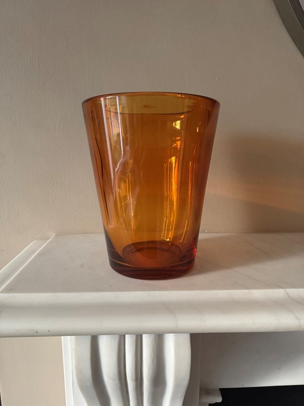 Heavy Thick Rimmed Deep Orange Handblown Vase C.1950’S