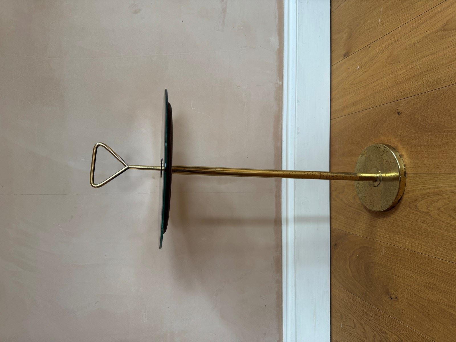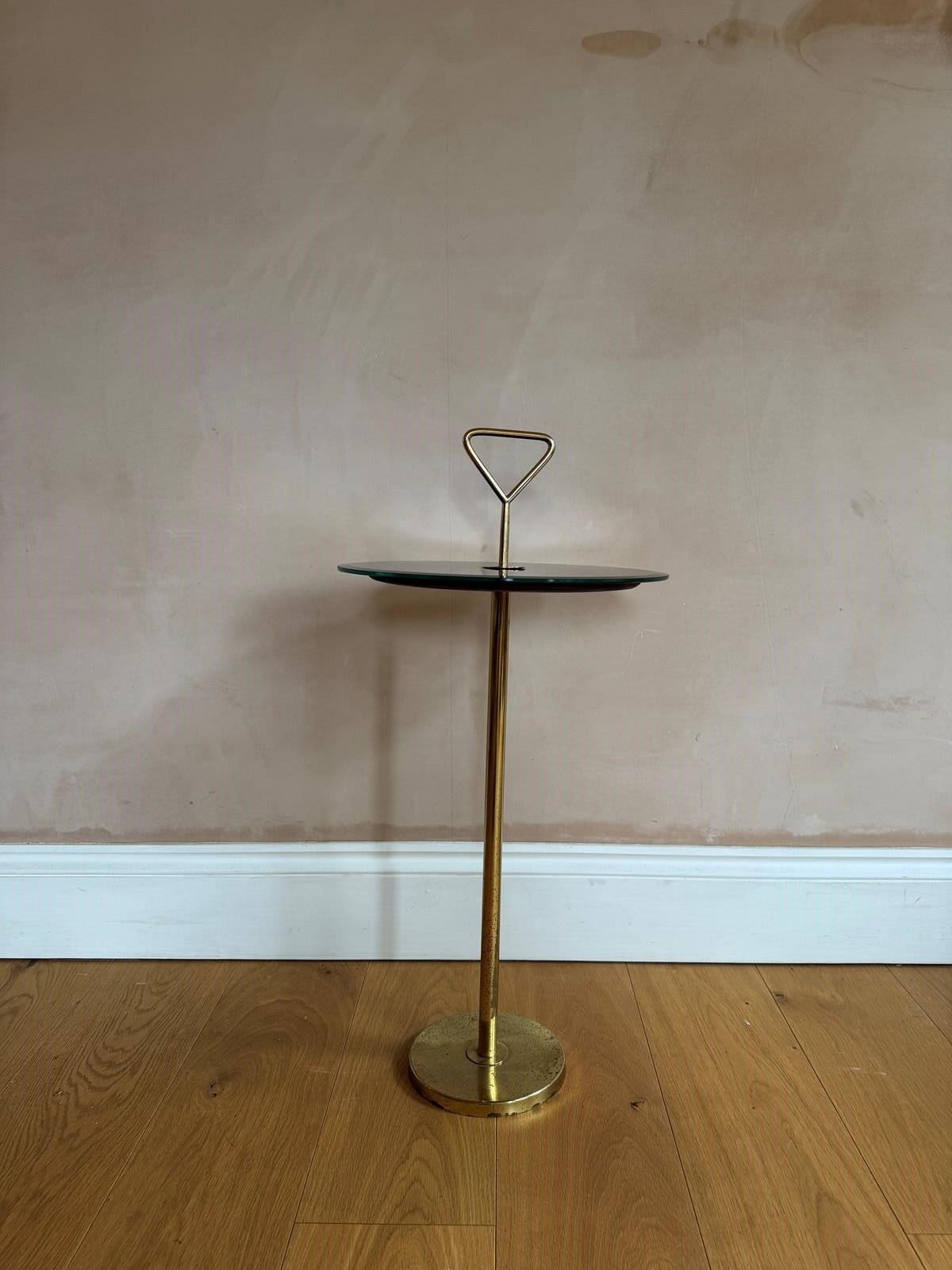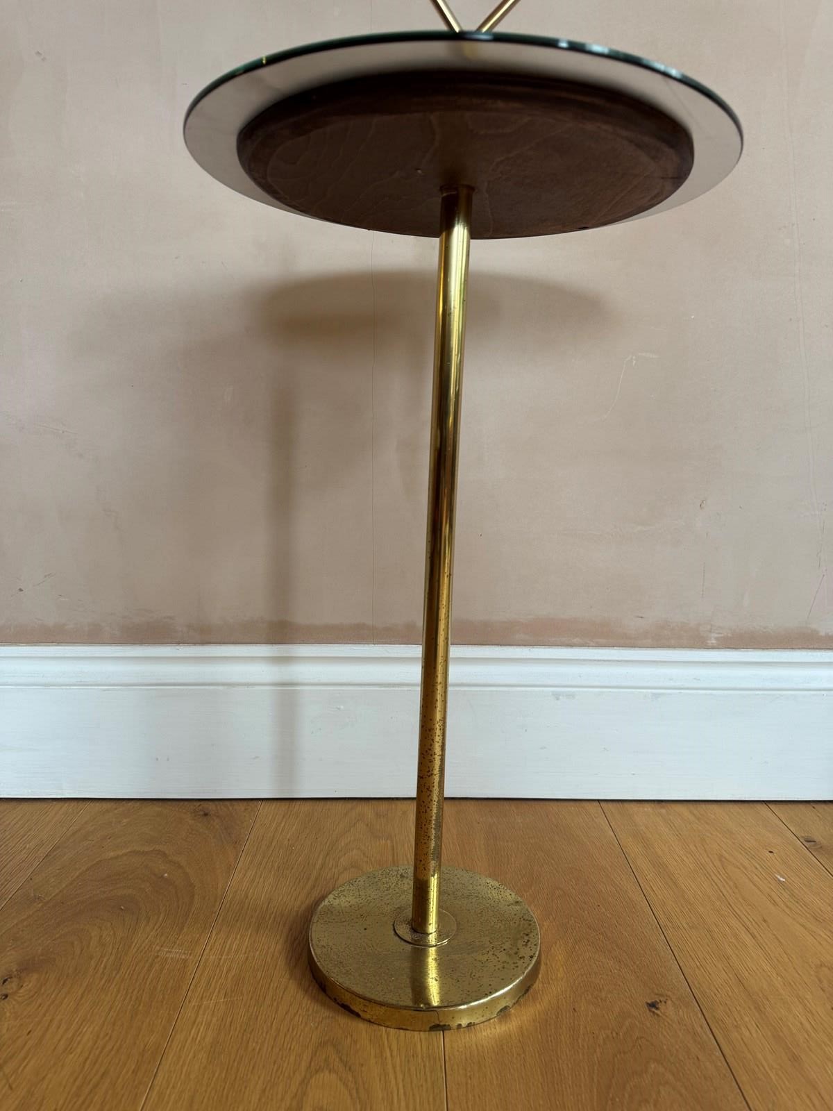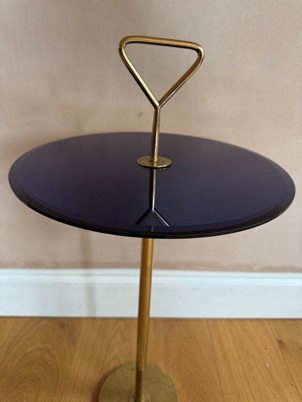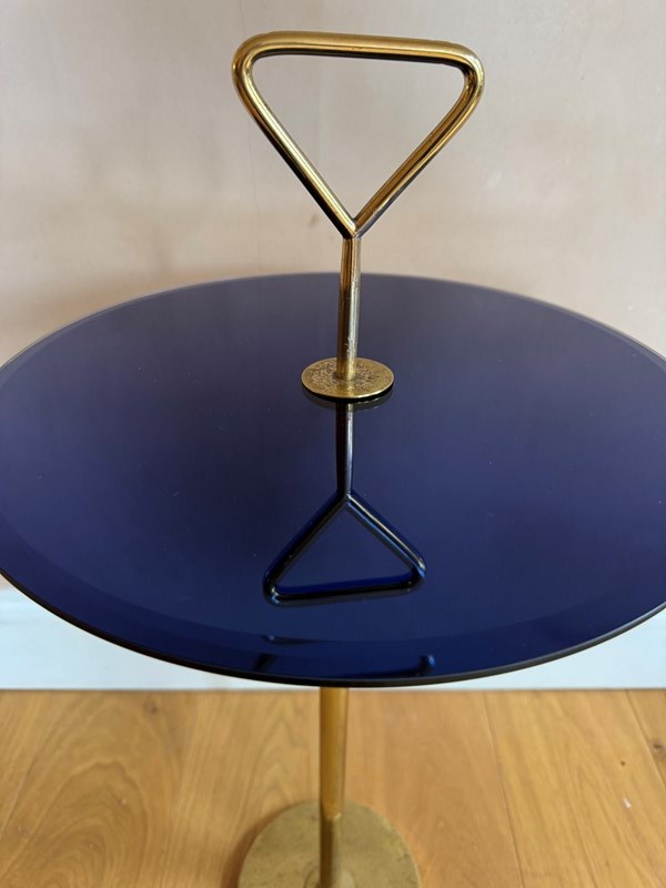 A blue mirrored top and brass martini side table attributed to Cesare Lacca Italian c.1960’s. Mirror replaced.