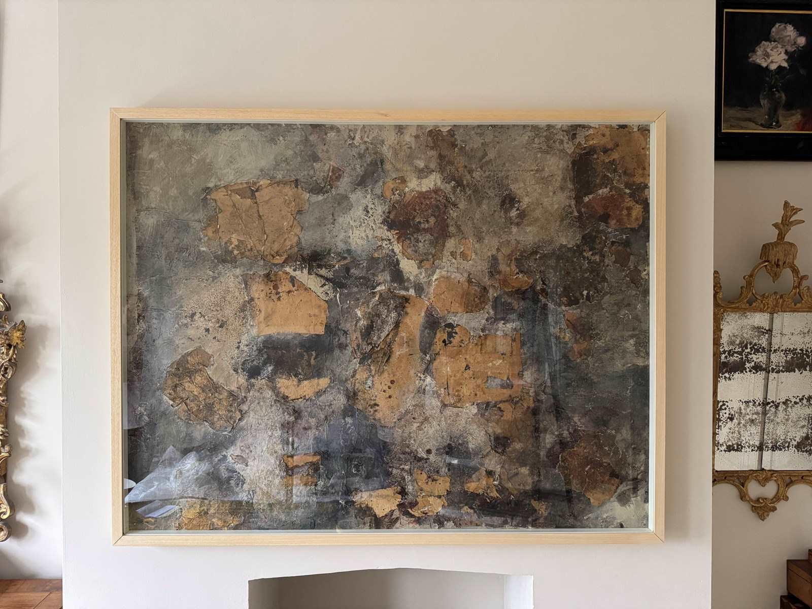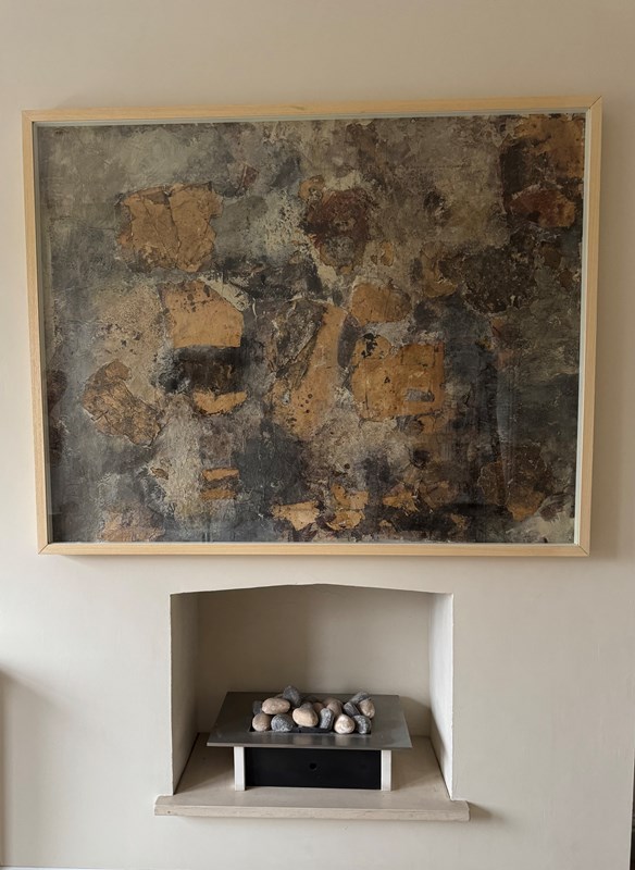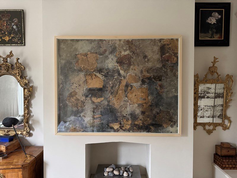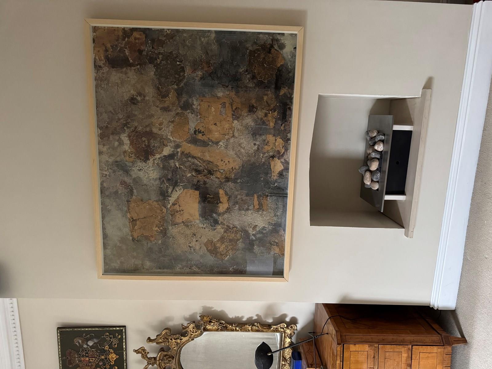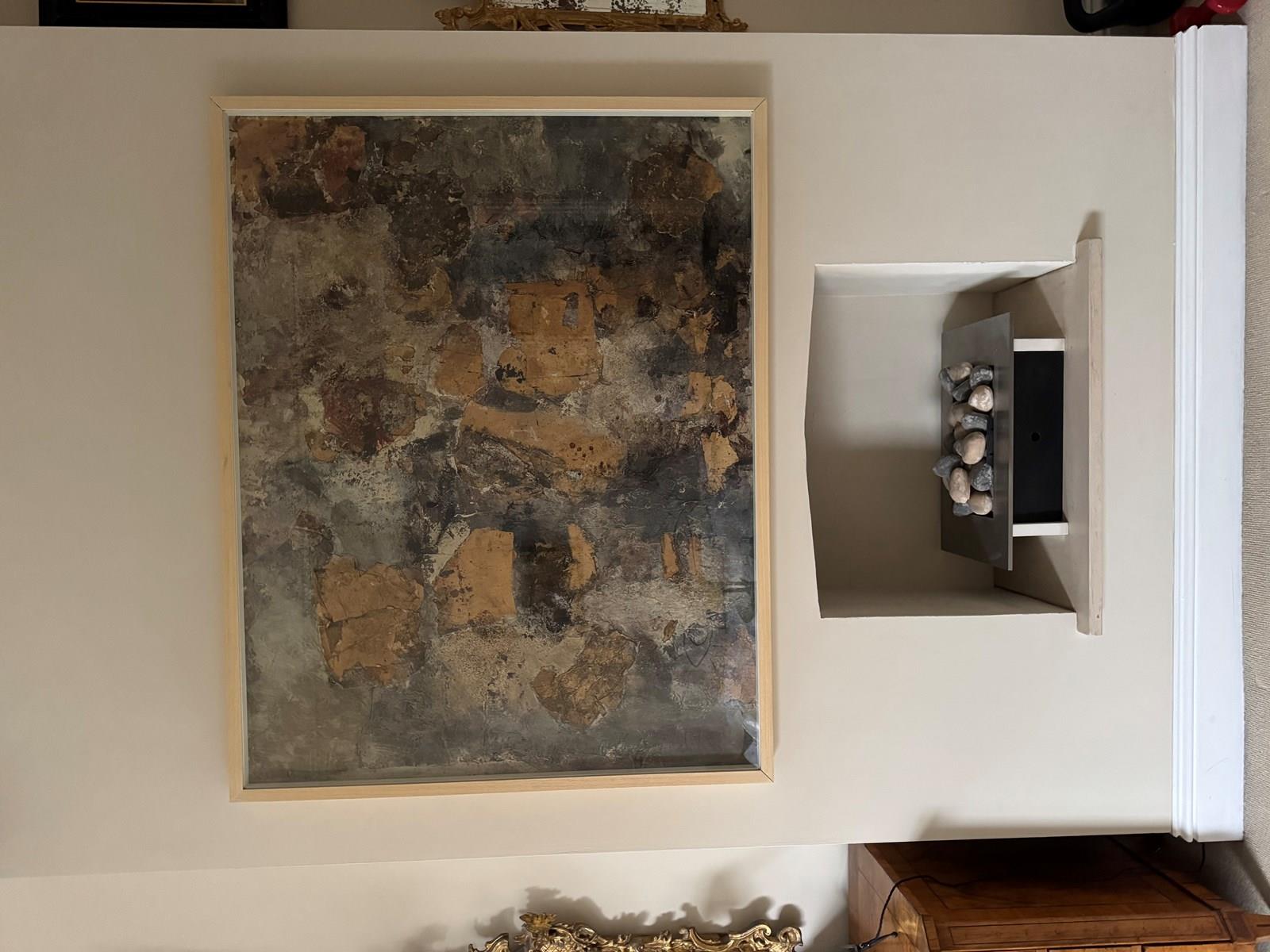 Fabulous large abstract mixed media collage on canvas signed verso Stefanon and dated 1960. Reframed and underglaze.