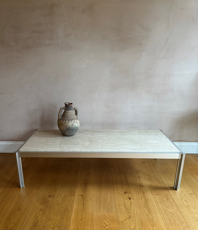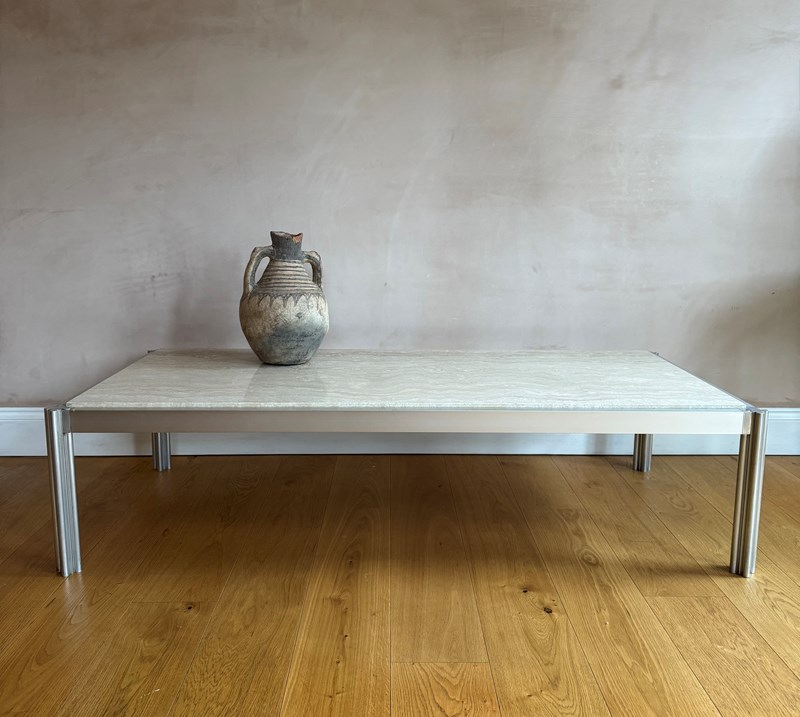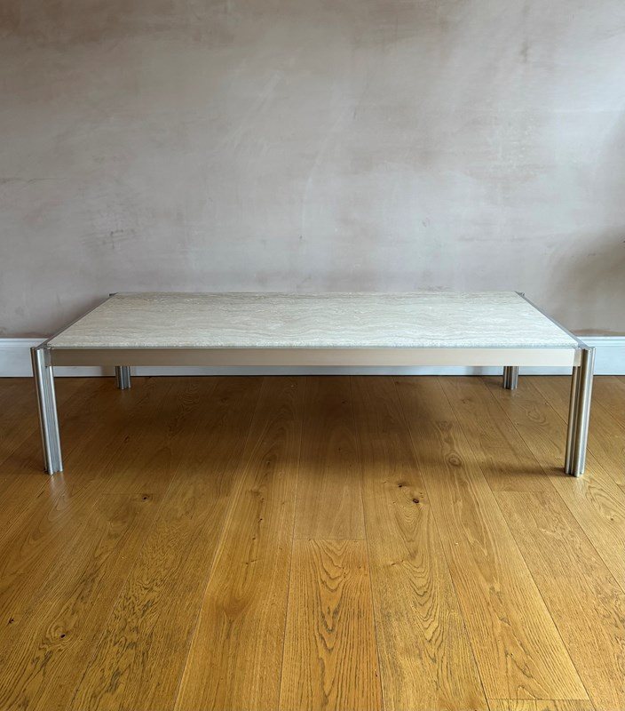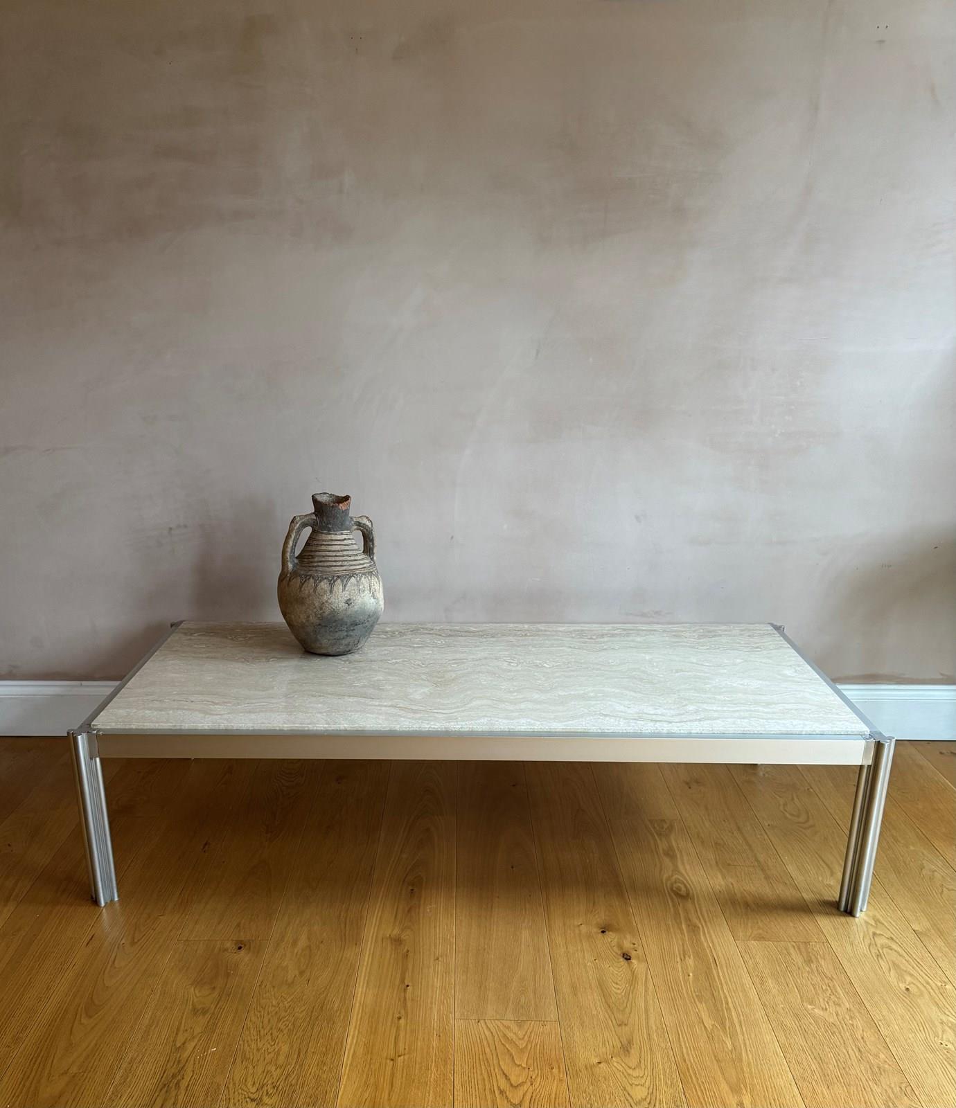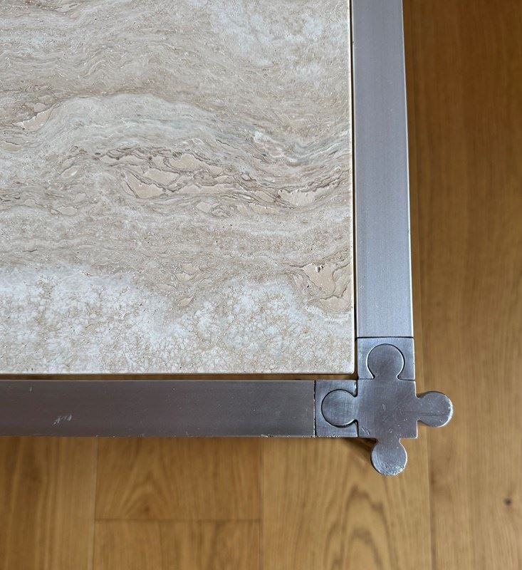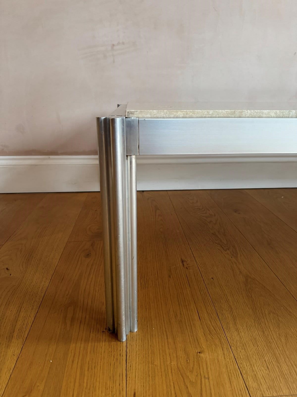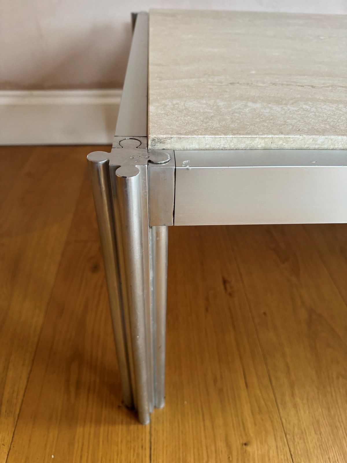 A large travertine and aluminium coffee table by George Ciancimino. French c.1970’s