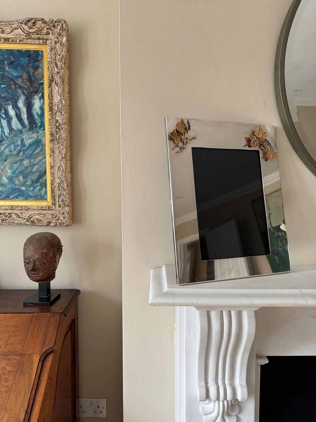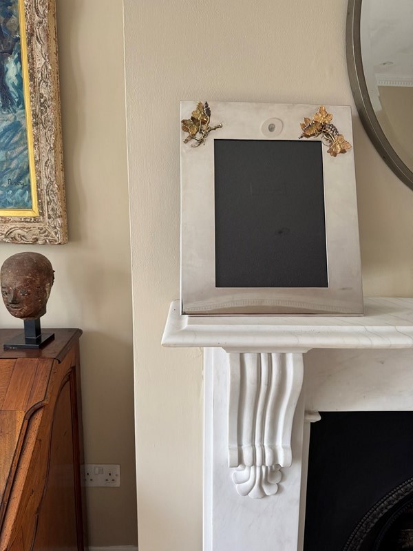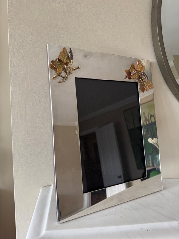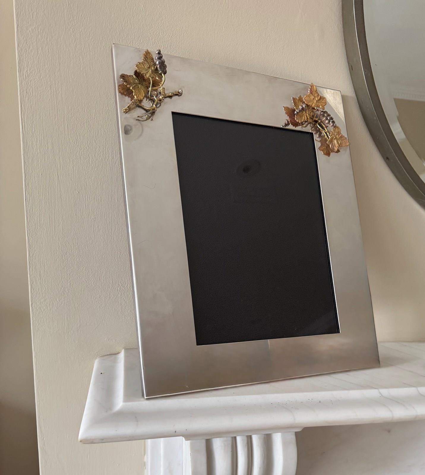 Beautiful and fabulous quality large Mappin & Webb silverplate photo frame with gilt metal foliage detail.