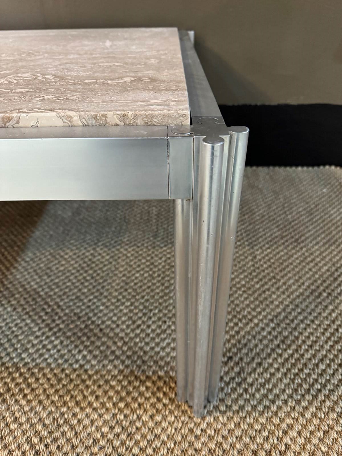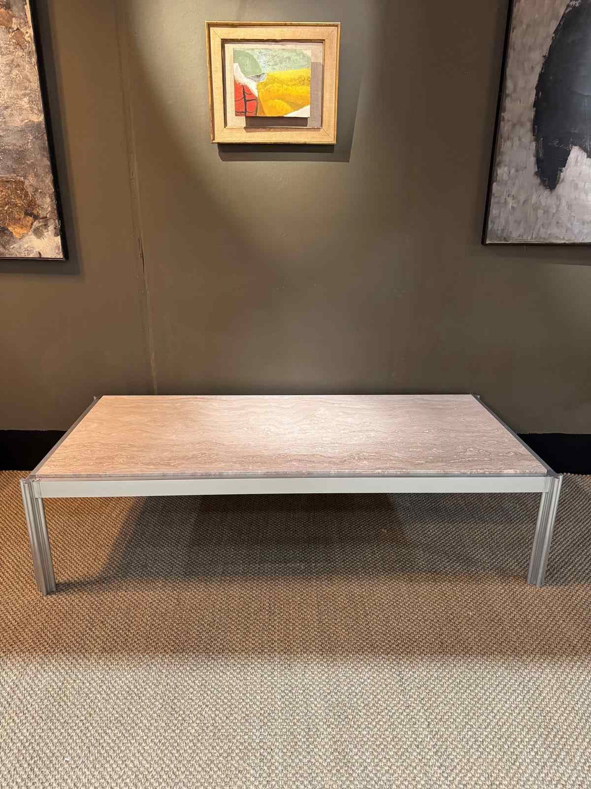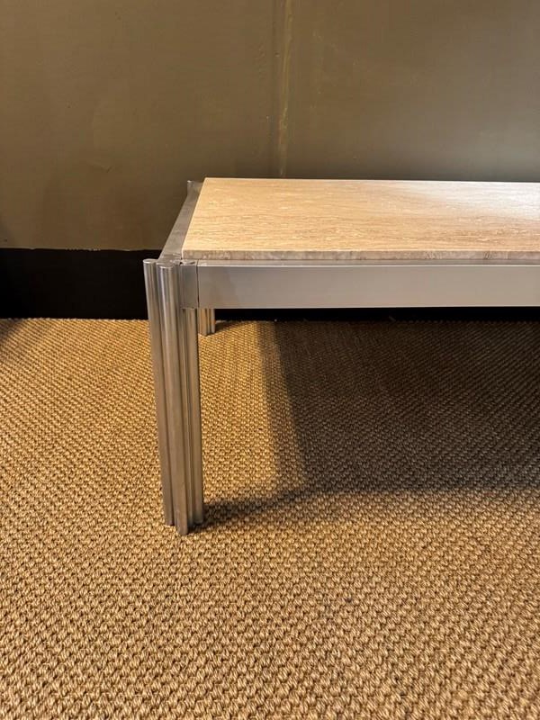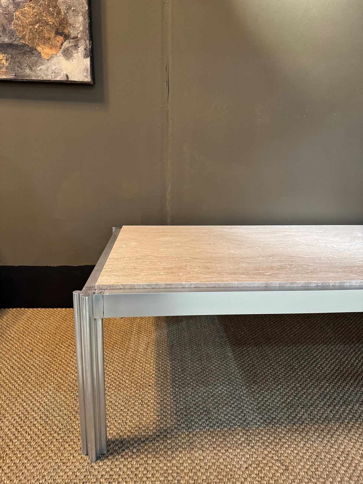 Large aluminium and travertine coffee table designed by George Ciancimino. French c.1970’s