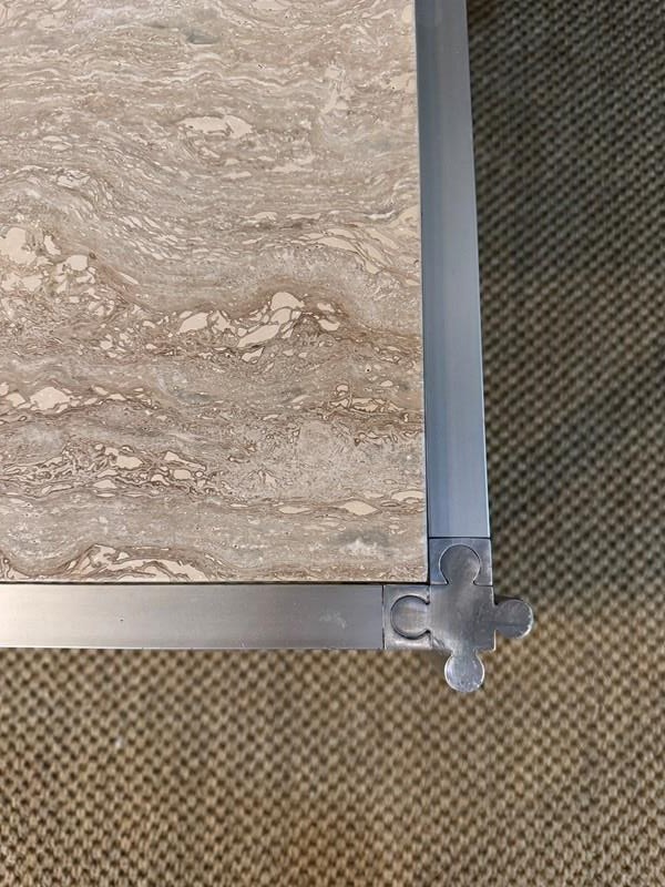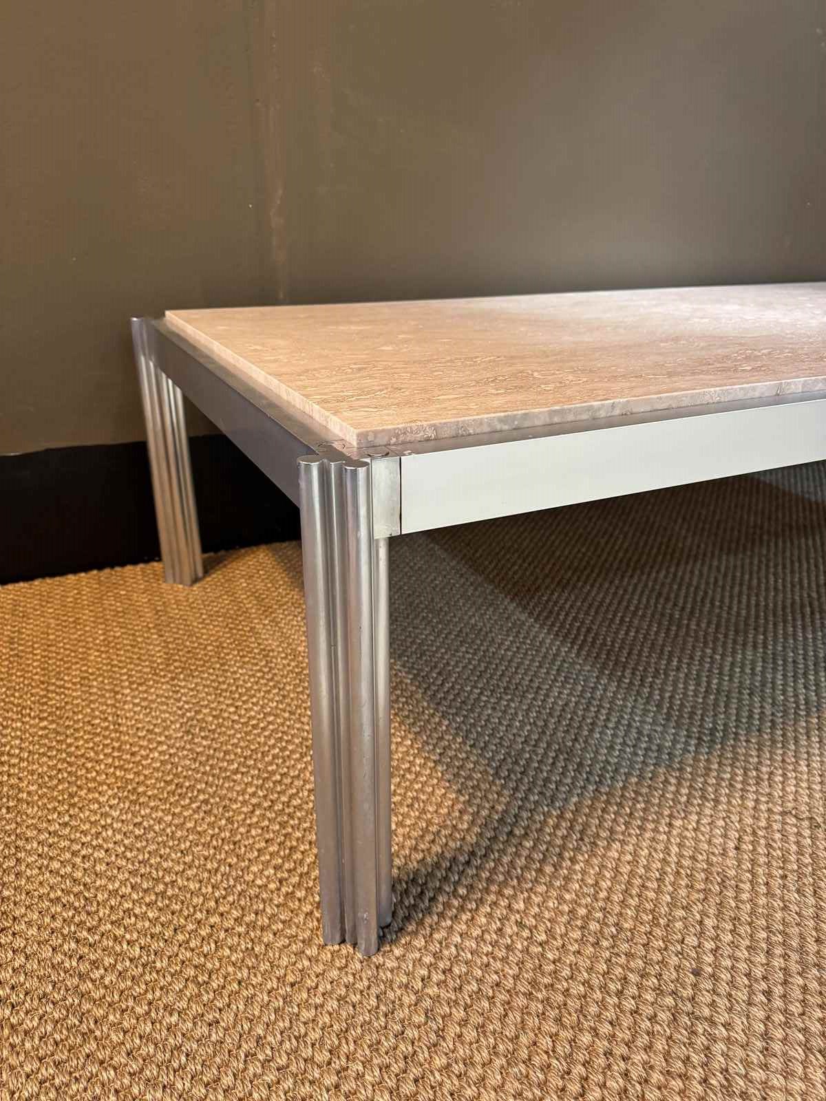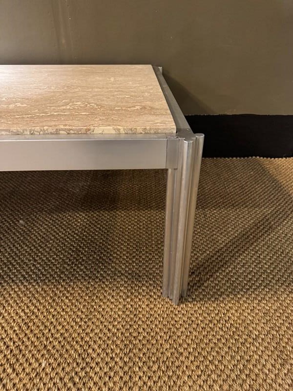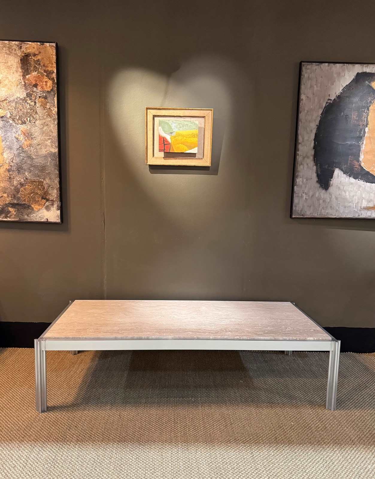 Large aluminium and travertine coffee table designed by George Ciancimino. French c.1970’s