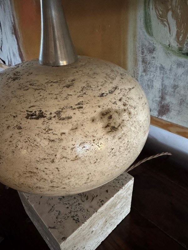 Large Travertine Barbier Table Lamp Paris C.1970’S