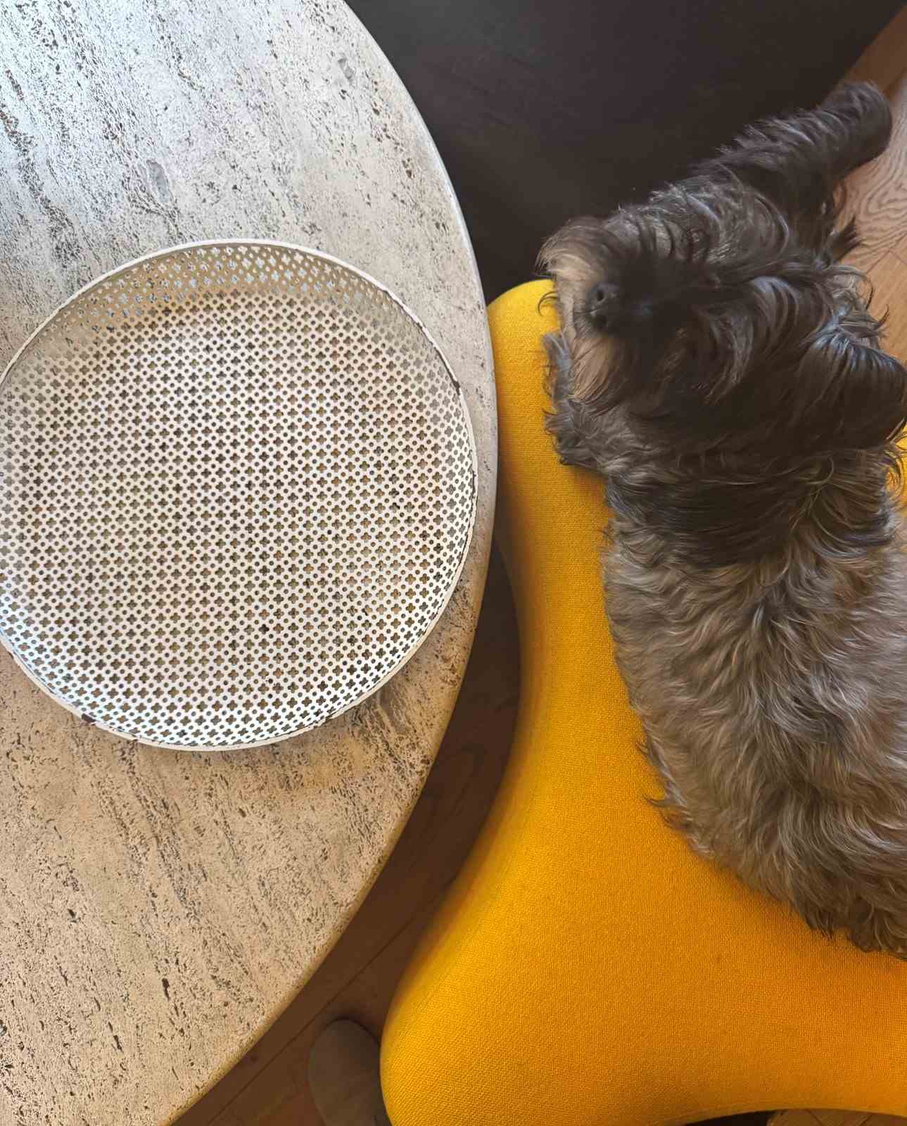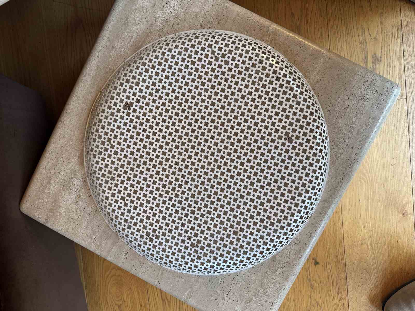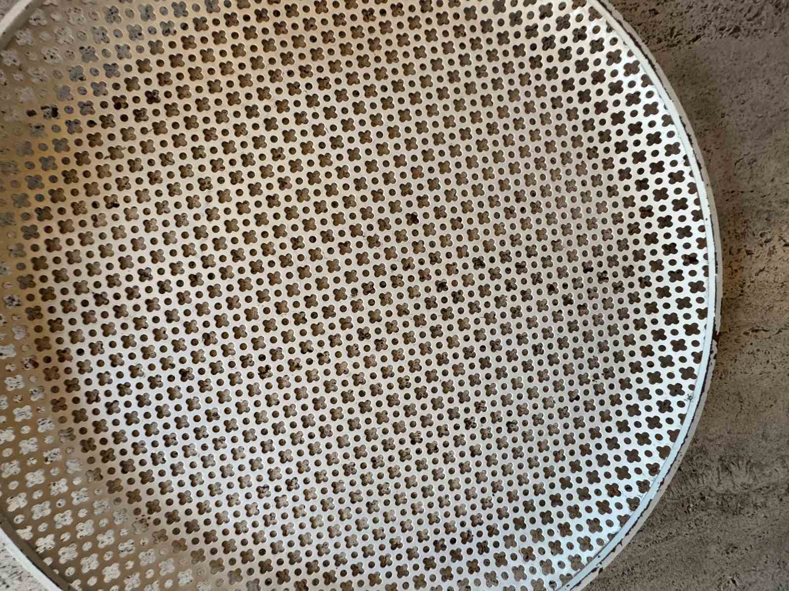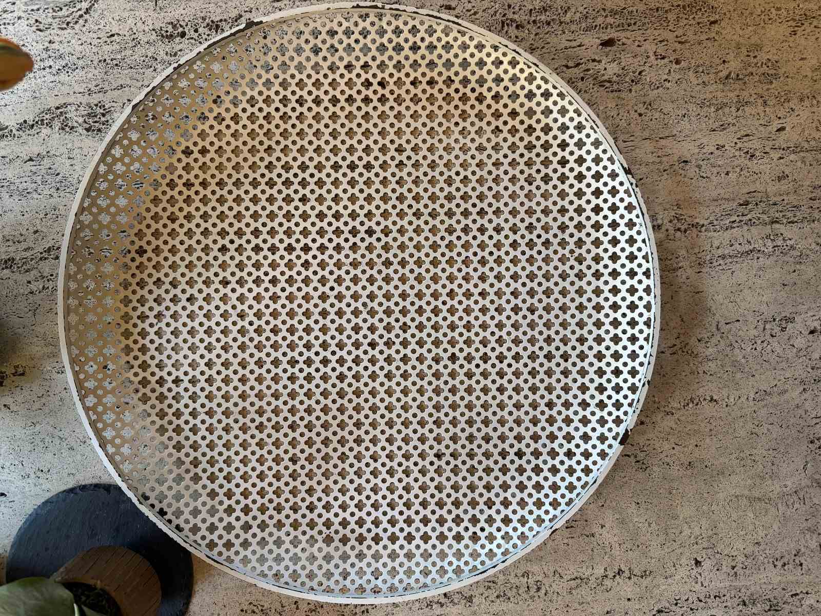 Great example of a very large pierced metal tray by Mathieu Mategot. Minor paint loss, original colour.