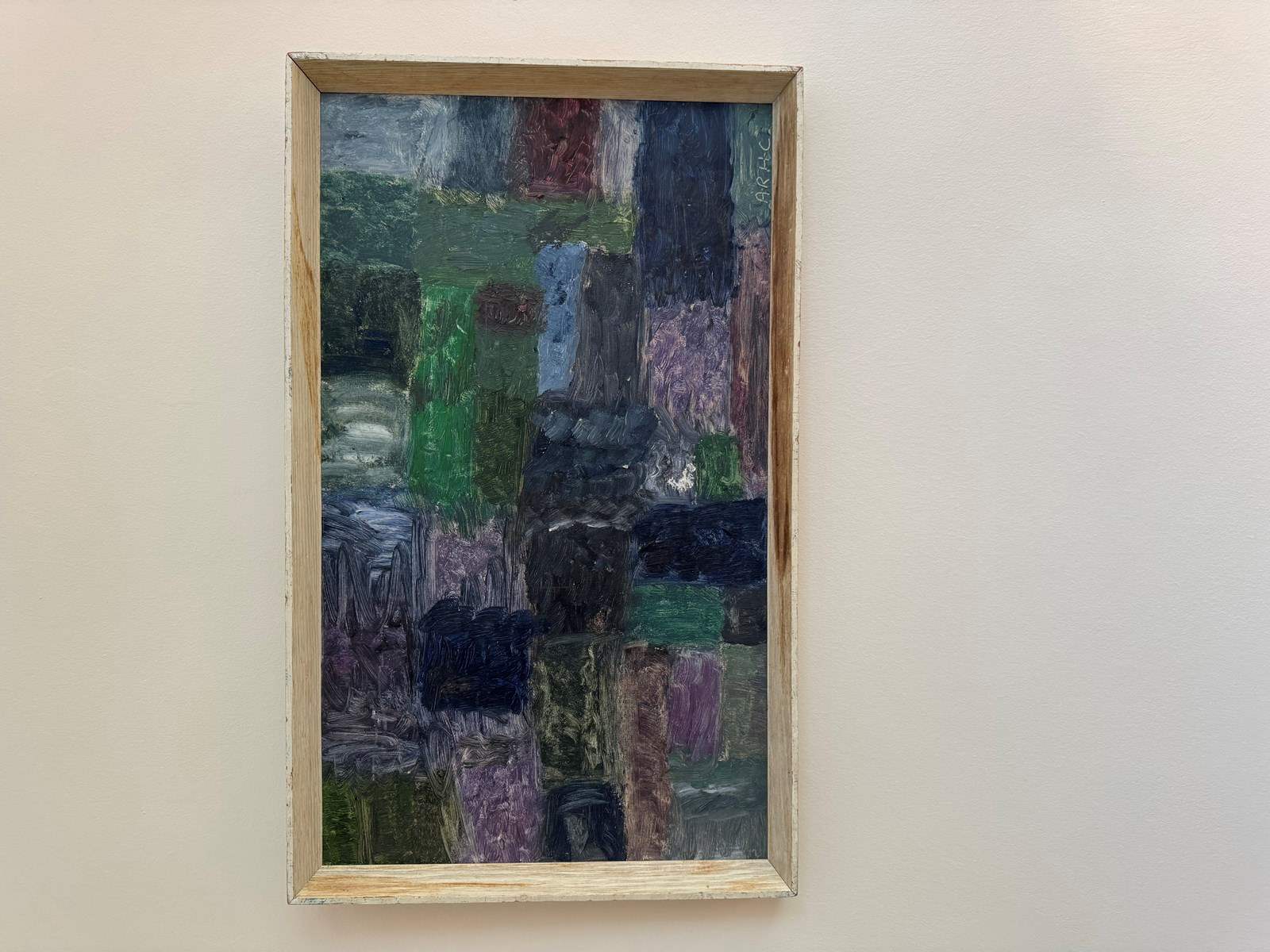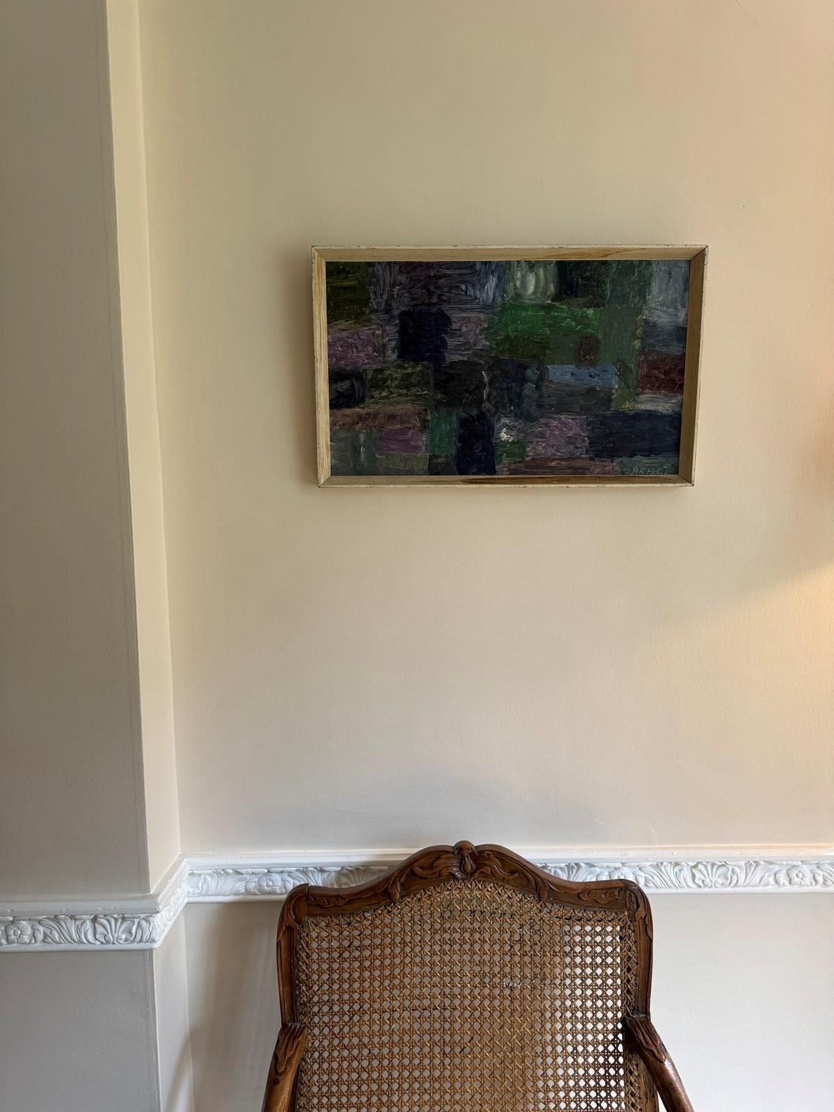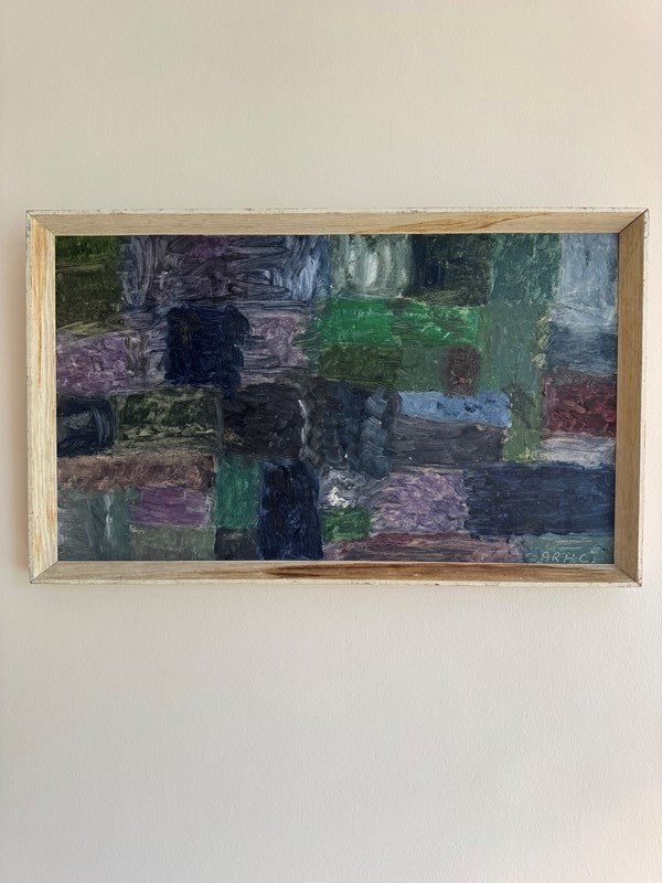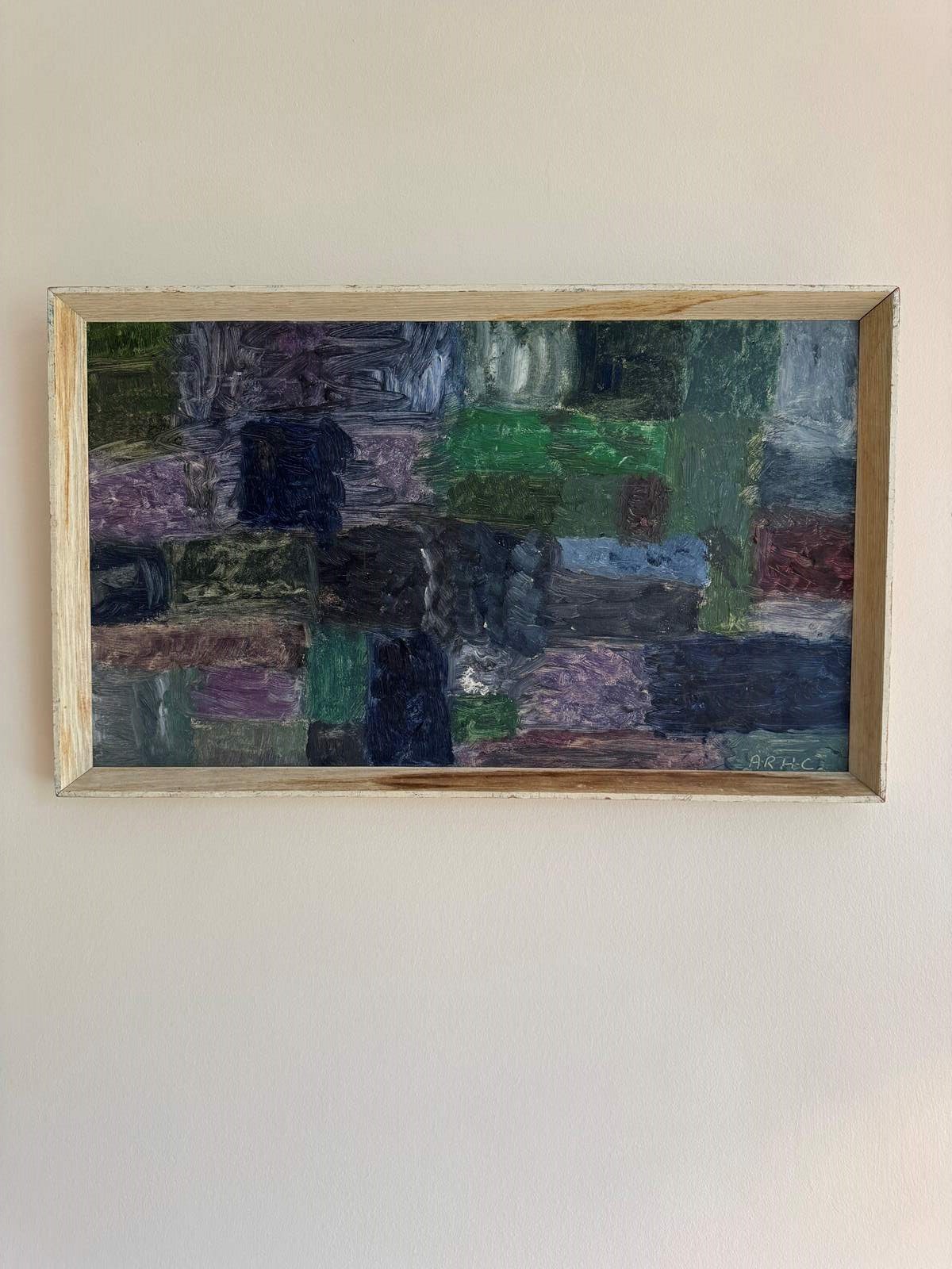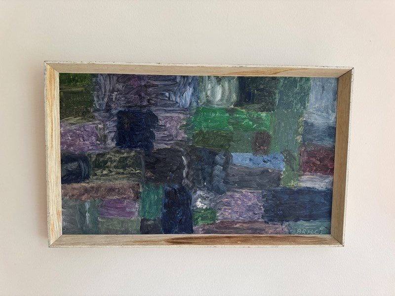 Modern British 1960’s abstract painting oil on board. Signed with initials ARHC.