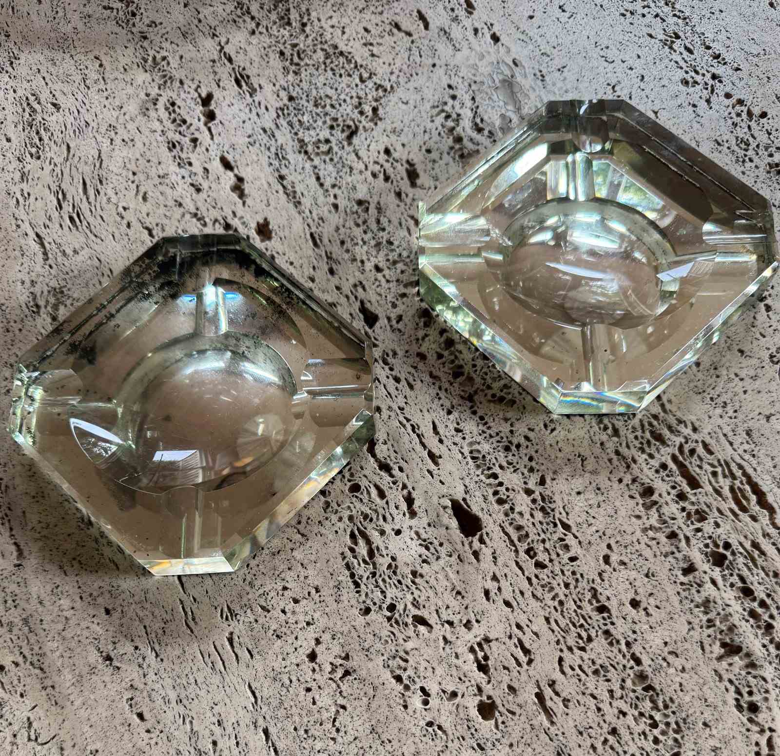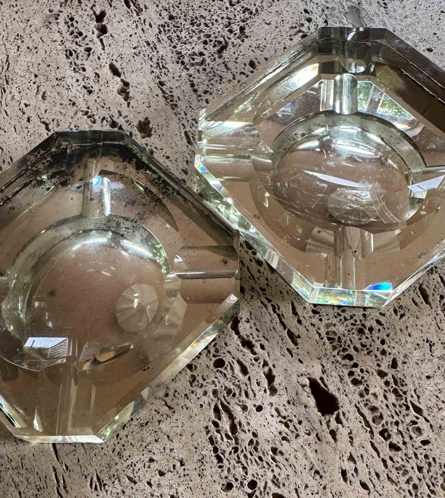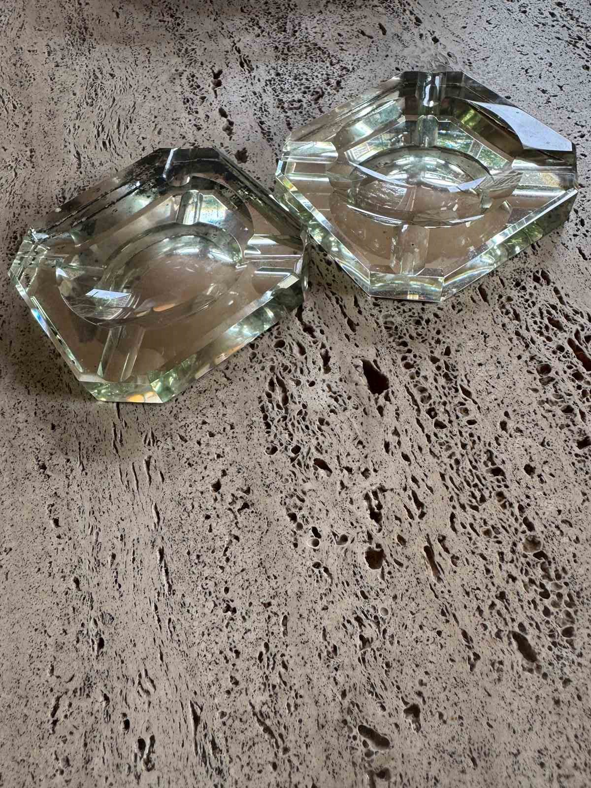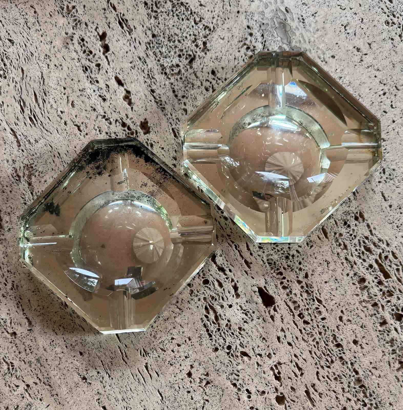 Pair Of Modernist Mirrored Glass Saint Gobain Ashtrays Videpoches