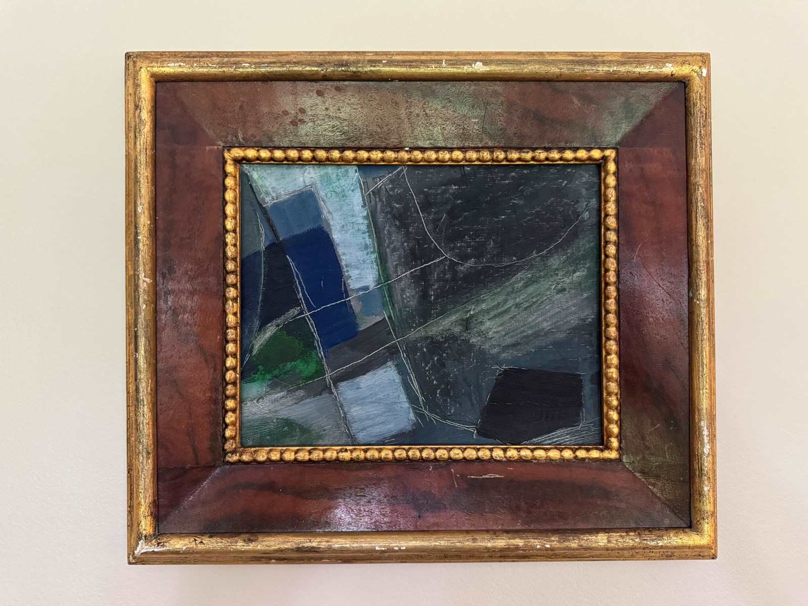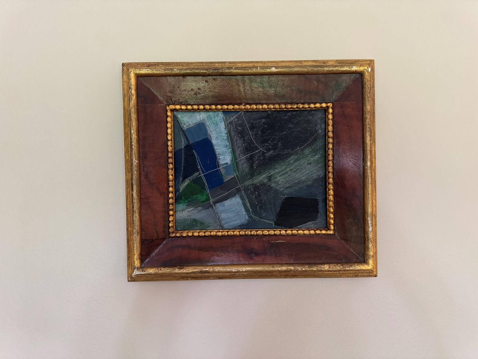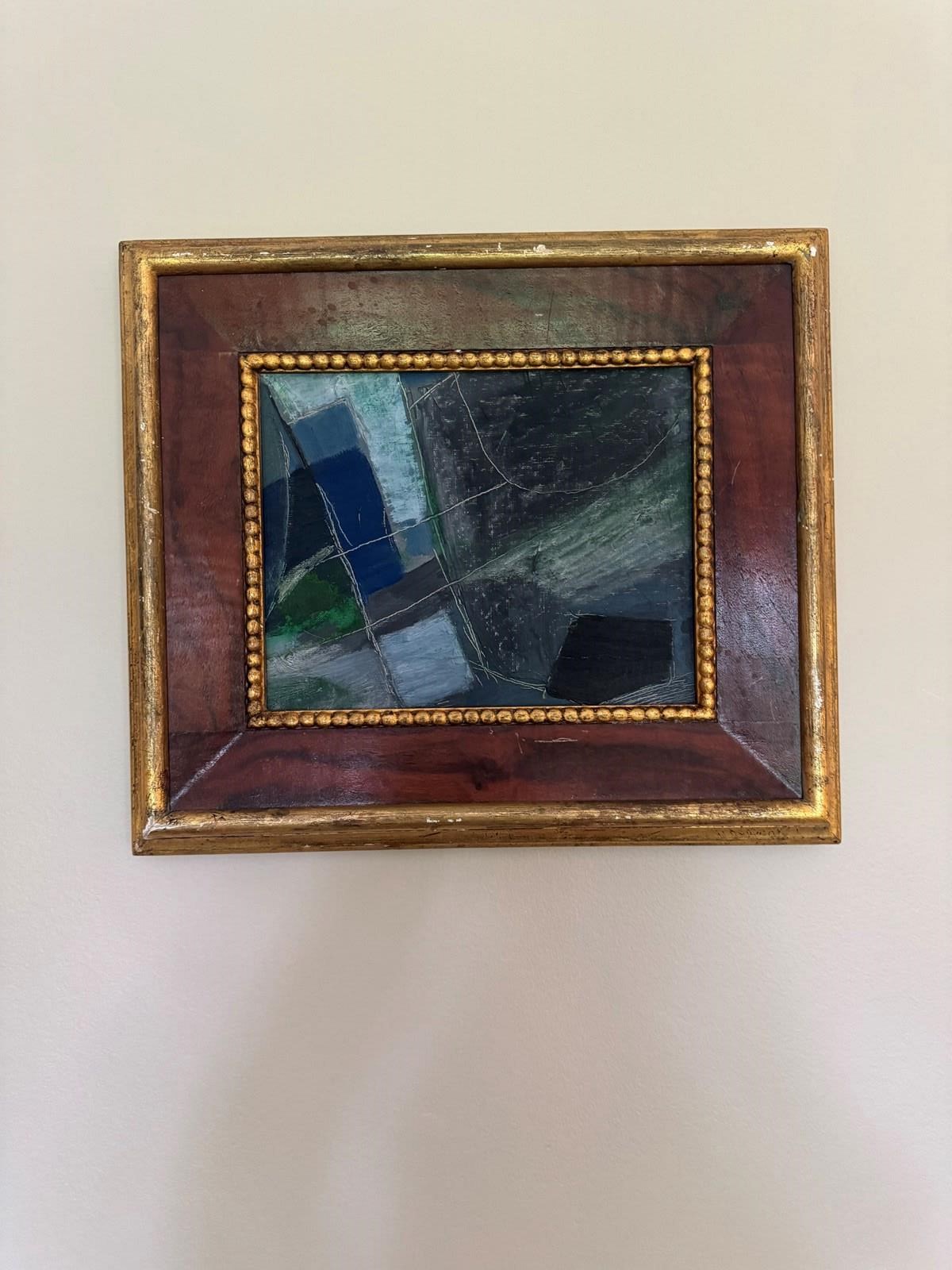 Small British Modern school abstract. Oil on canvas laid on mahogany. Unsigned.