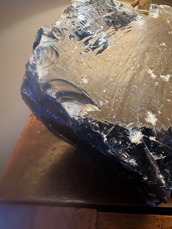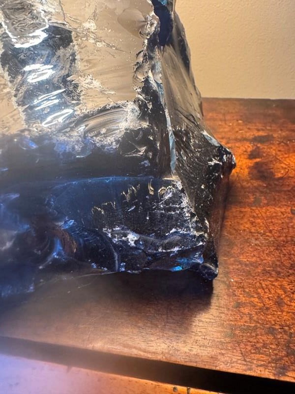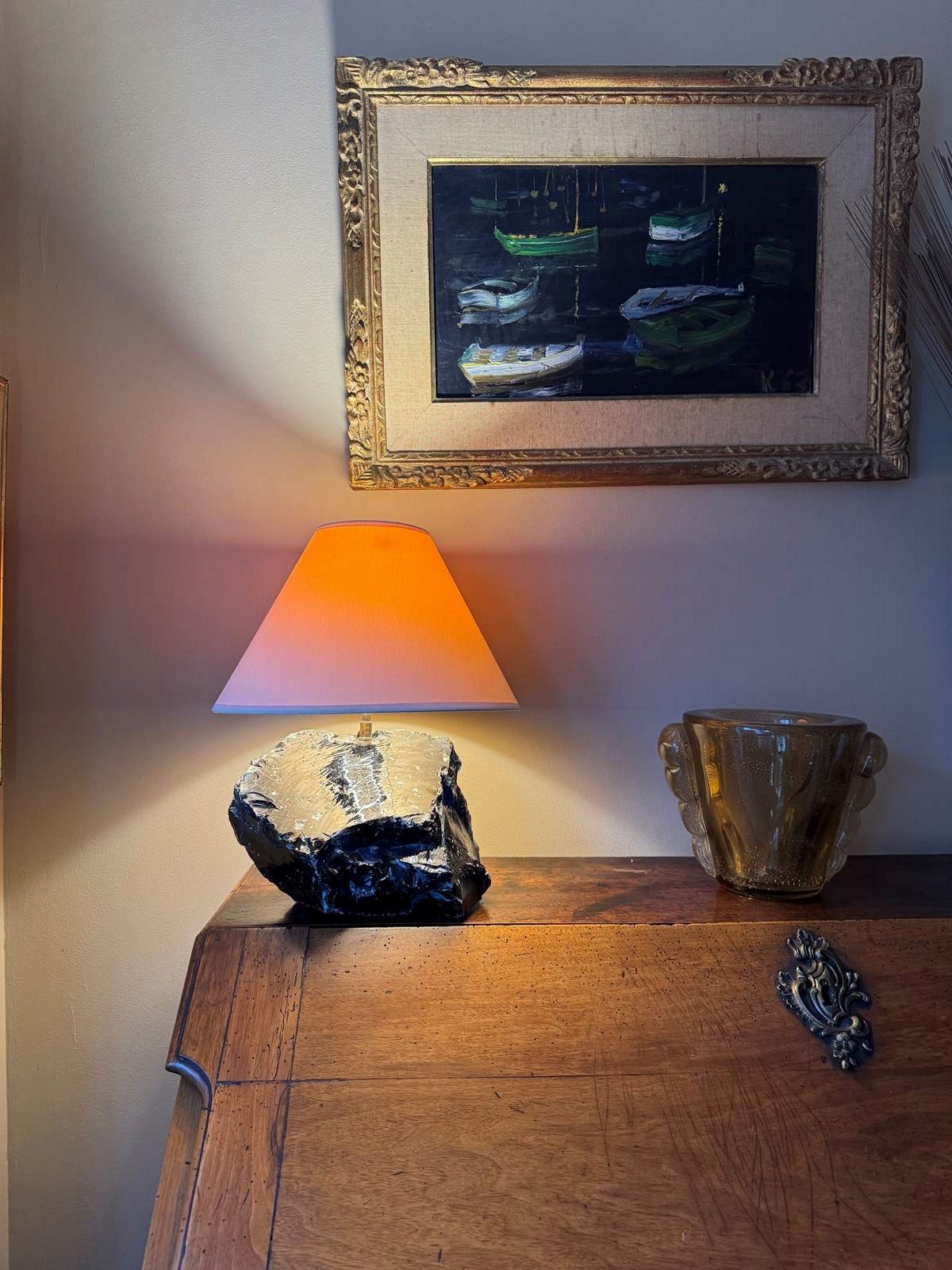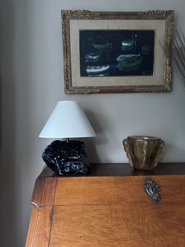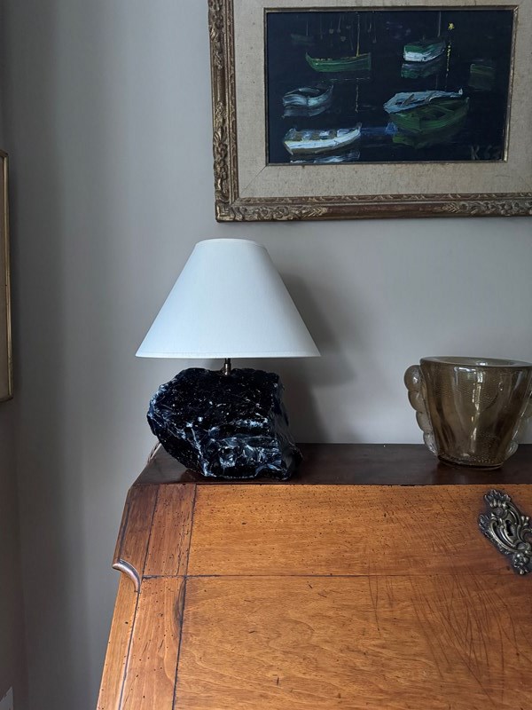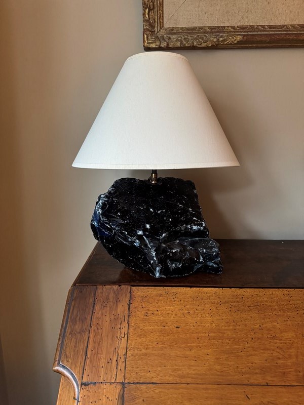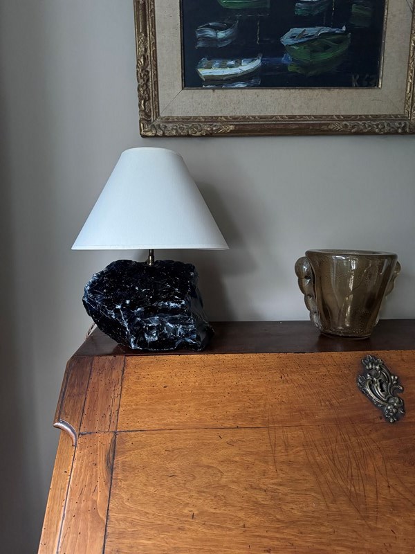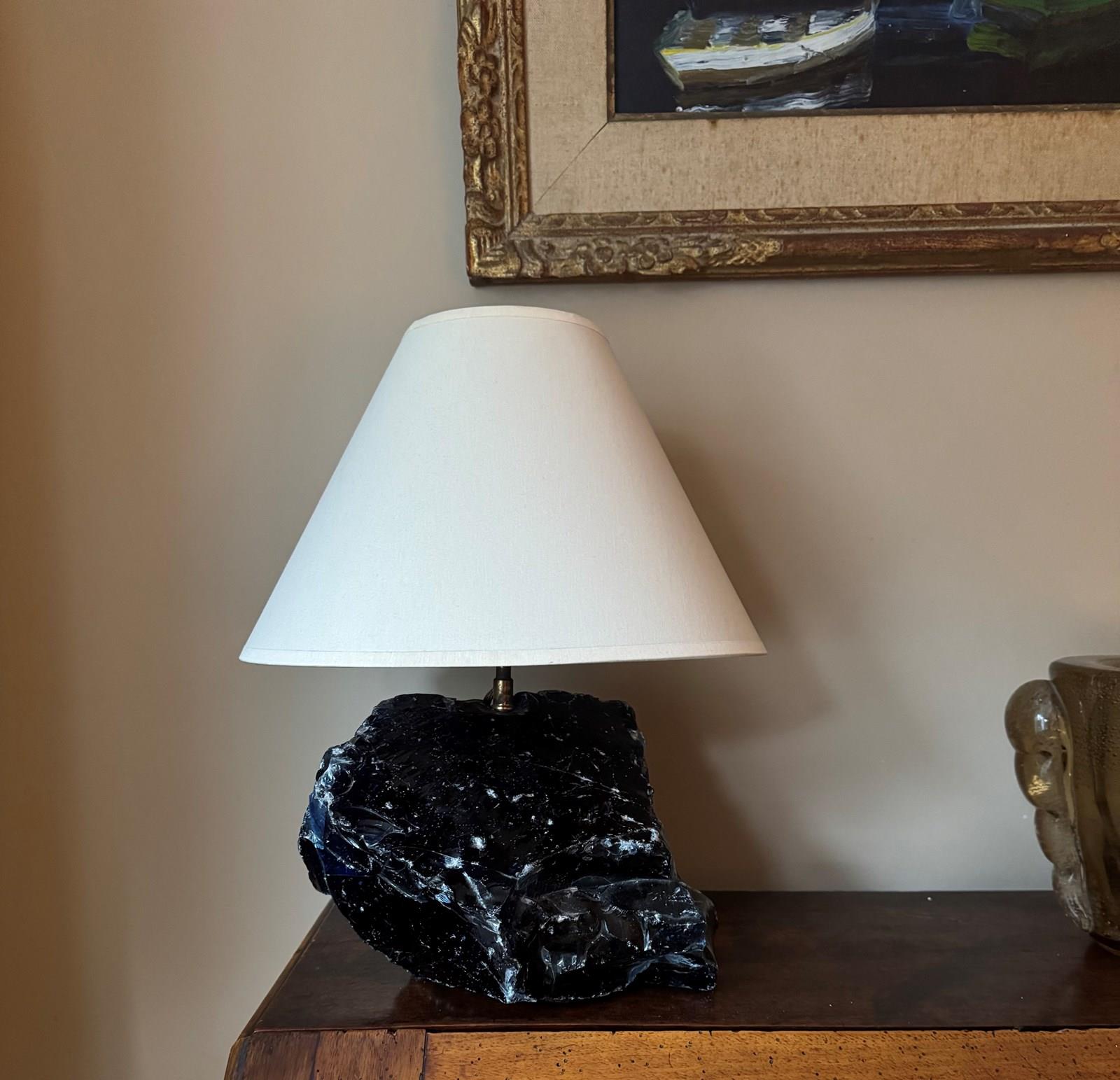 Unpolished Blue Glass Lamp After A Design By Jean-Michel Frank