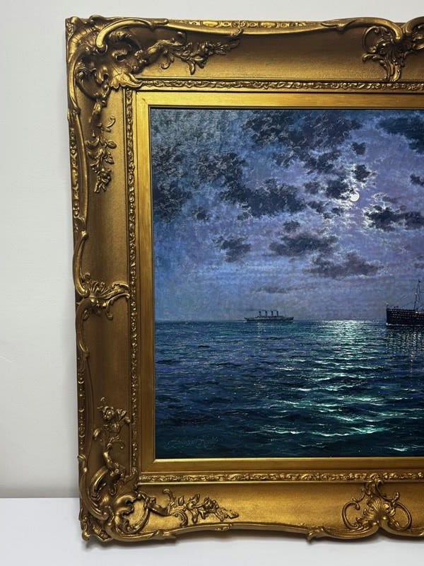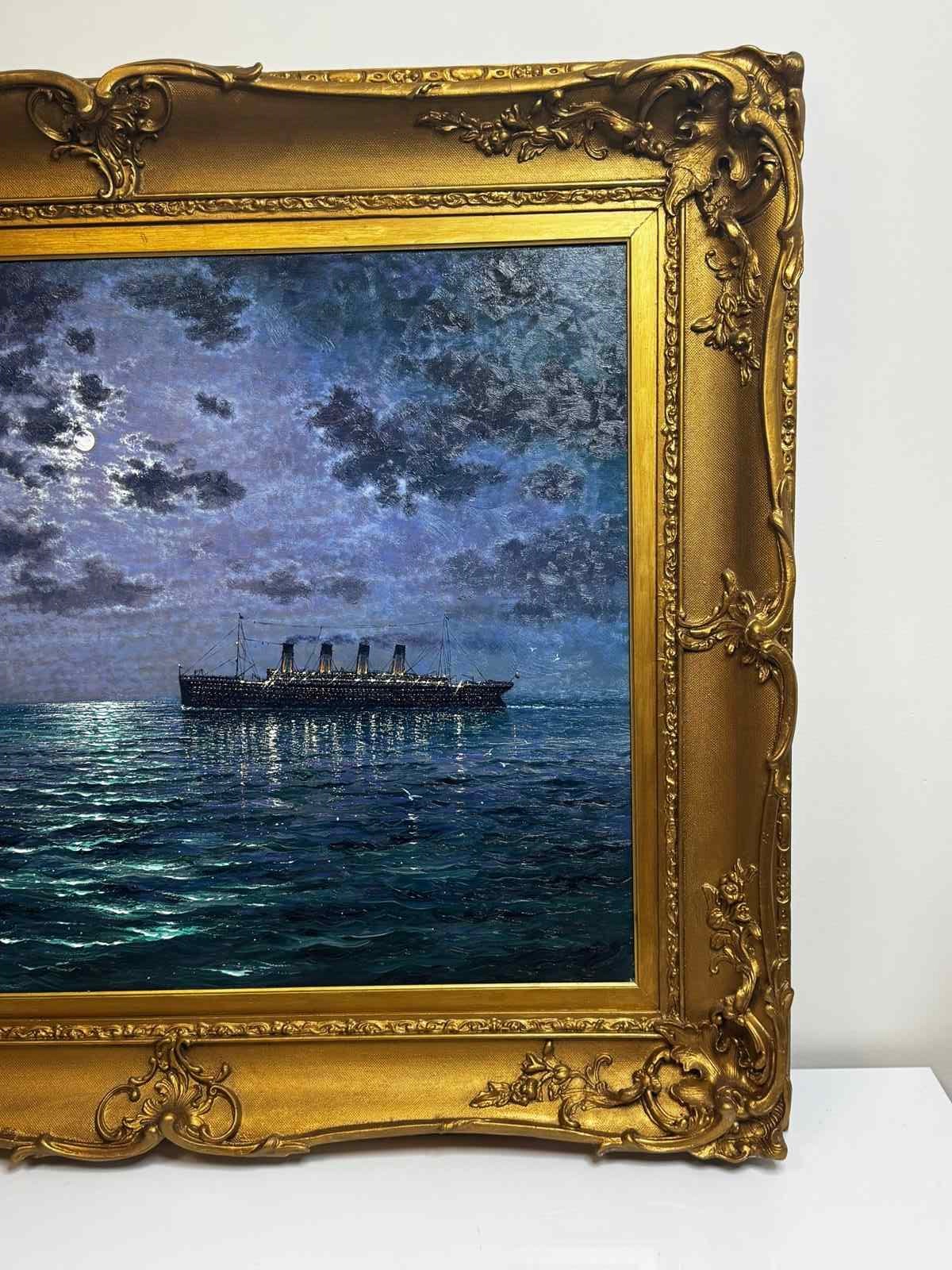 Large Oil Painting RMS Titanic Under Full Nocturnal Moon With RMS Olympic