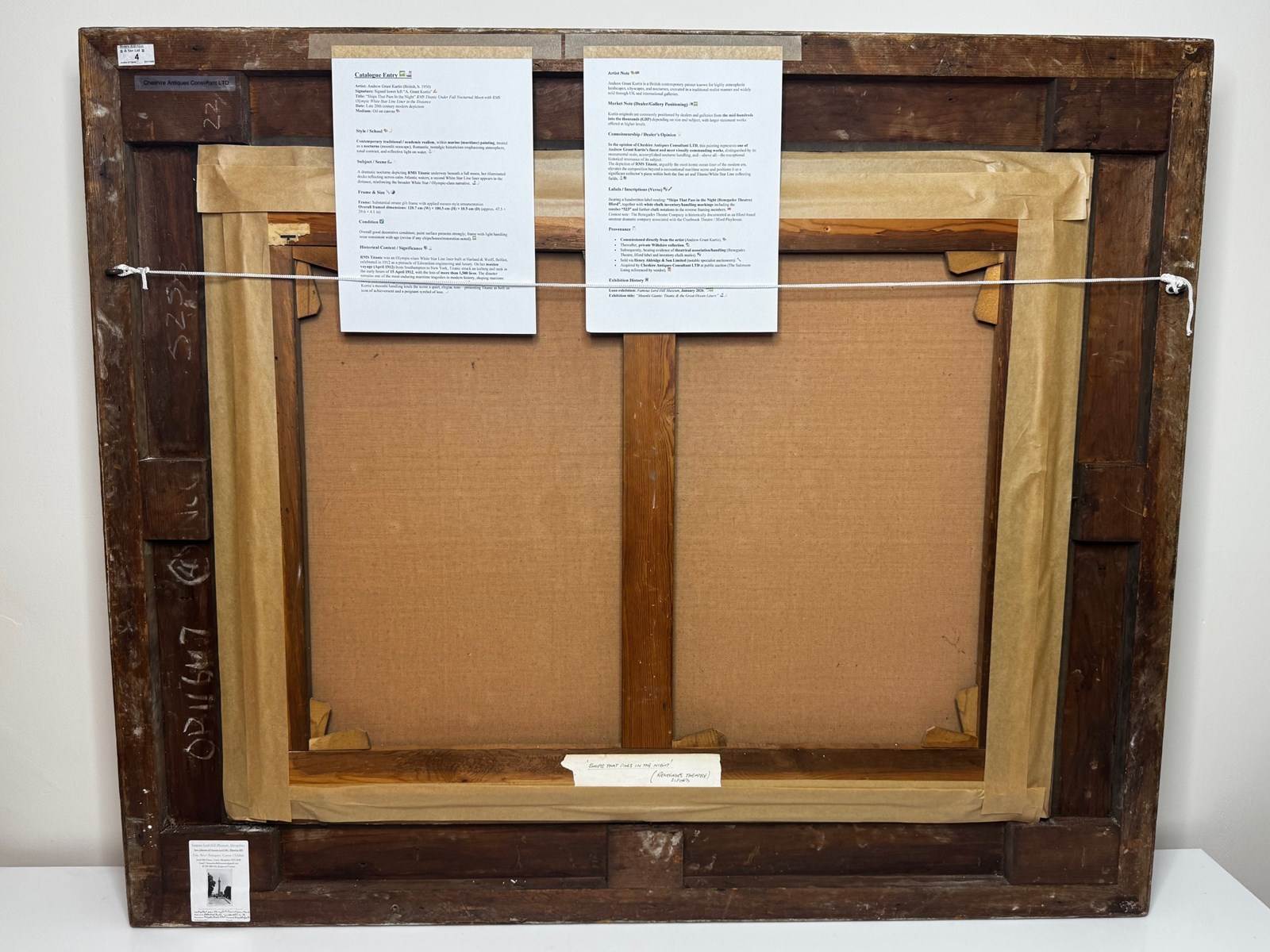 In the opinion of Cheshire Antiques Consultant LTD, this painting represents one of Andrew Grant Kurtis’s finest and most visually commanding works, distinguished by its monumental scale, accomplished nocturne handling, and—above all—the exceptional historical resonance of its subject.
