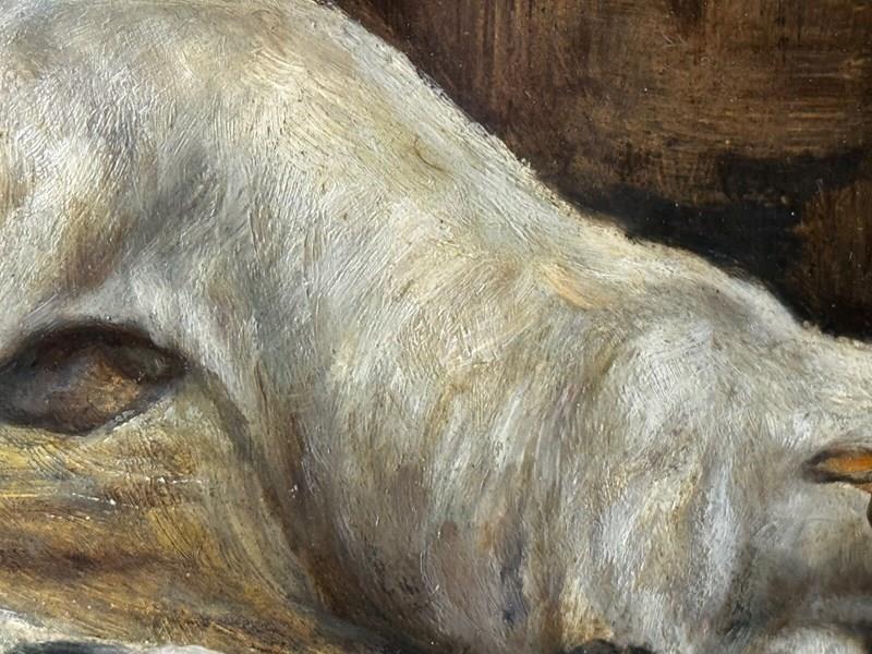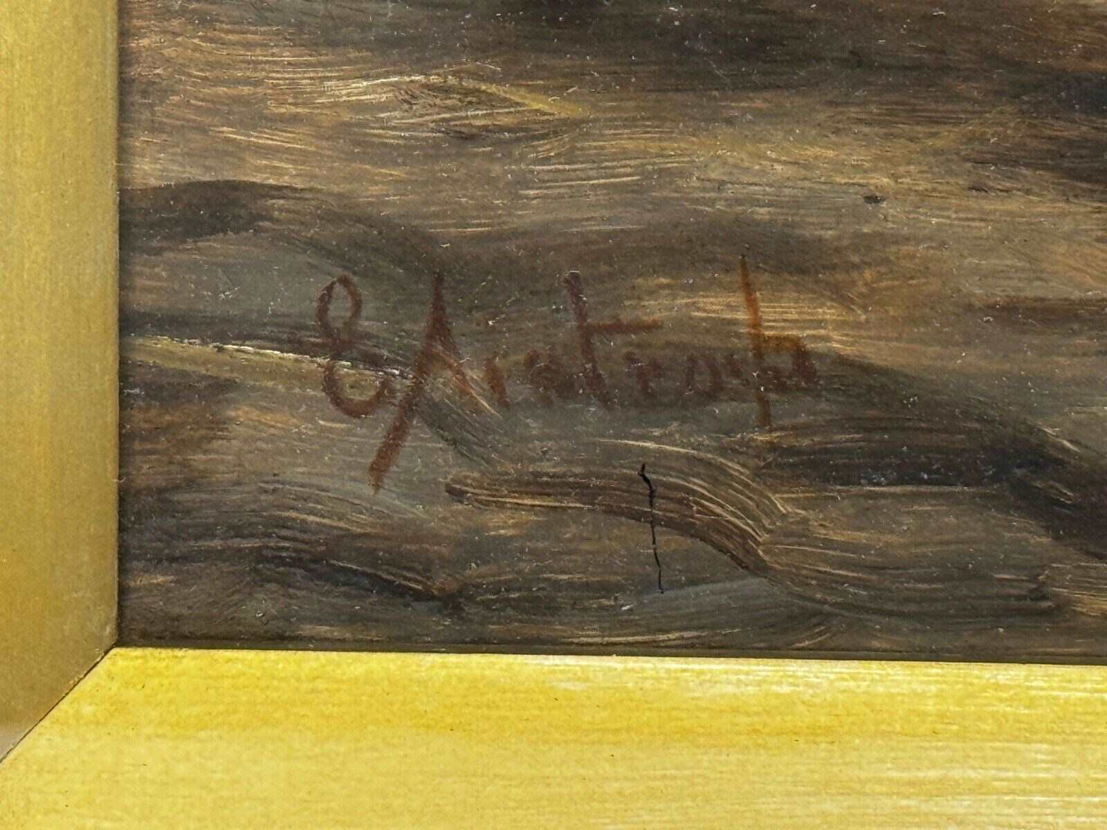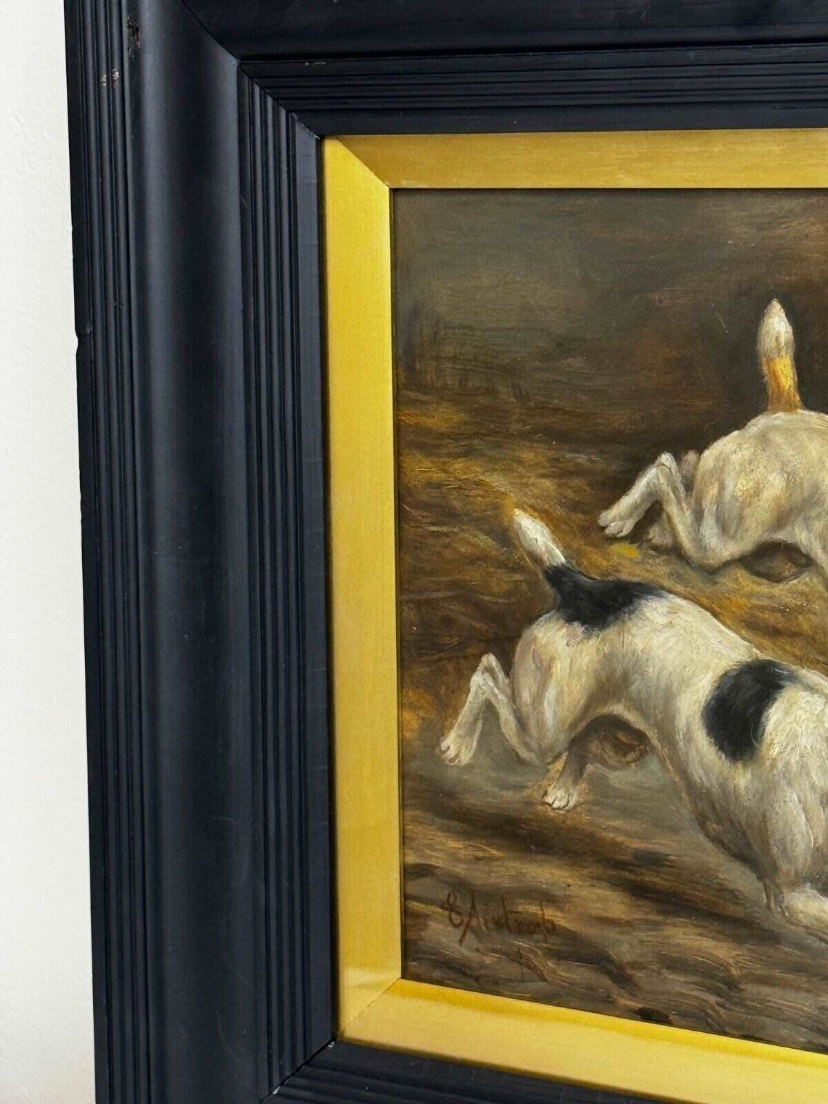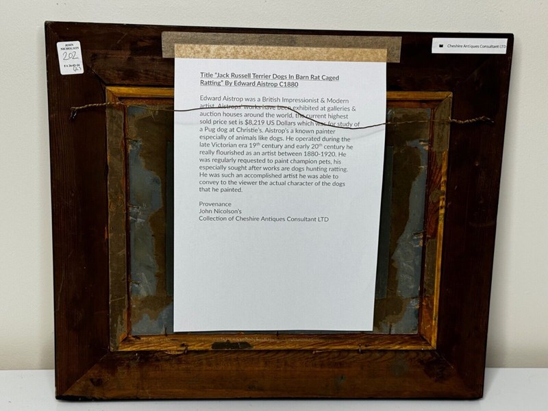 Signed by renowned British animal artist Edward Aistrop, this work exemplifies his remarkable talent for capturing the spirit and character of dogs. Aistrop, active during the late Victorian era (1880–1920), was celebrated for his animal portraits, especially of champion pets and hunting scenes. His works have been exhibited globally, with auction prices reaching up to $8,219 USD (notably for his Study of a Pug at Christie’s).