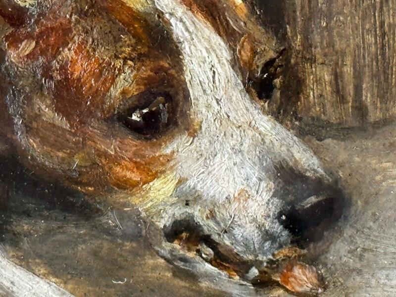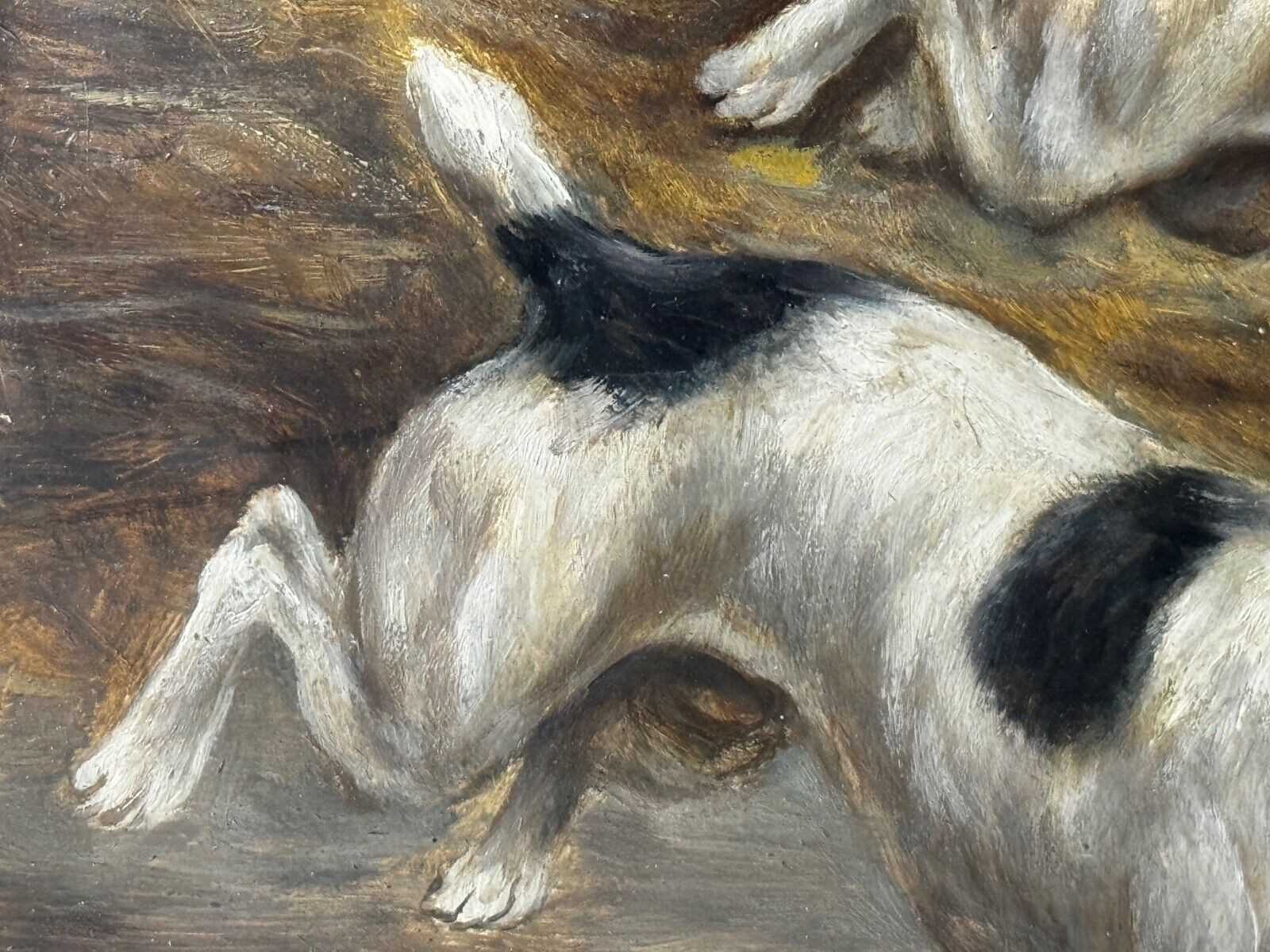 Victorian Hunting Scene: Jack Russell Dogs On The Chase In A Barn