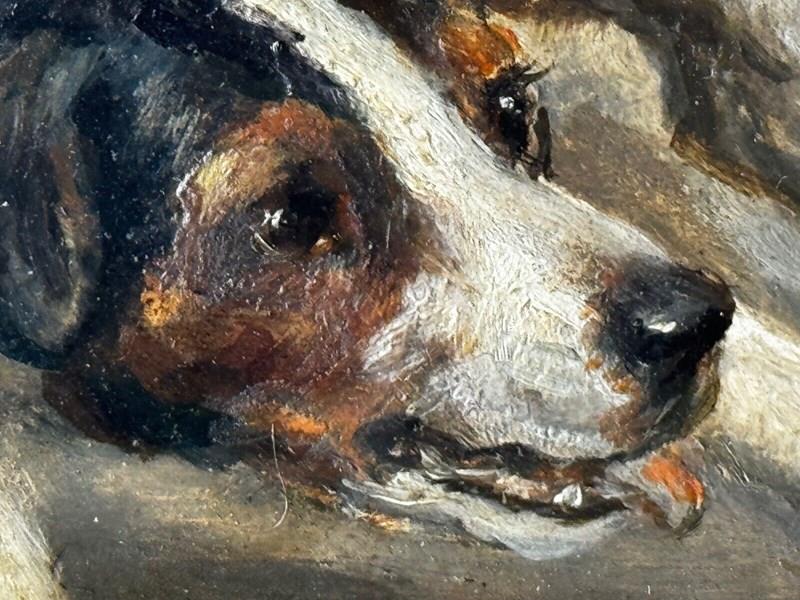 Portrait of Two Jack Russell Terrier Dogs Ratting in a Barn, by Edward Aistrop (c.1880)