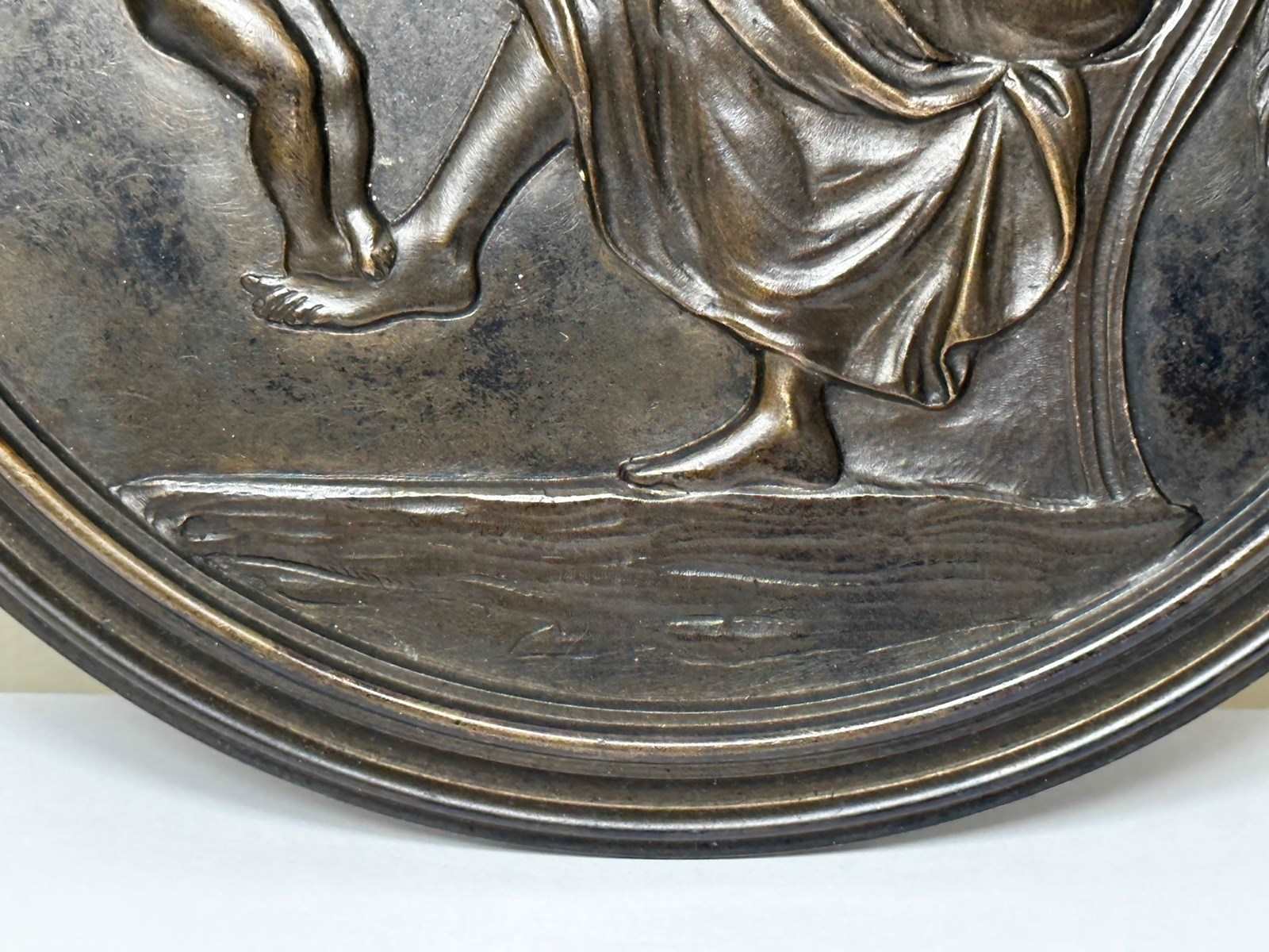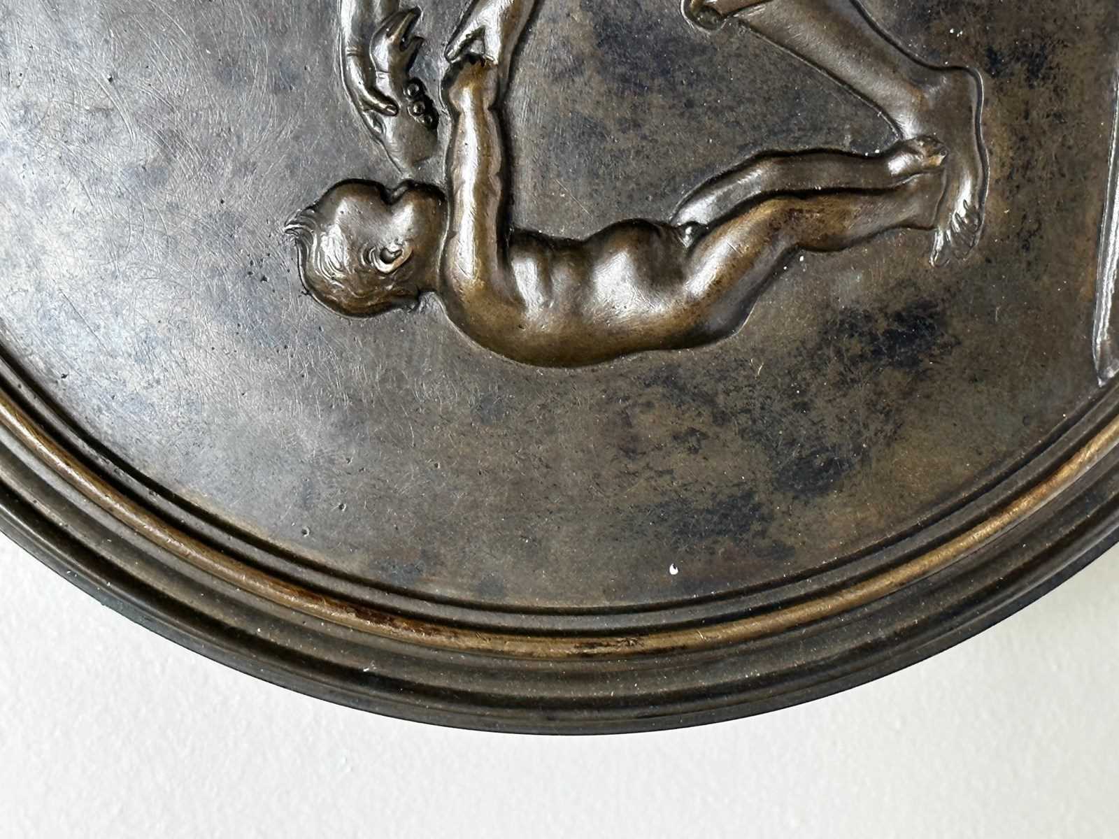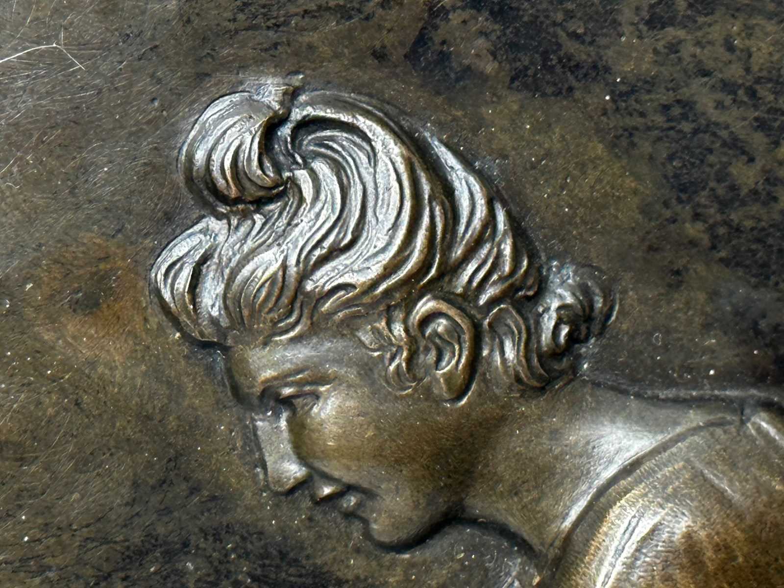 Introducing the fabulous 19th Century Coalbrookdale bronze round wall sculpture of a mother holding her child - an exquisitely crafted piece, add a touch of elegance to your home!