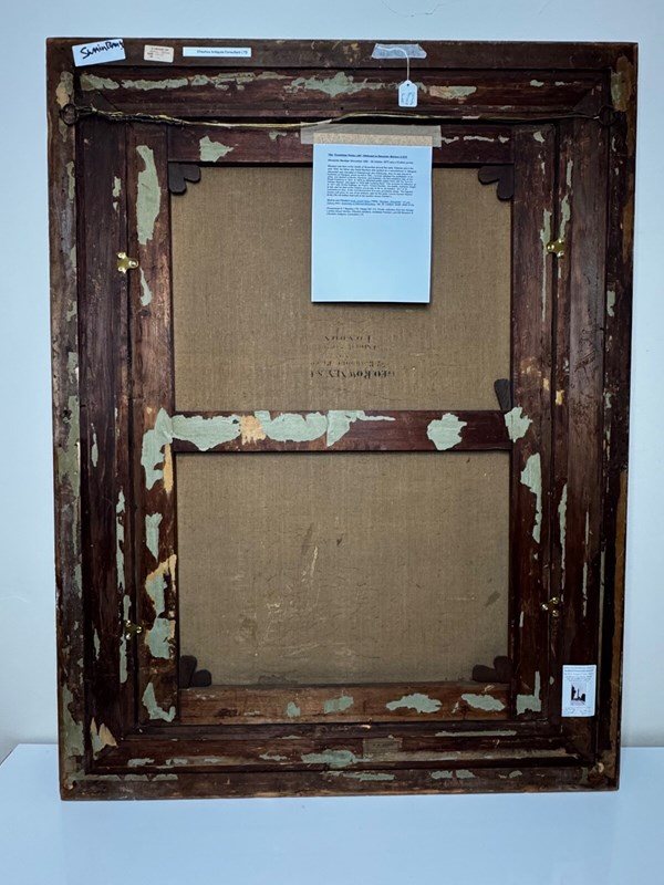 Presented in its original ornate giltwood frame, richly carved with floral motifs and layers of gilding. The warm golden tones harmonise beautifully with the sitter’s complexion and the palette of the painting.
